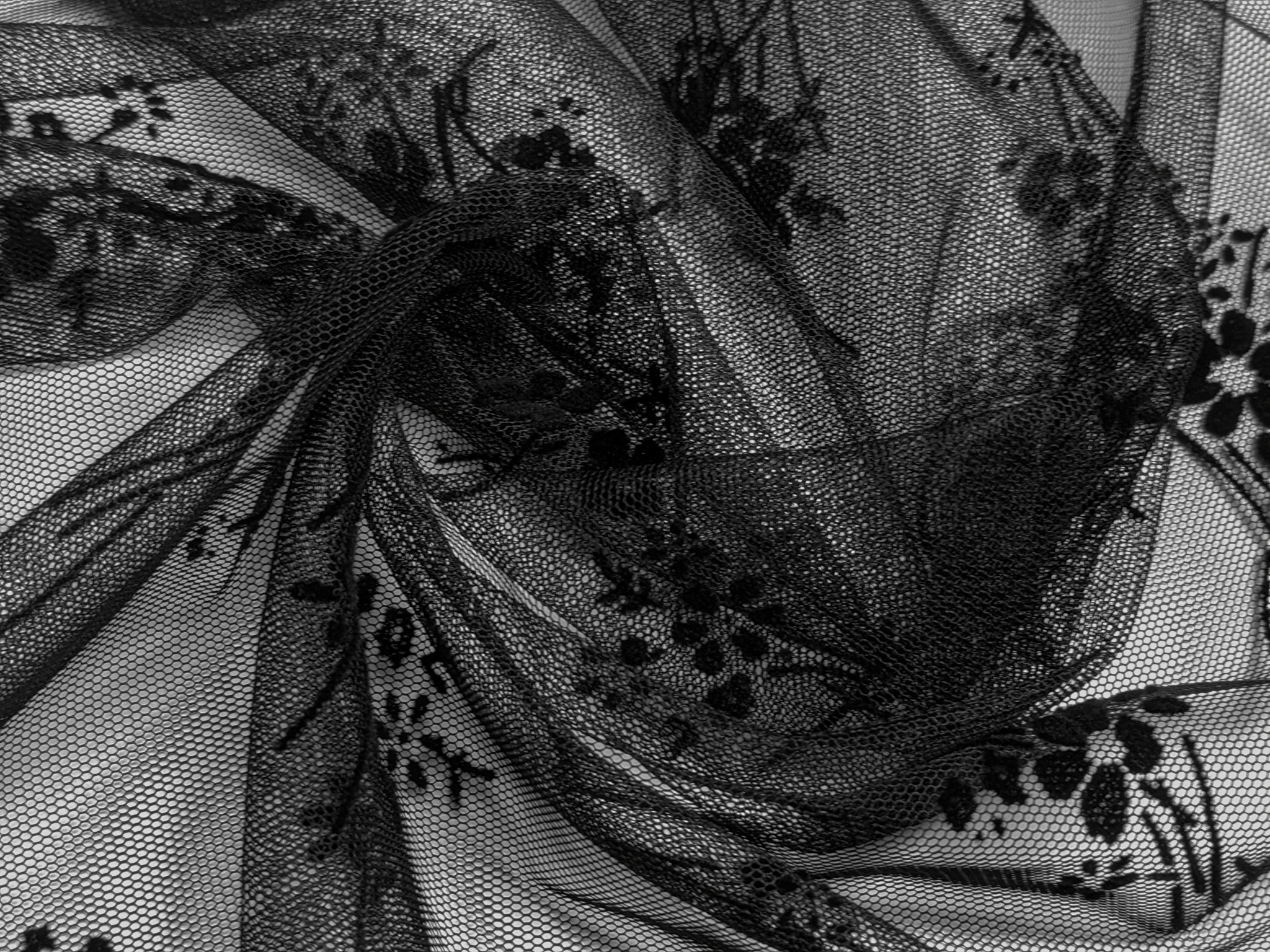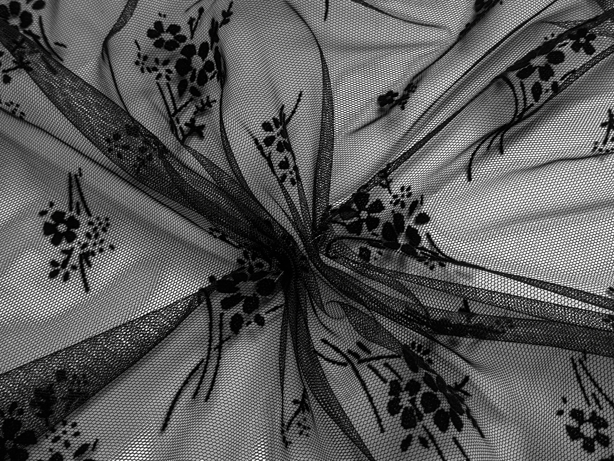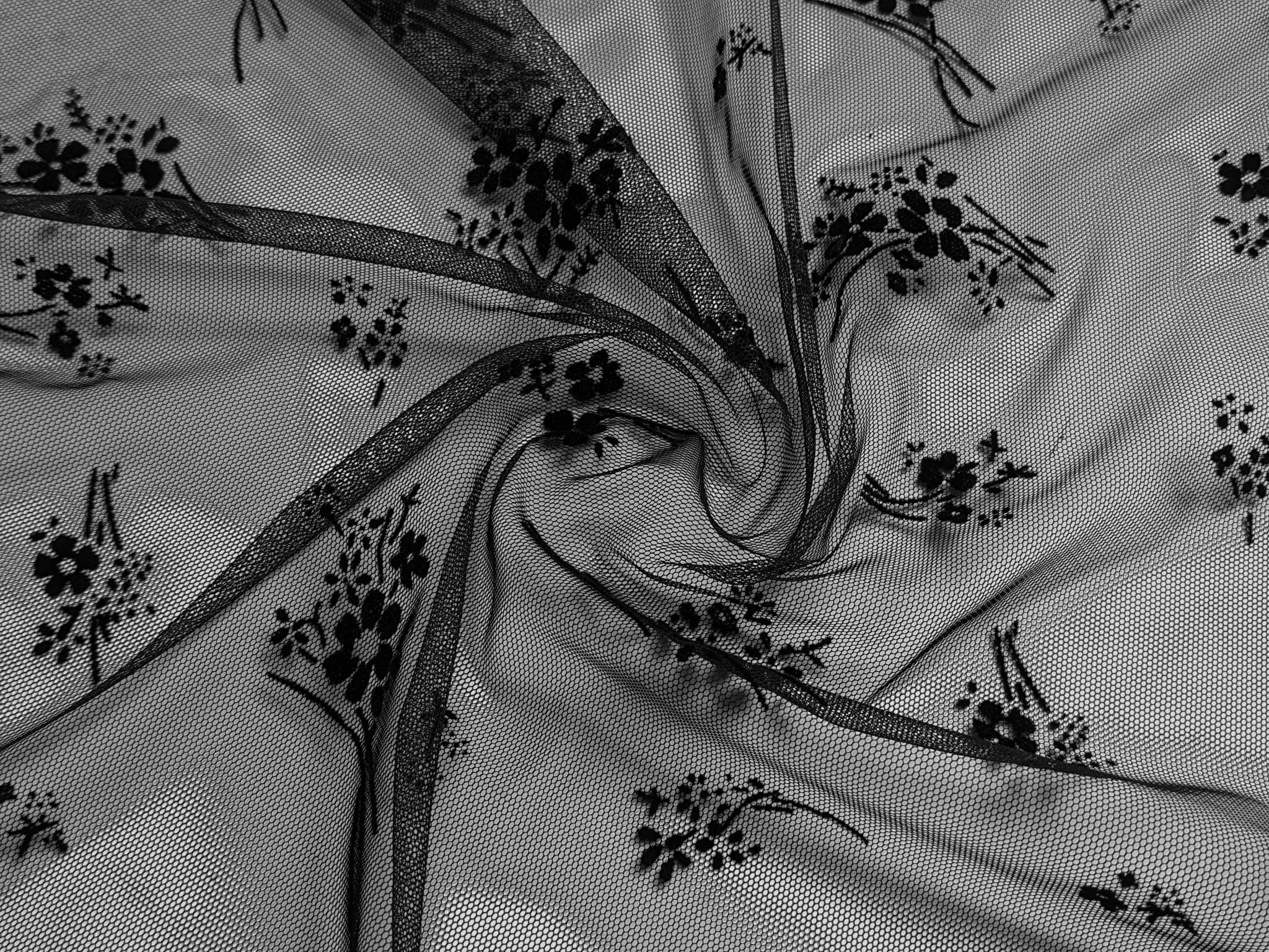 Сетка с флоком букетики, черный (с11, 2403002, д1 цв1)
