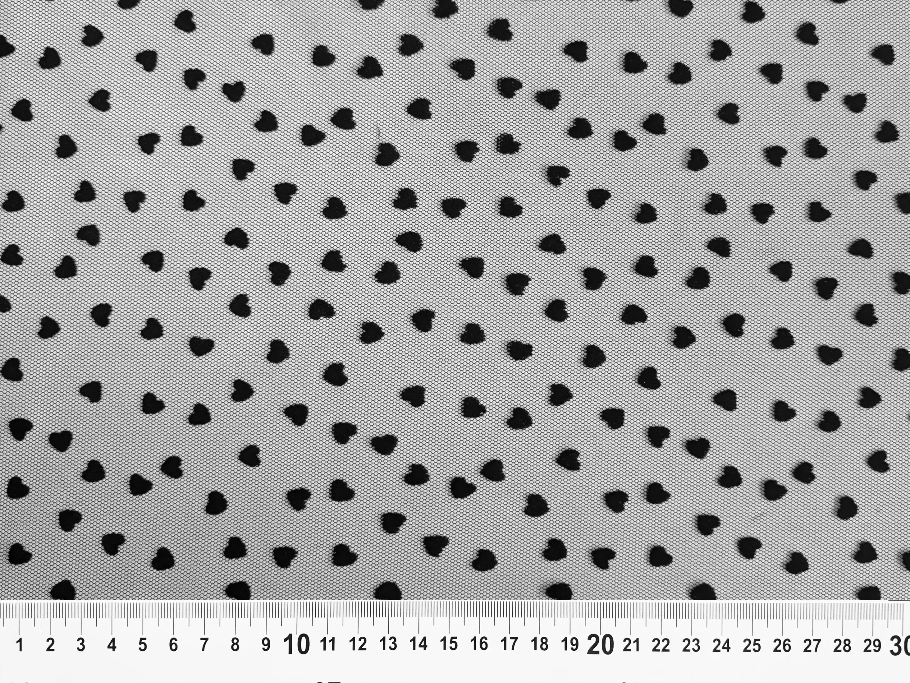 Сетка с флоком сердечки, черный (отрез 2,7 м)