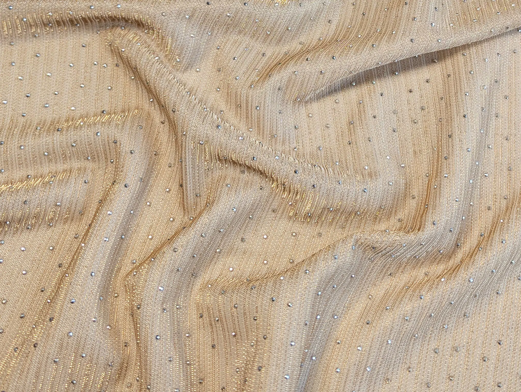 Сетка со стразами золото на бежевом (отрез 0,4 м)
