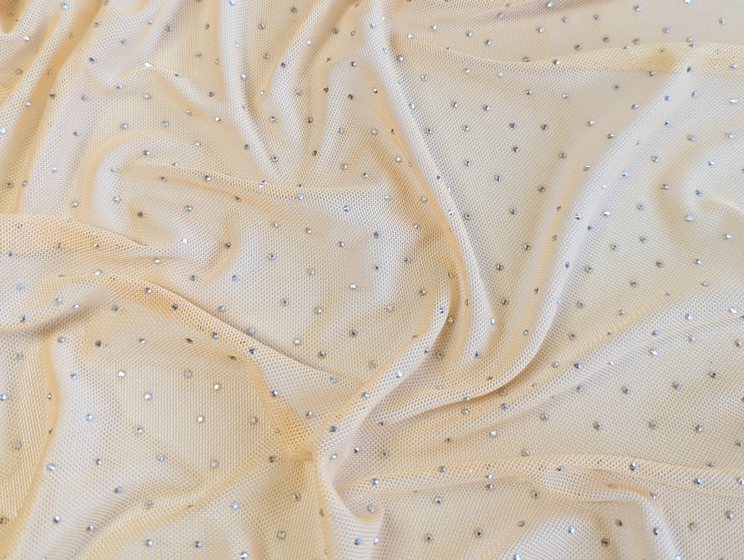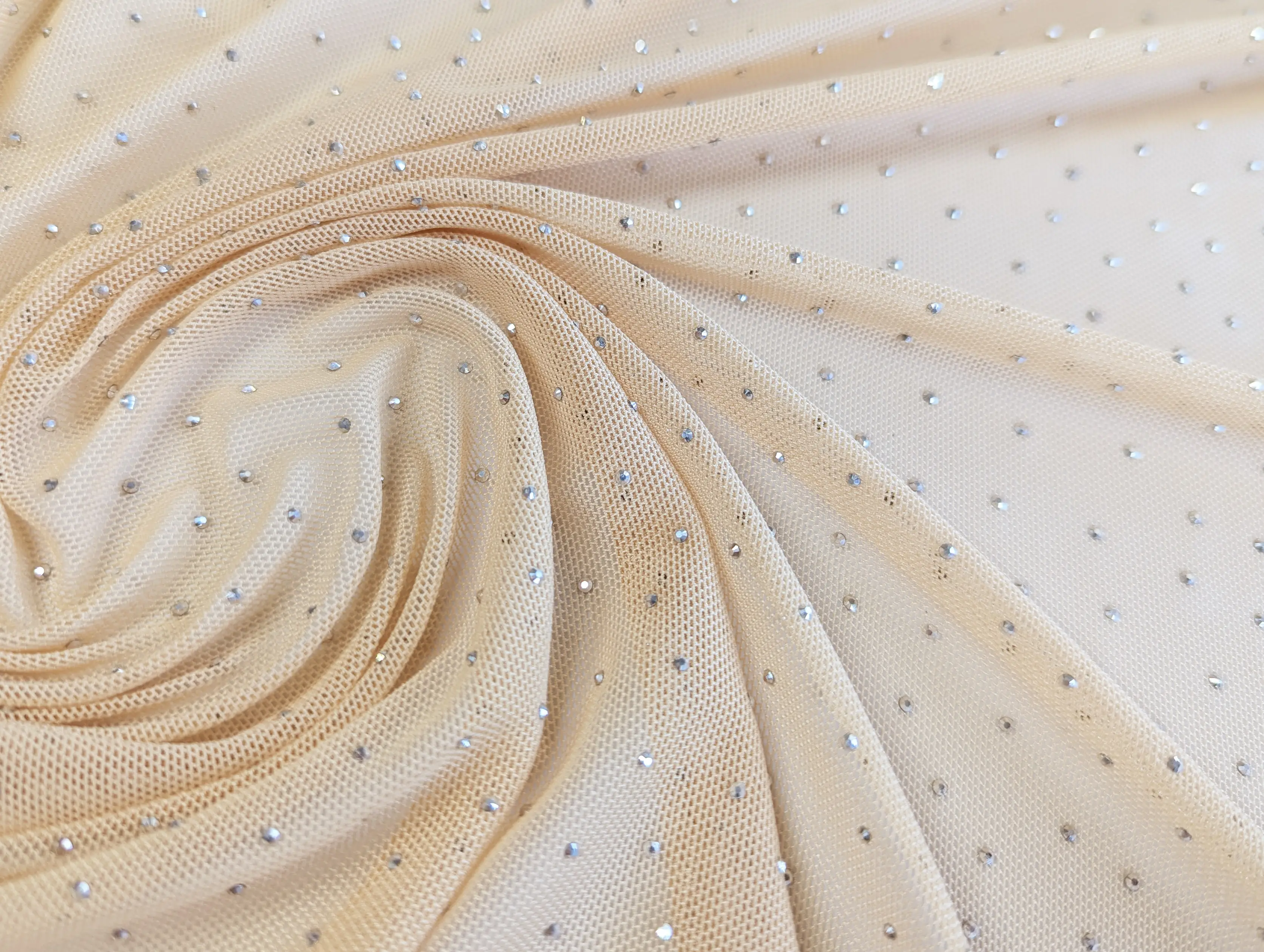 Сетка стрейч со стразами однотонный, бежево-персиковый