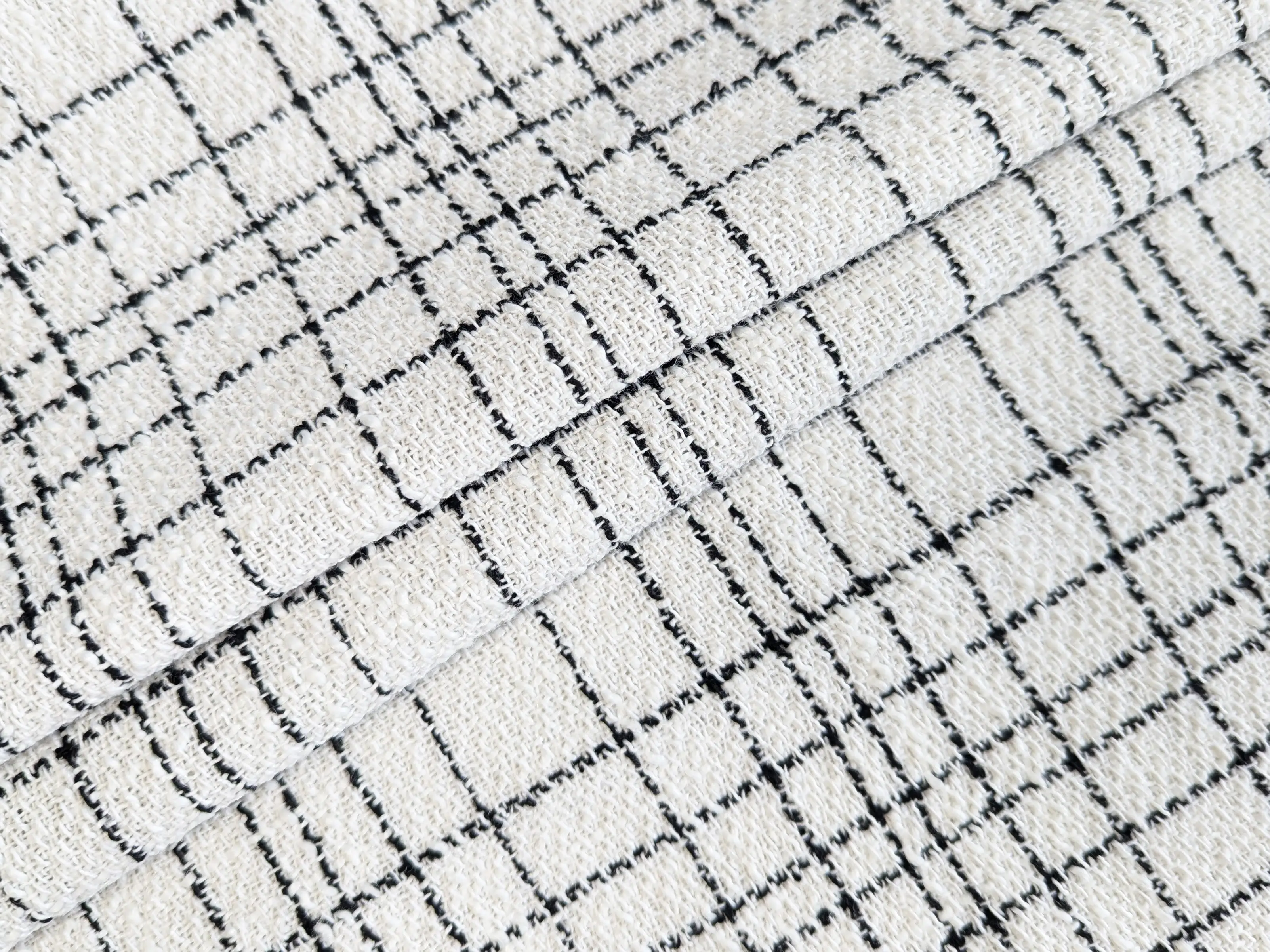 Шанель твид клетка 93 мм , молочный (отрез 1 м)