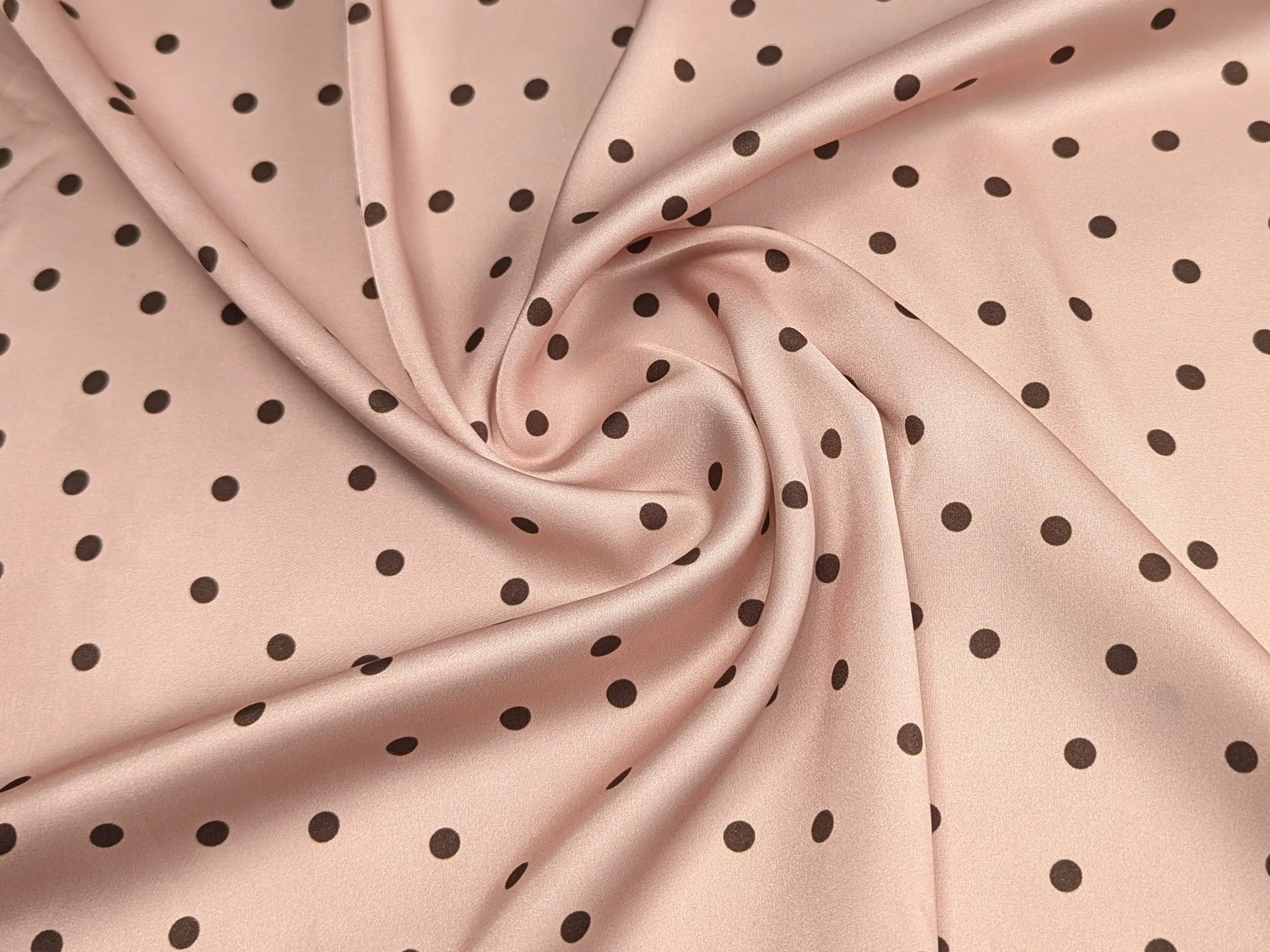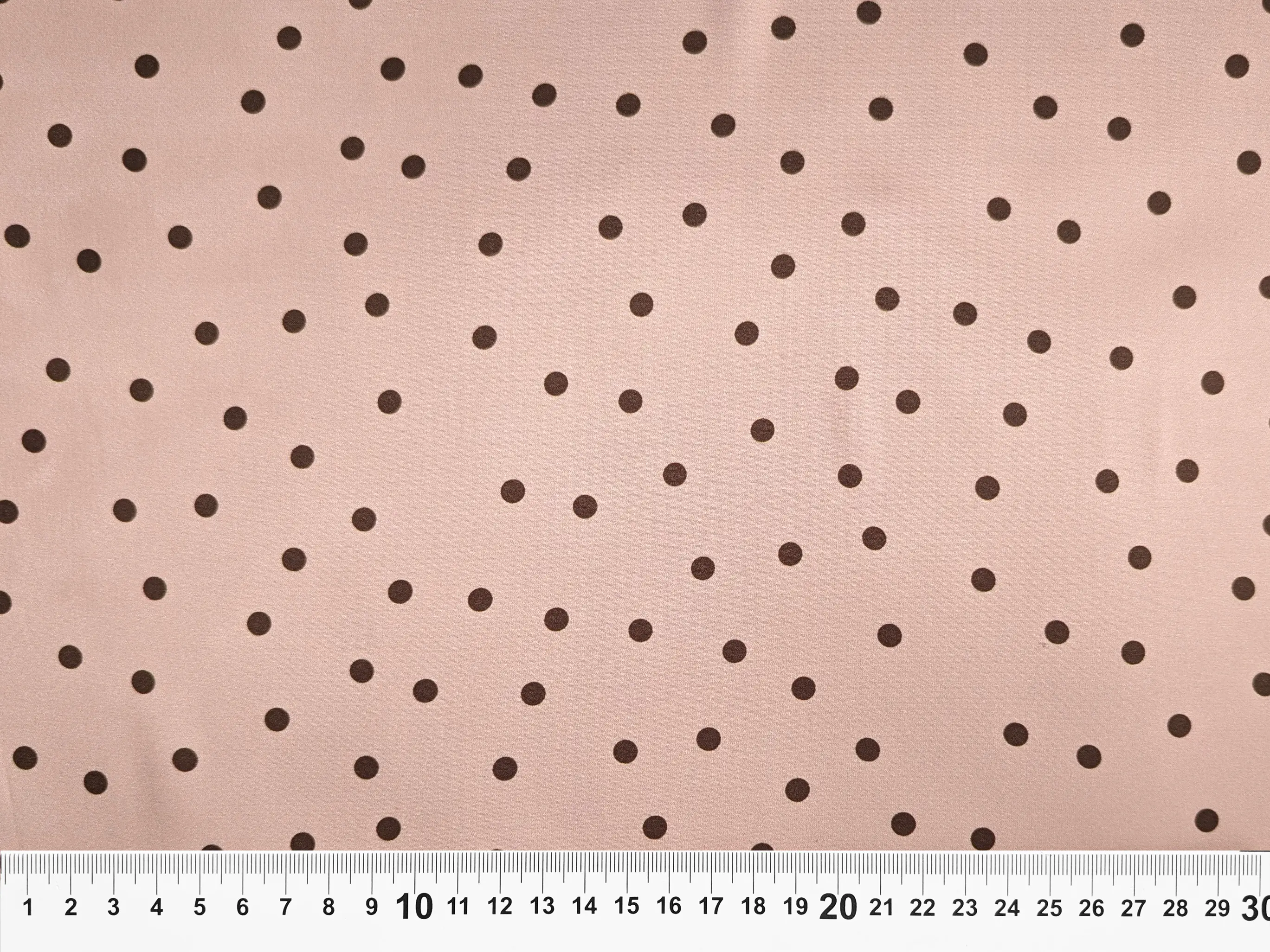 Шелк Армани горошки 4 мм, коричневый на пудренно-персиковом (отрез 0,8 м)