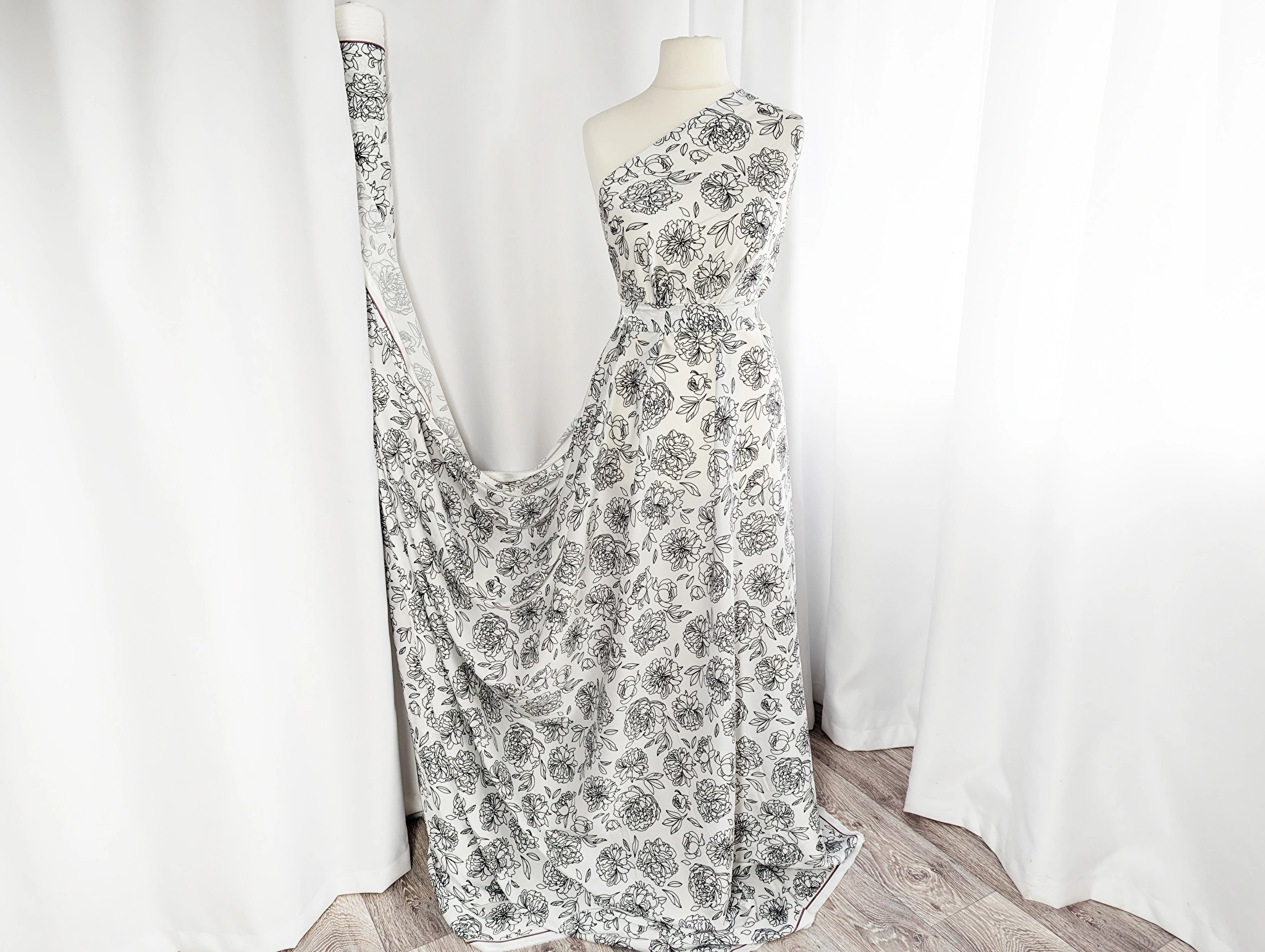 Шелк Армани пионы, молочный