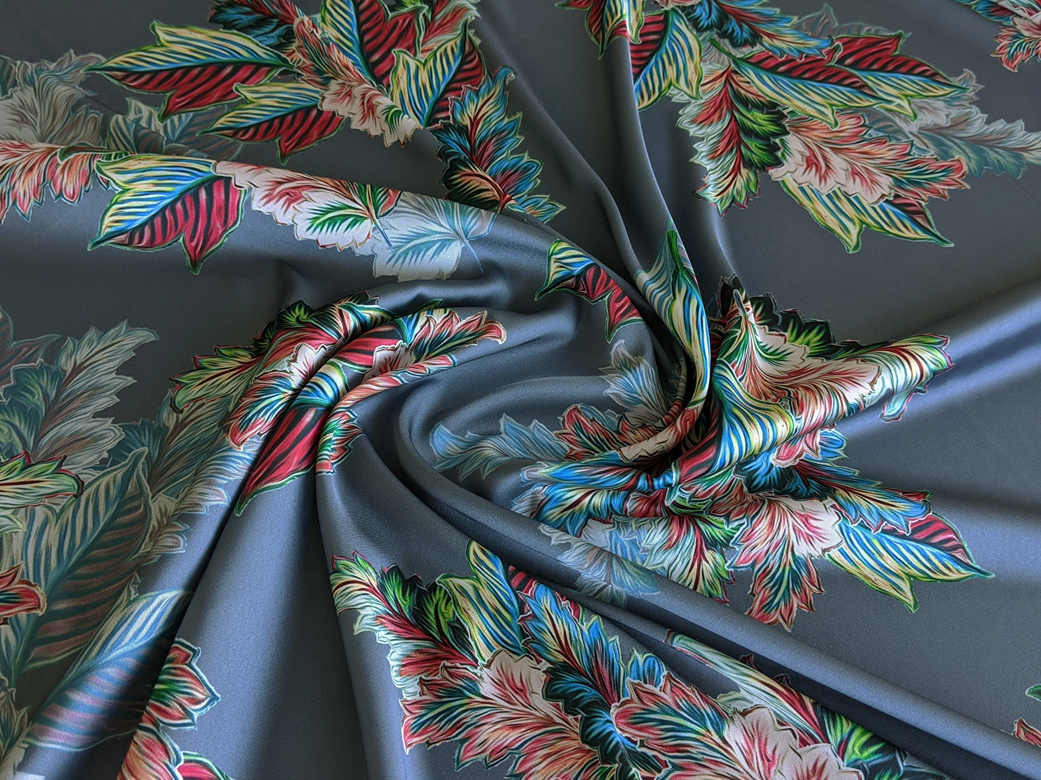 Шелк Армани радужные цветы, серый (отрез 2,4 м)