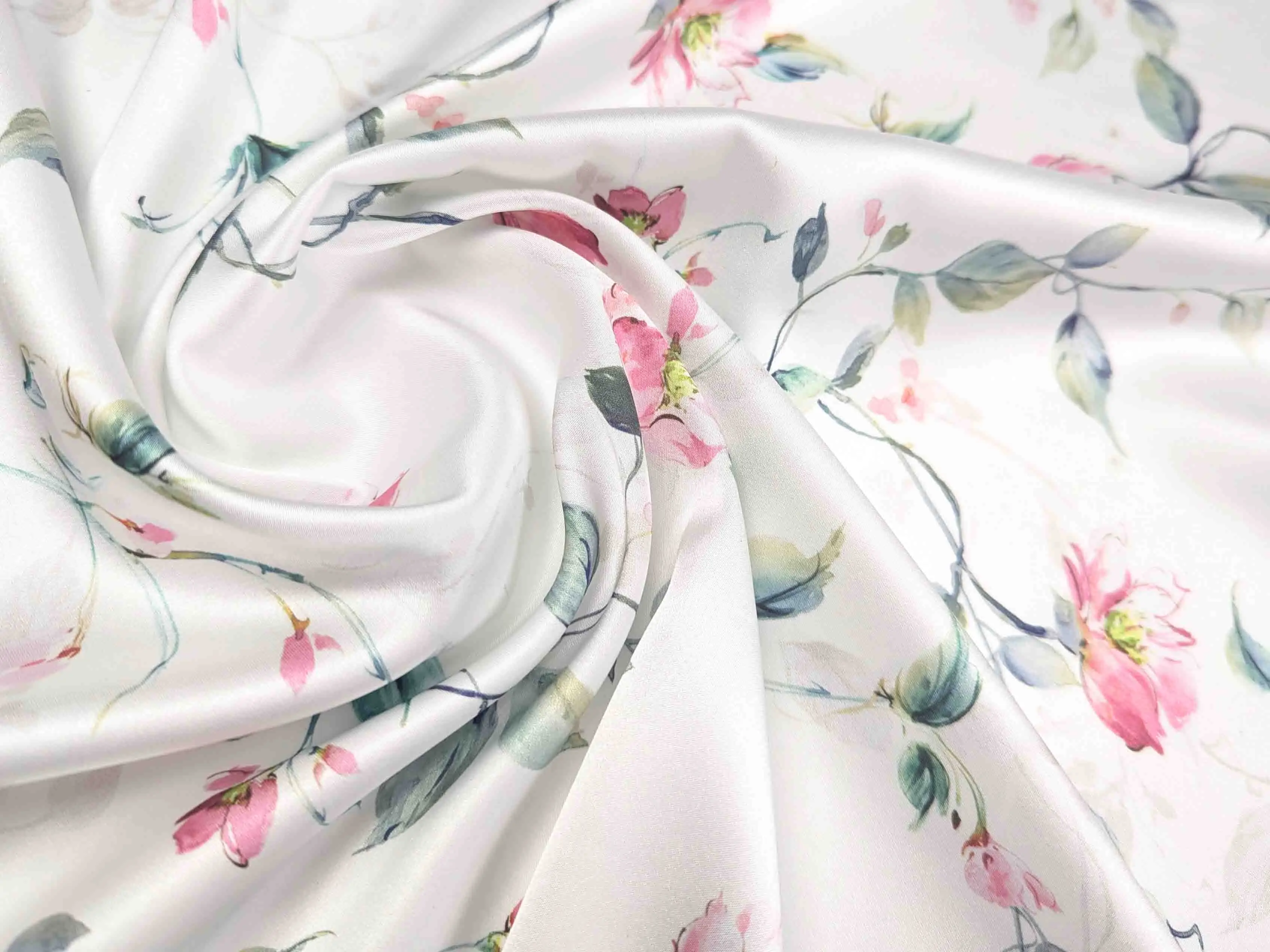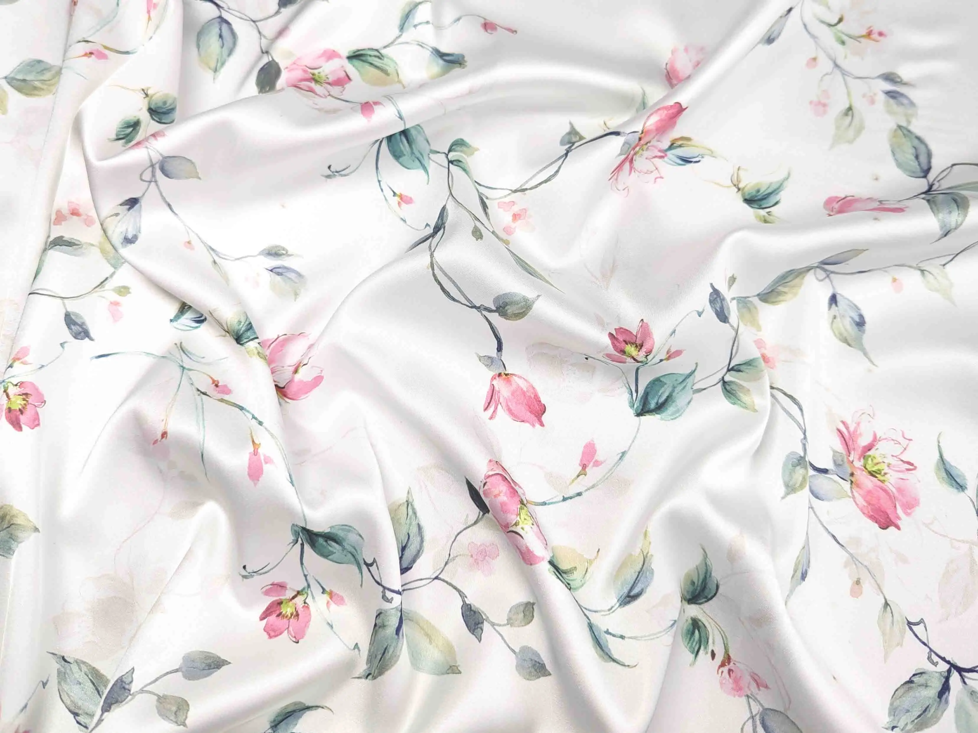 Шелк сатин - это легкое струящееся полотно, гладкое как атлас, но значительно тоньше и тактильно приятнее.Также известно как шелк Армани. Полотно красиво струится, легкое и летящее, не сминается. Требует деликатного ухода. Применяется для пошива блуз, платьев, костюмов и накидок. В изделии ткань выглядит дорого, нарядно и изысканно.