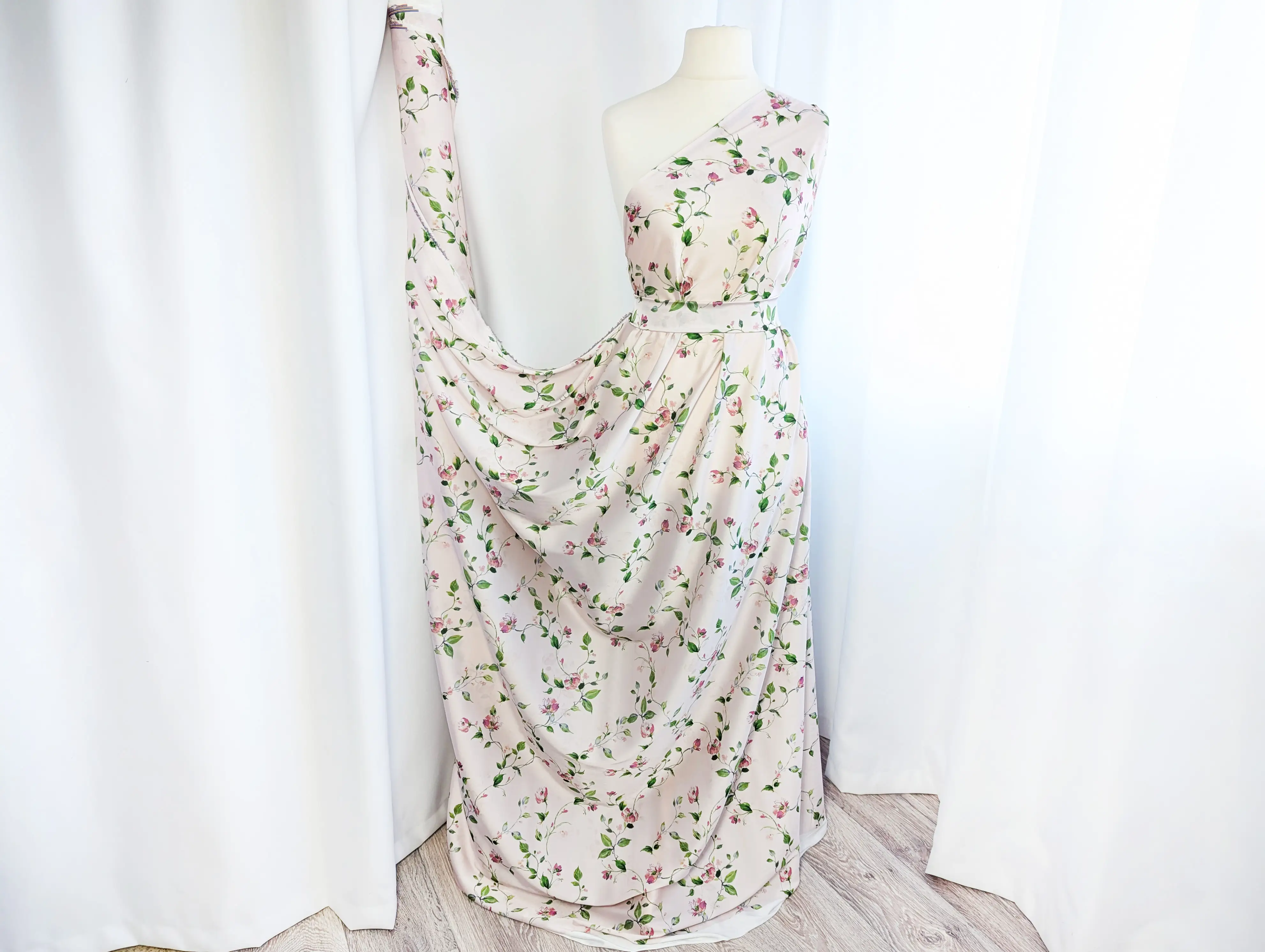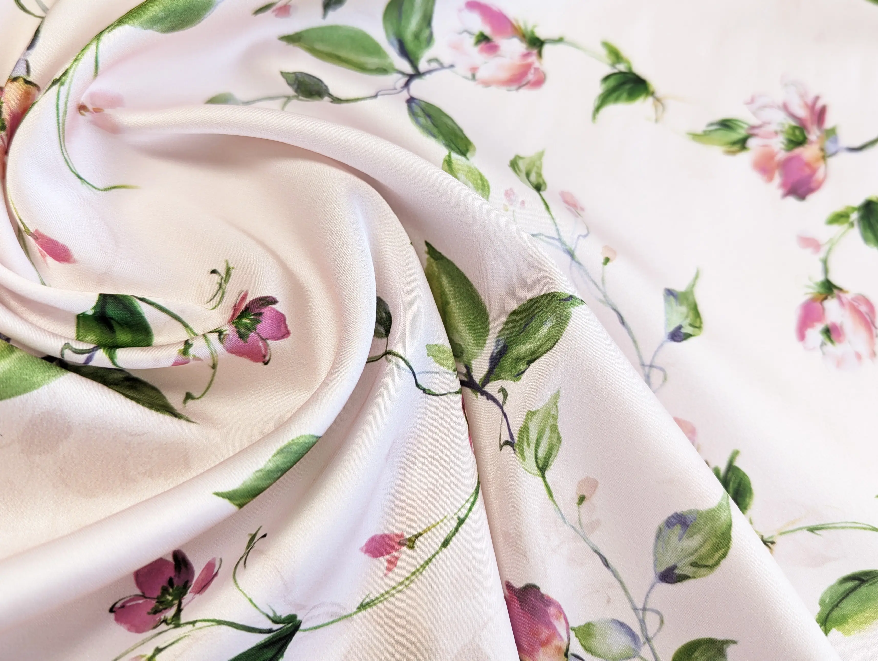 Шелк сатин - это легкое струящееся полотно, гладкое как атлас, но значительно тоньше и тактильно приятнее.Также известно как шелк Армани. Полотно красиво струится, легкое и летящее, не сминается. Требует деликатного ухода. Применяется для пошива блуз, платьев, костюмов и накидок. В изделии ткань выглядит дорого, нарядно и изысканно.