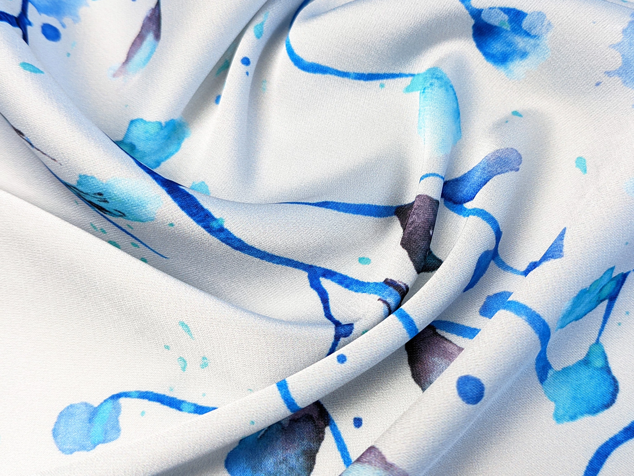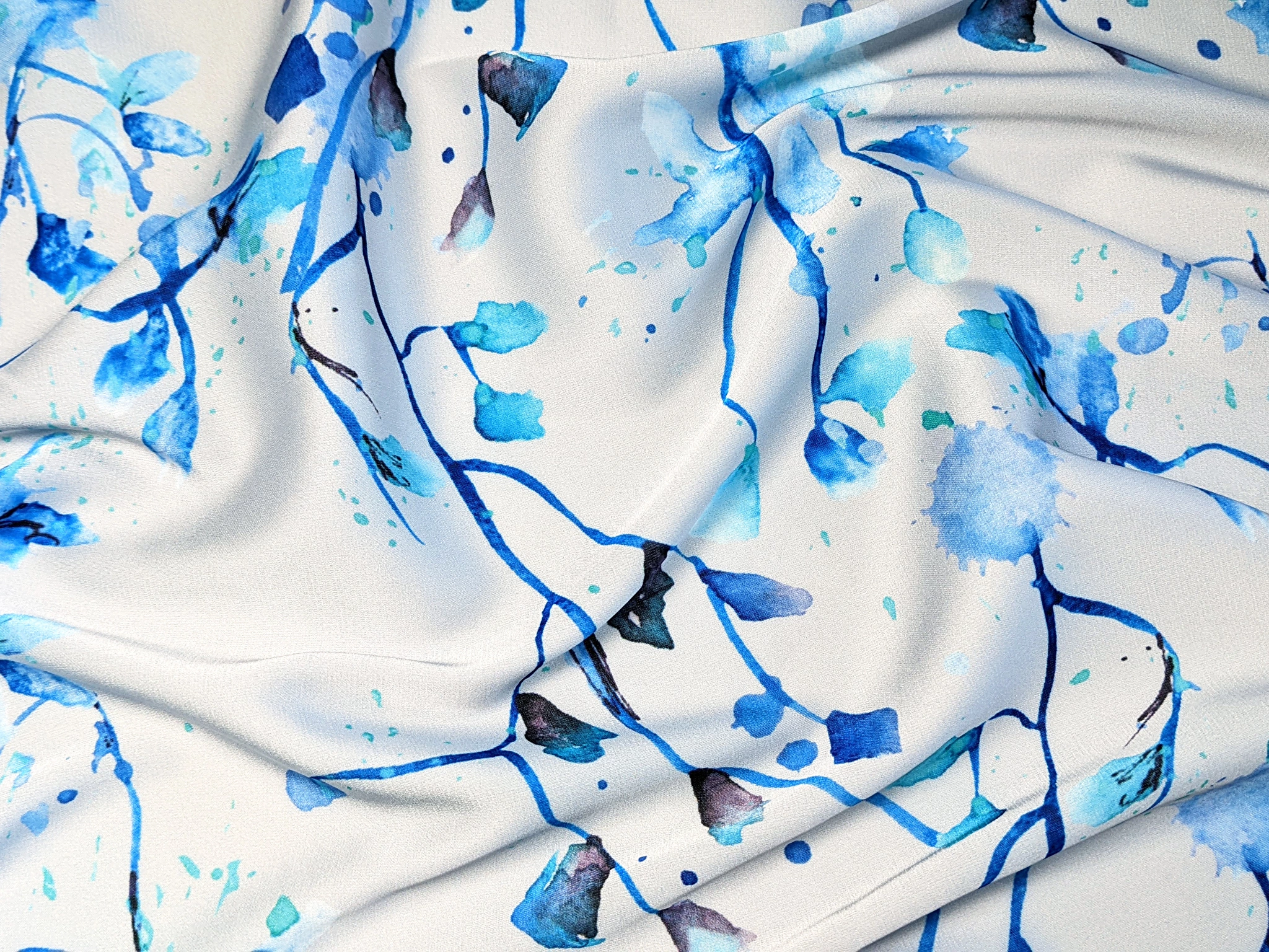 Шелк Армани весенняя акварель, синий на сером