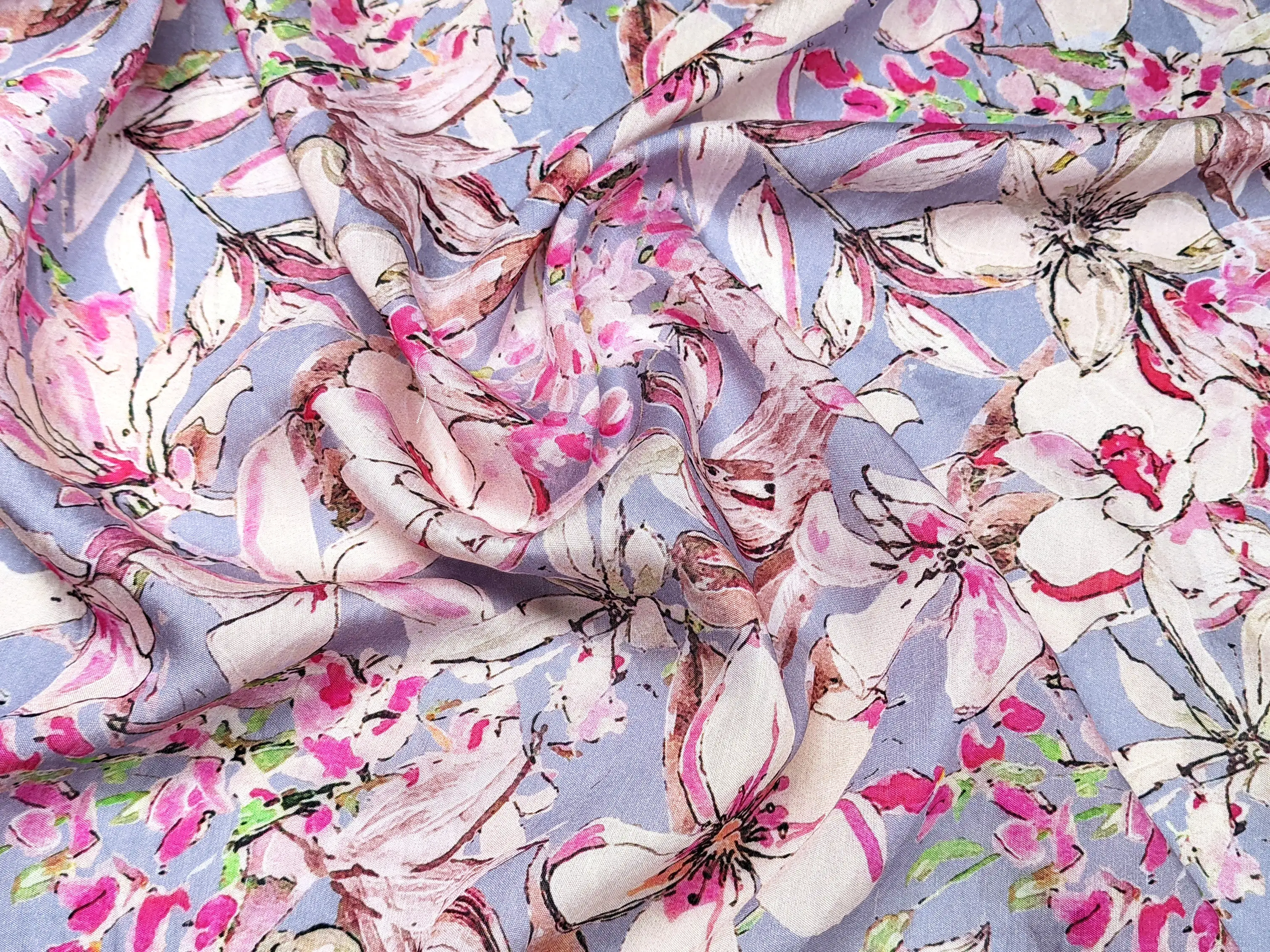 Шелк вискоза ирисы, серо-лиловый с малиновым