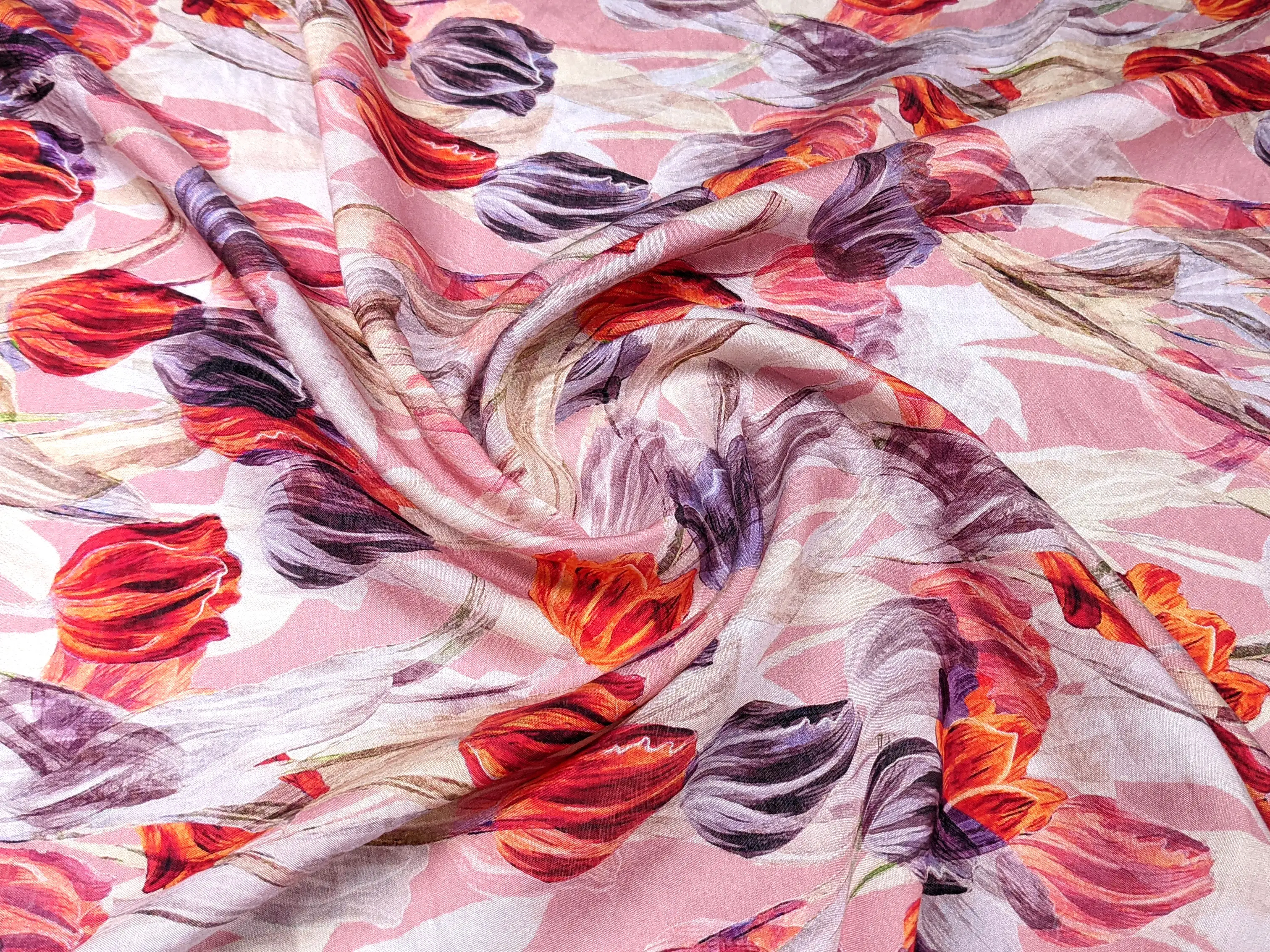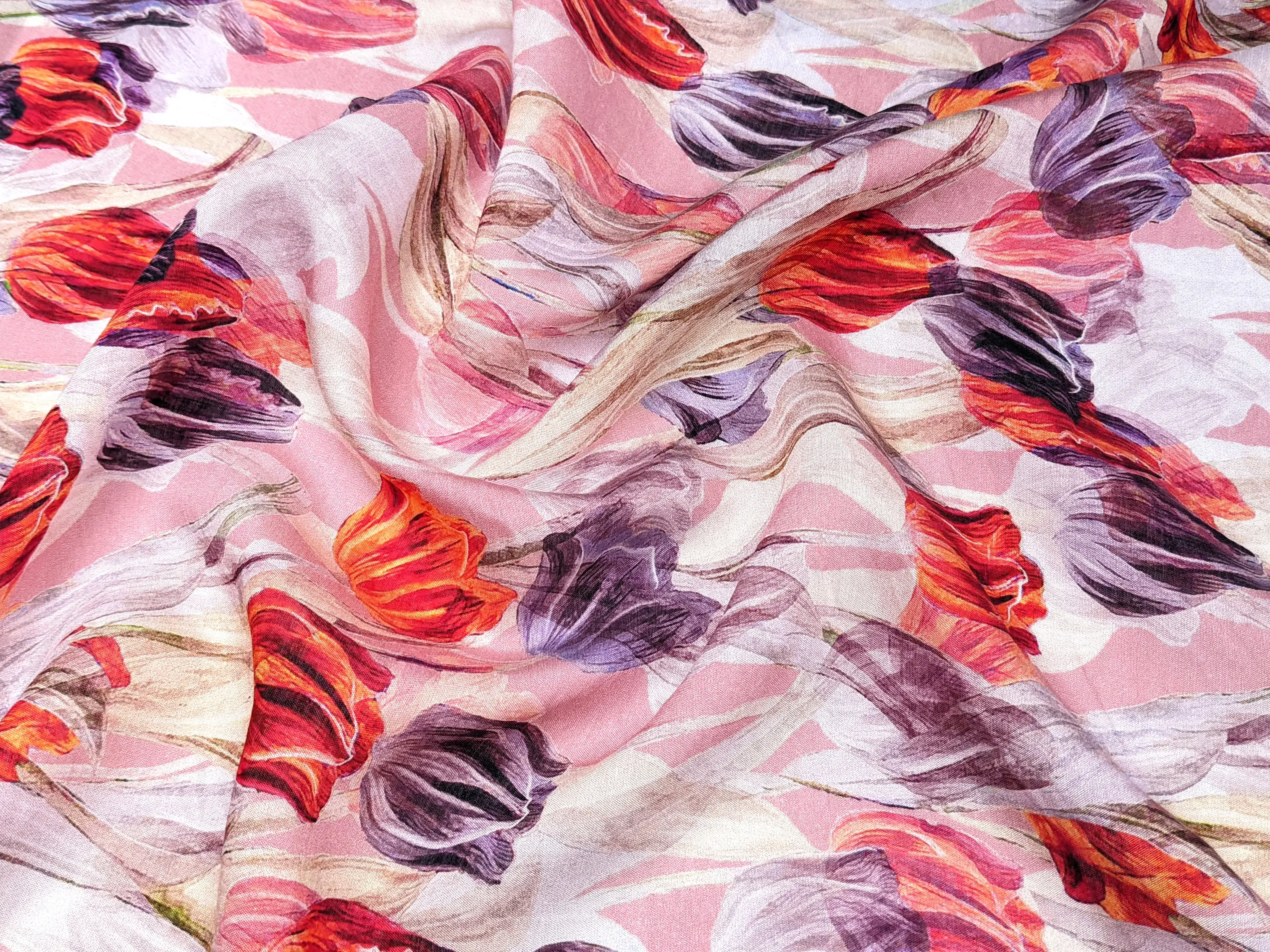 Шелк вискоза тюльпаны, розовый