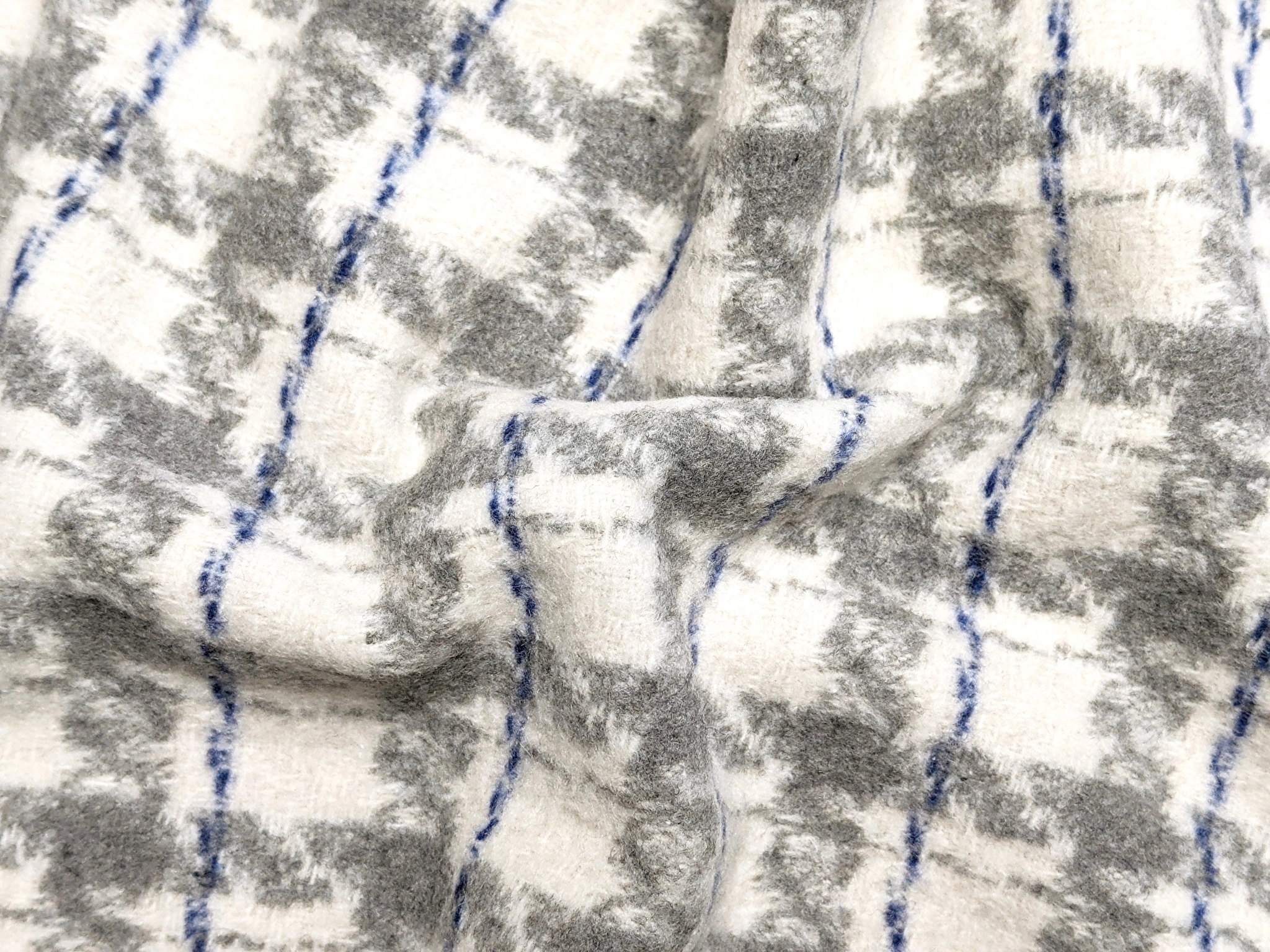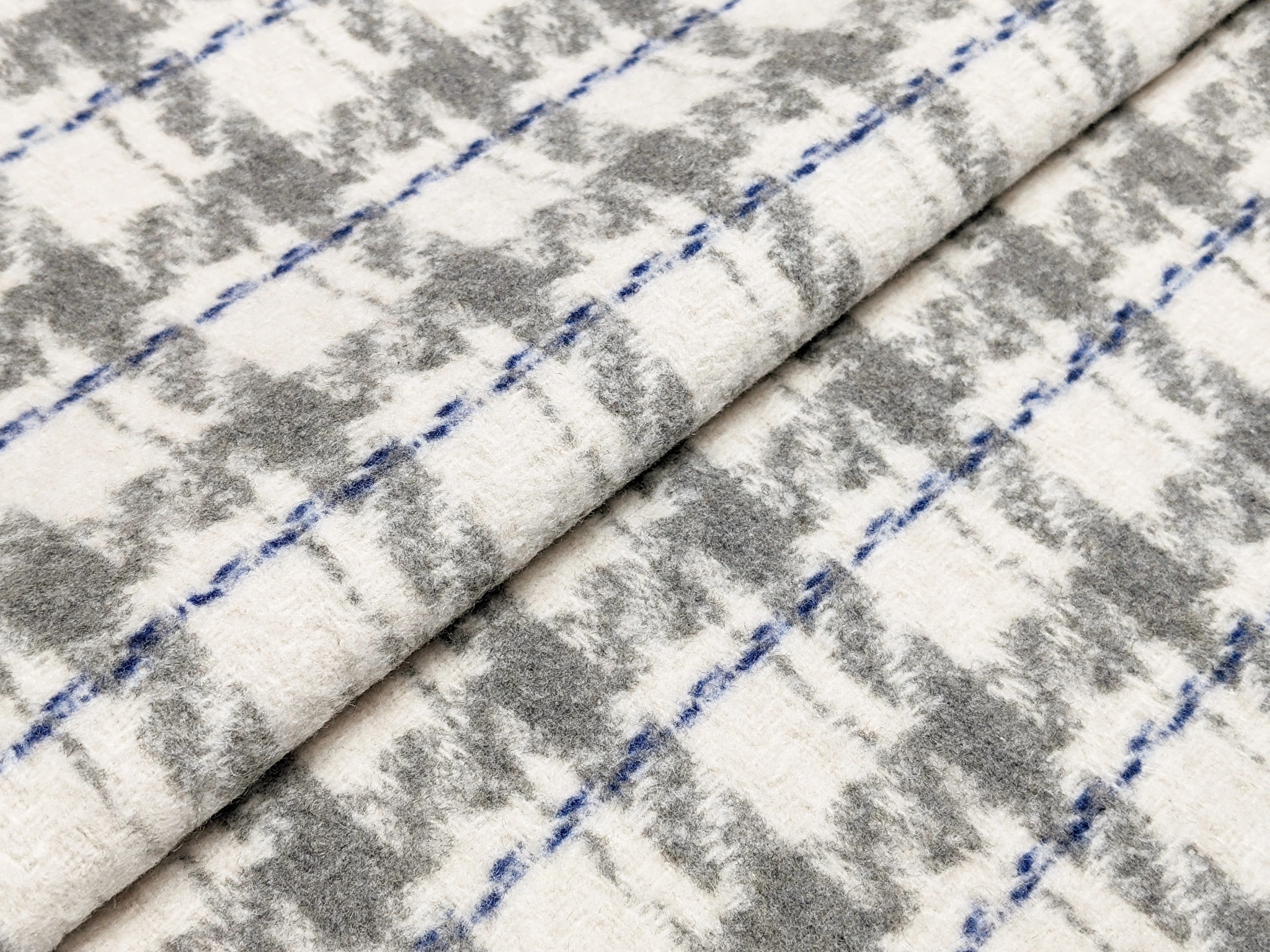 Шерсть пальтовая клетка 45 мм, серый на молочном