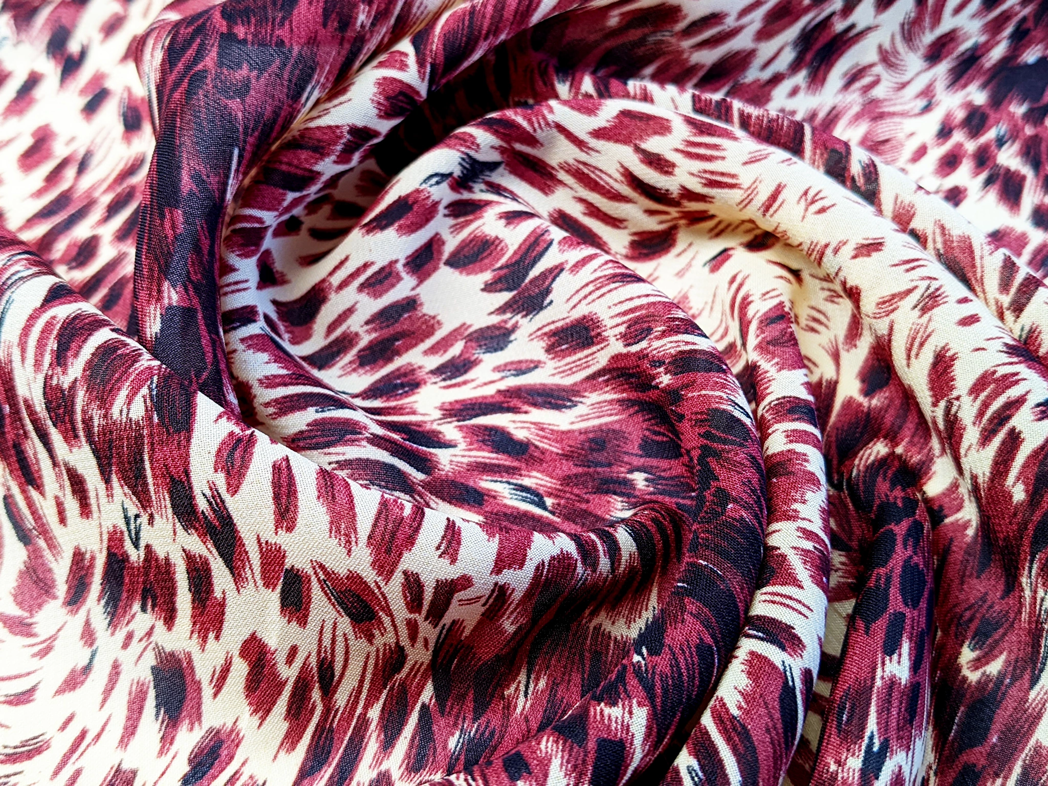 Шифон акварельные брызги, бордовый с бежевым