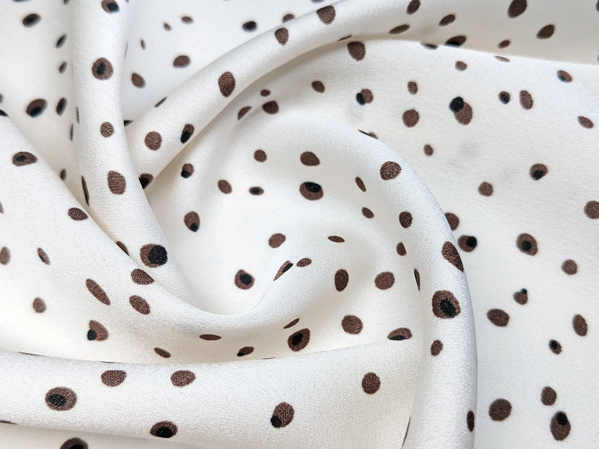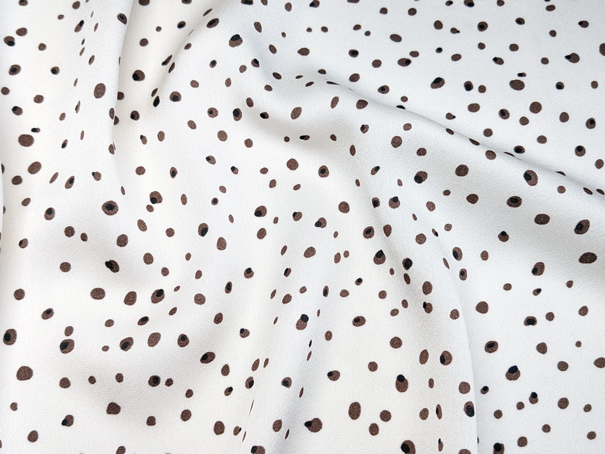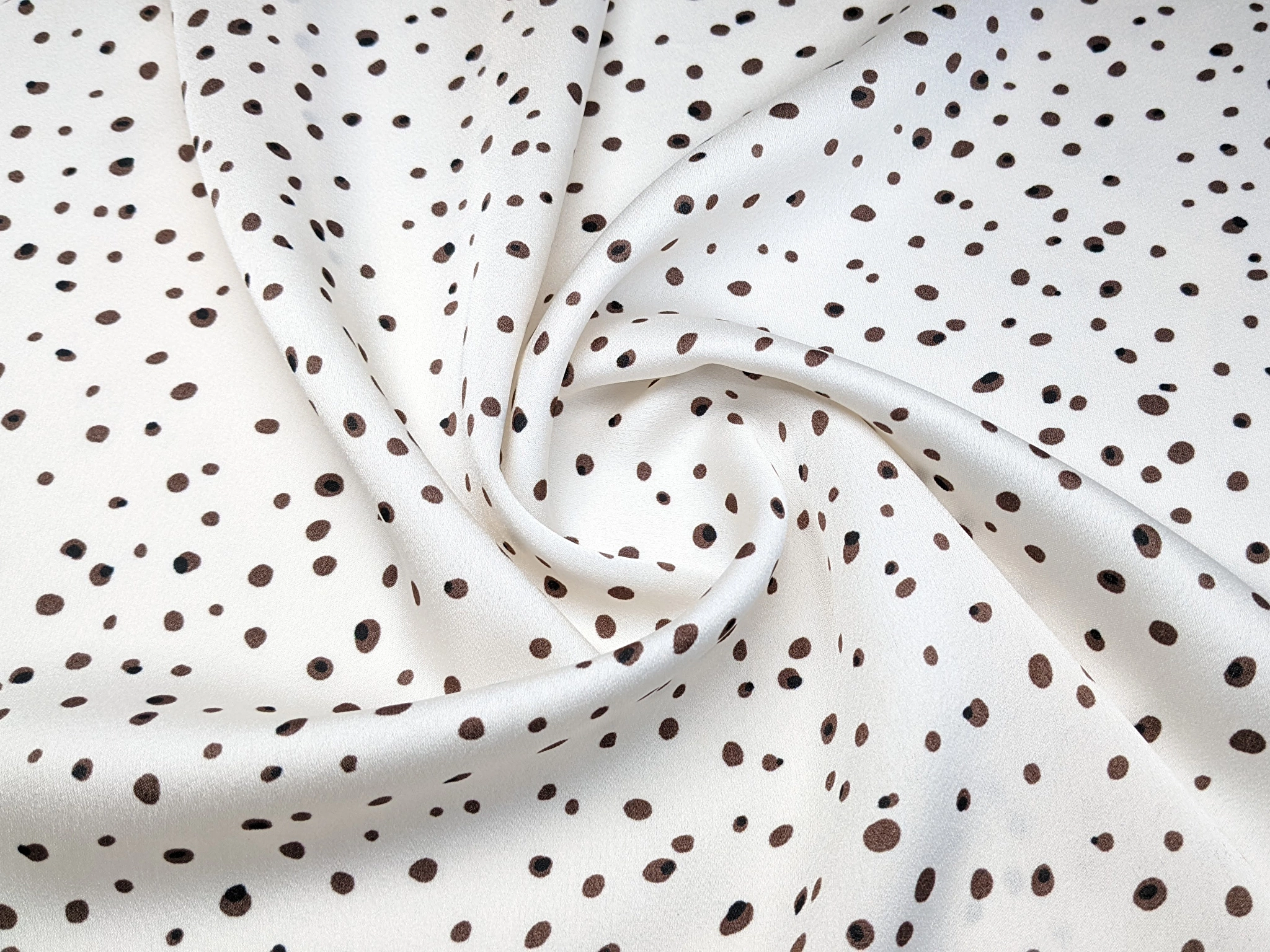 Шифон атласный мелкая россыпь, коричневый на молочном