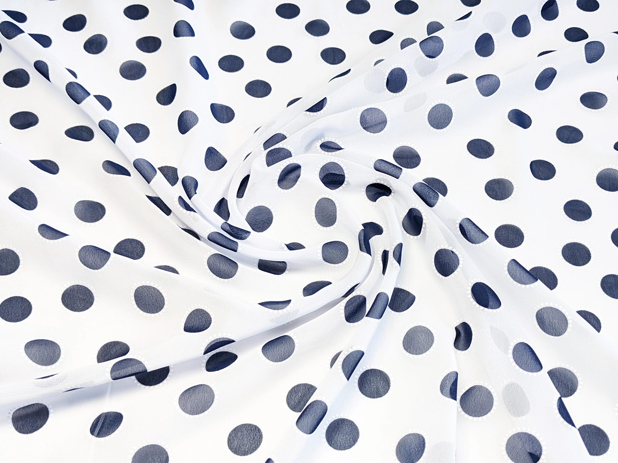 Шифон Бальпо горох 15 мм, темно-синий на белом