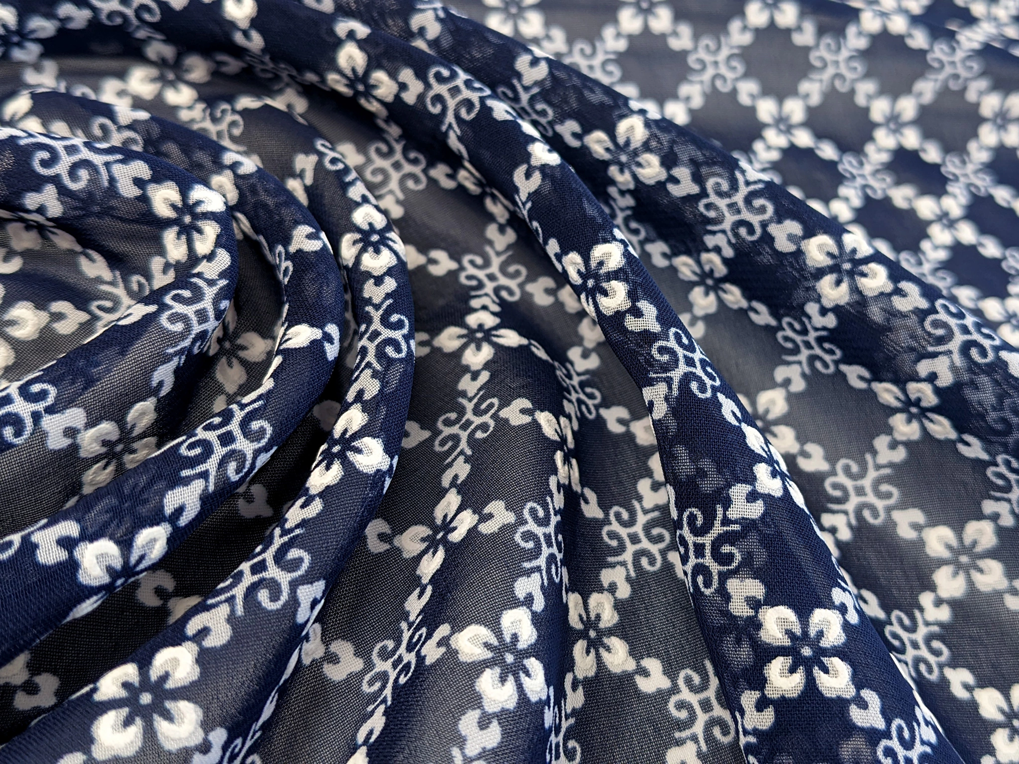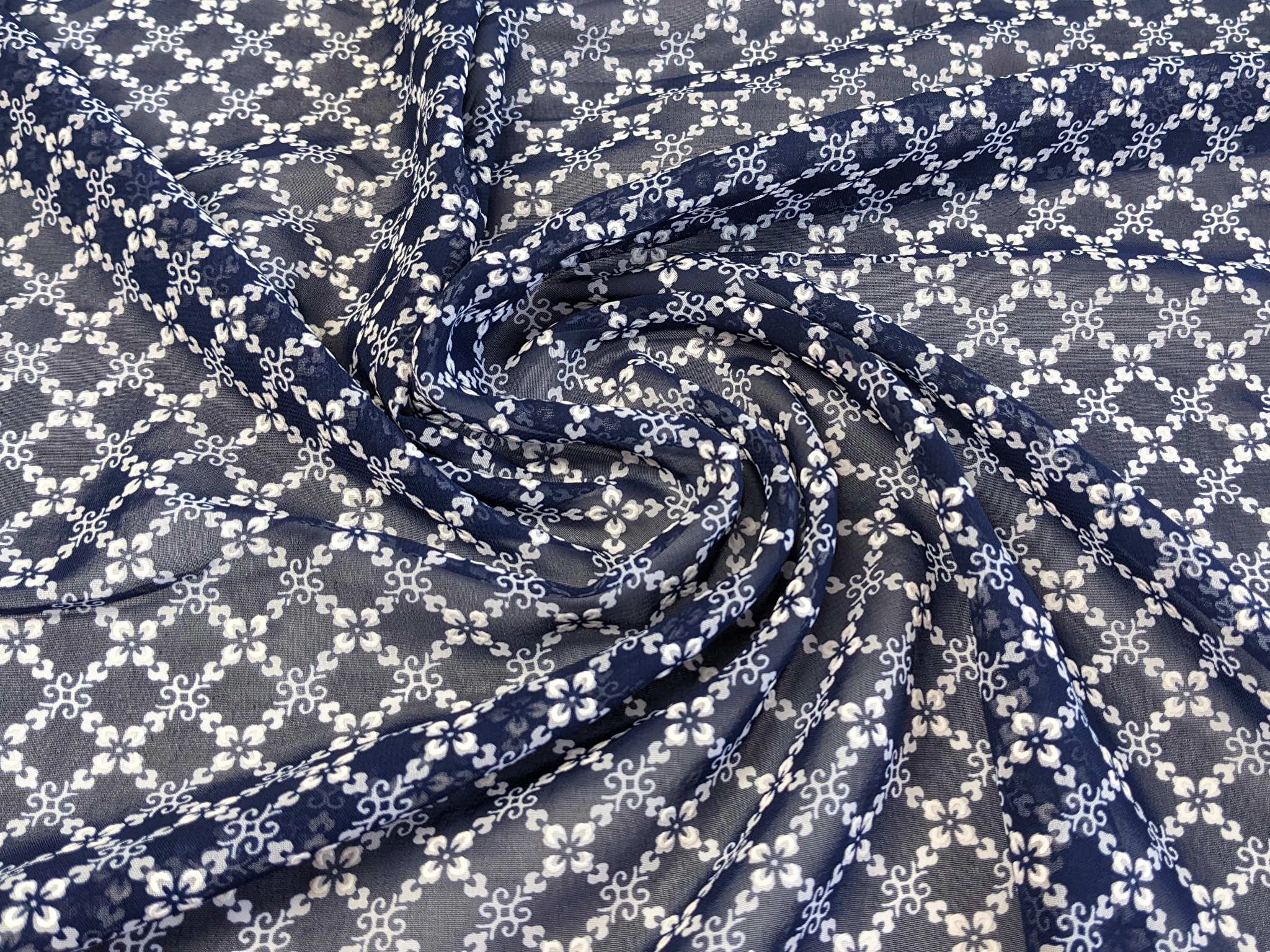 Шифон Бальпо цветочный ромб, темно-синий
