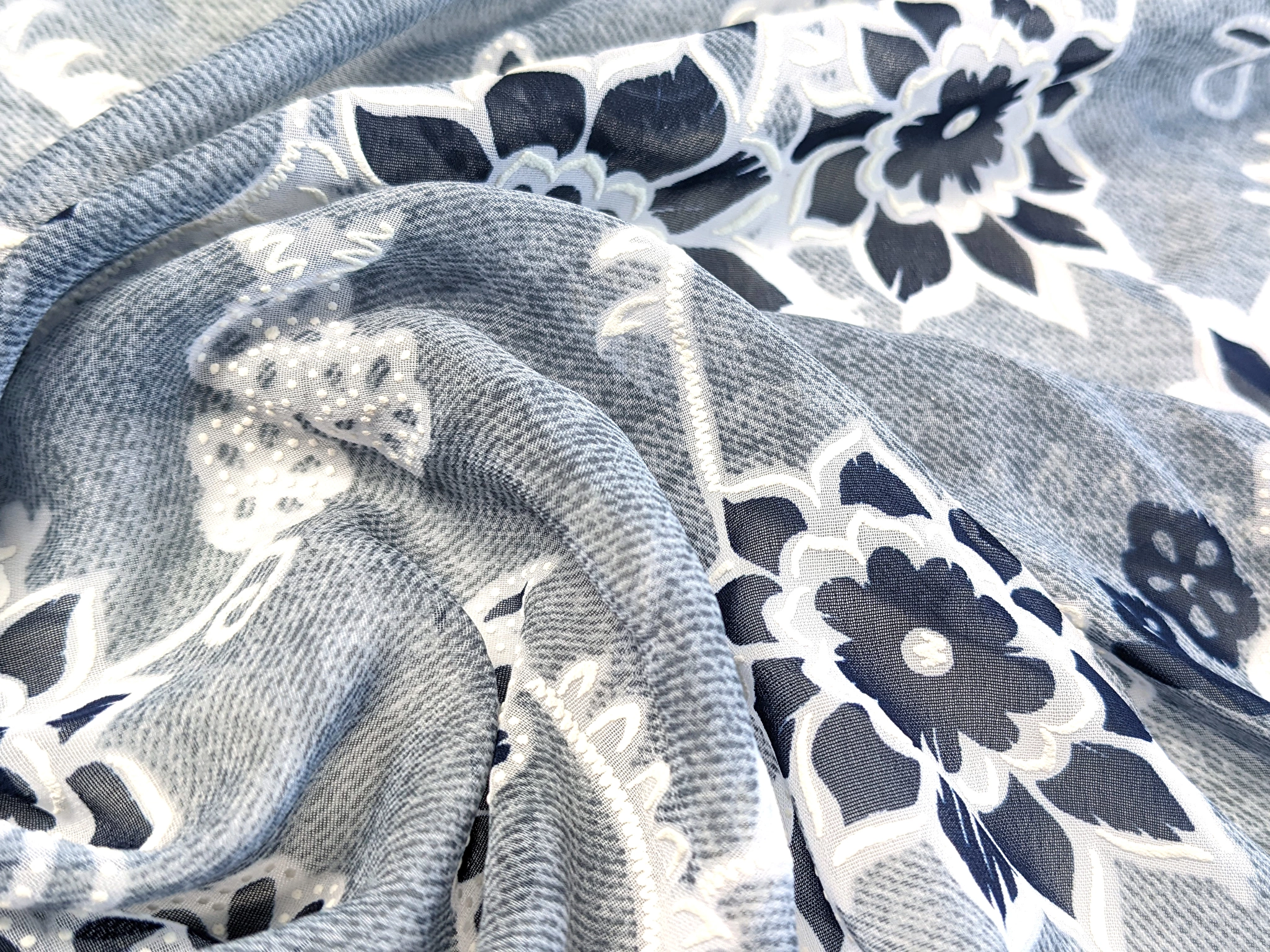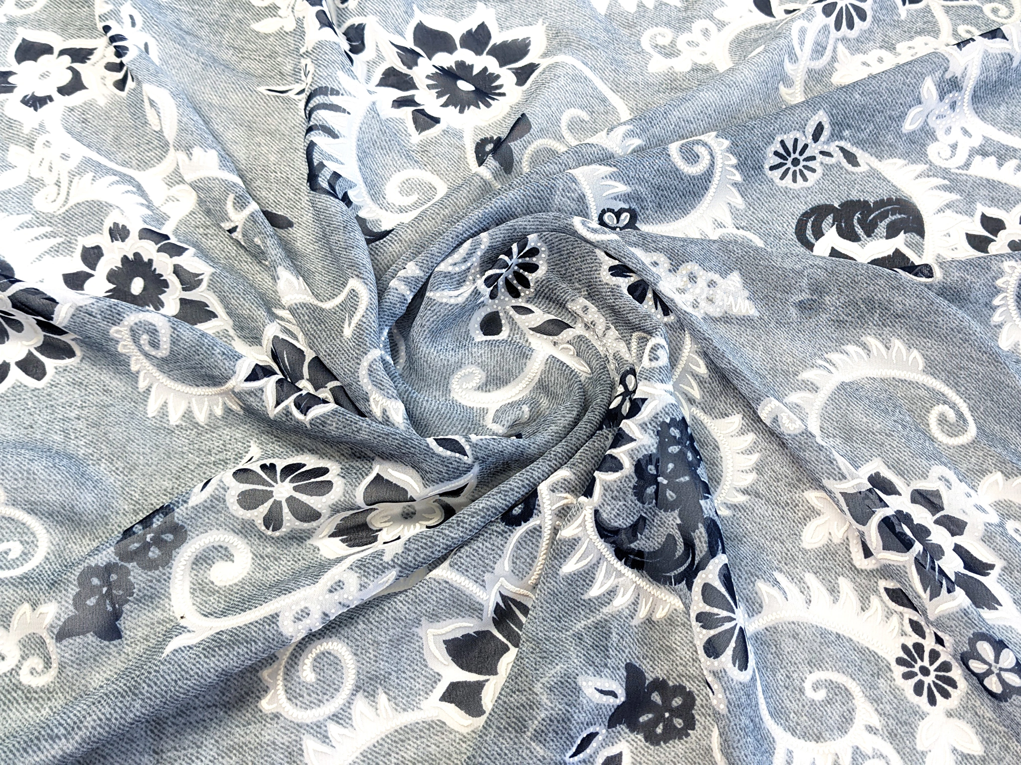 Шифон Бальпо цветочный узор, серый