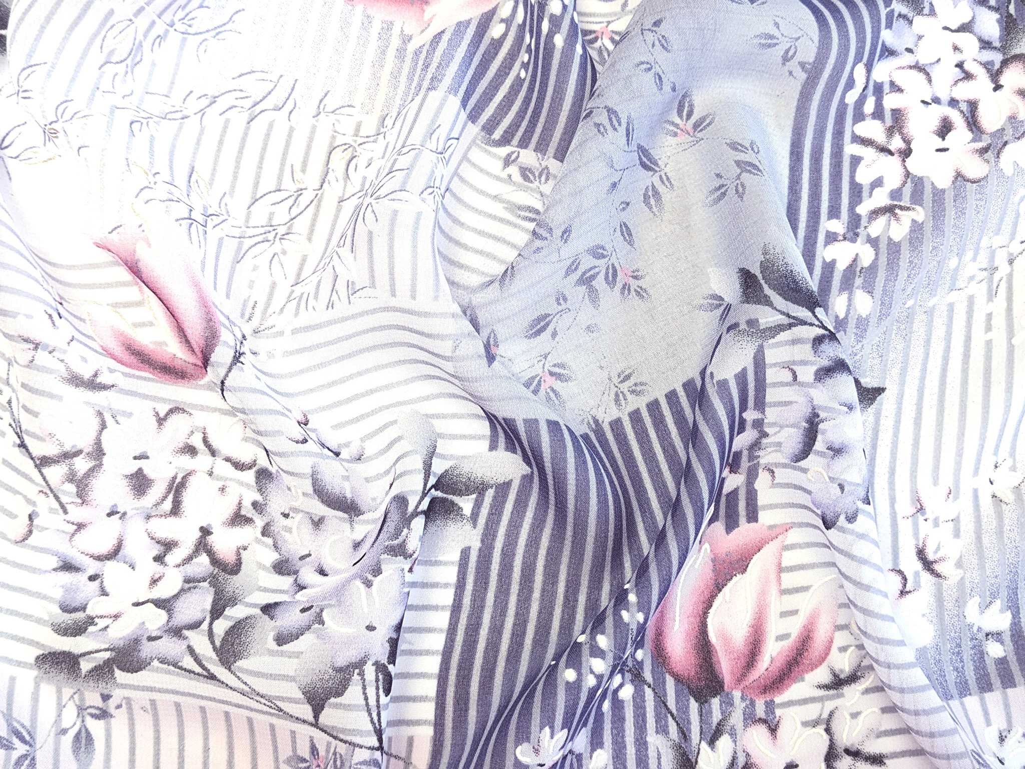 Шифон Бальпо цветы на полоске, серо-лиловый