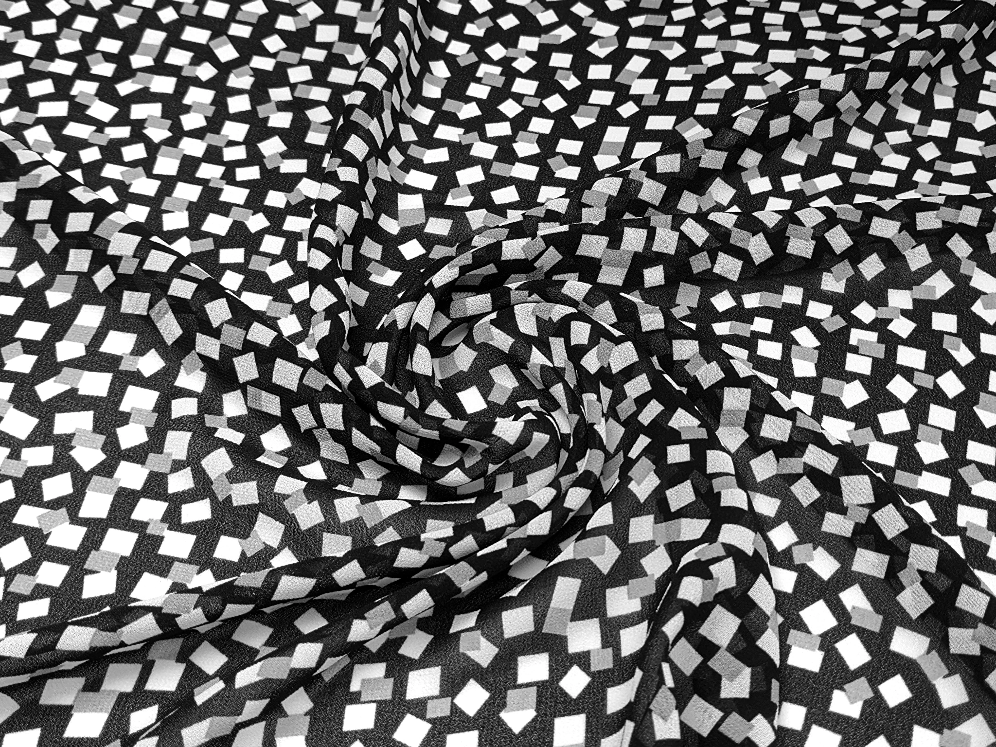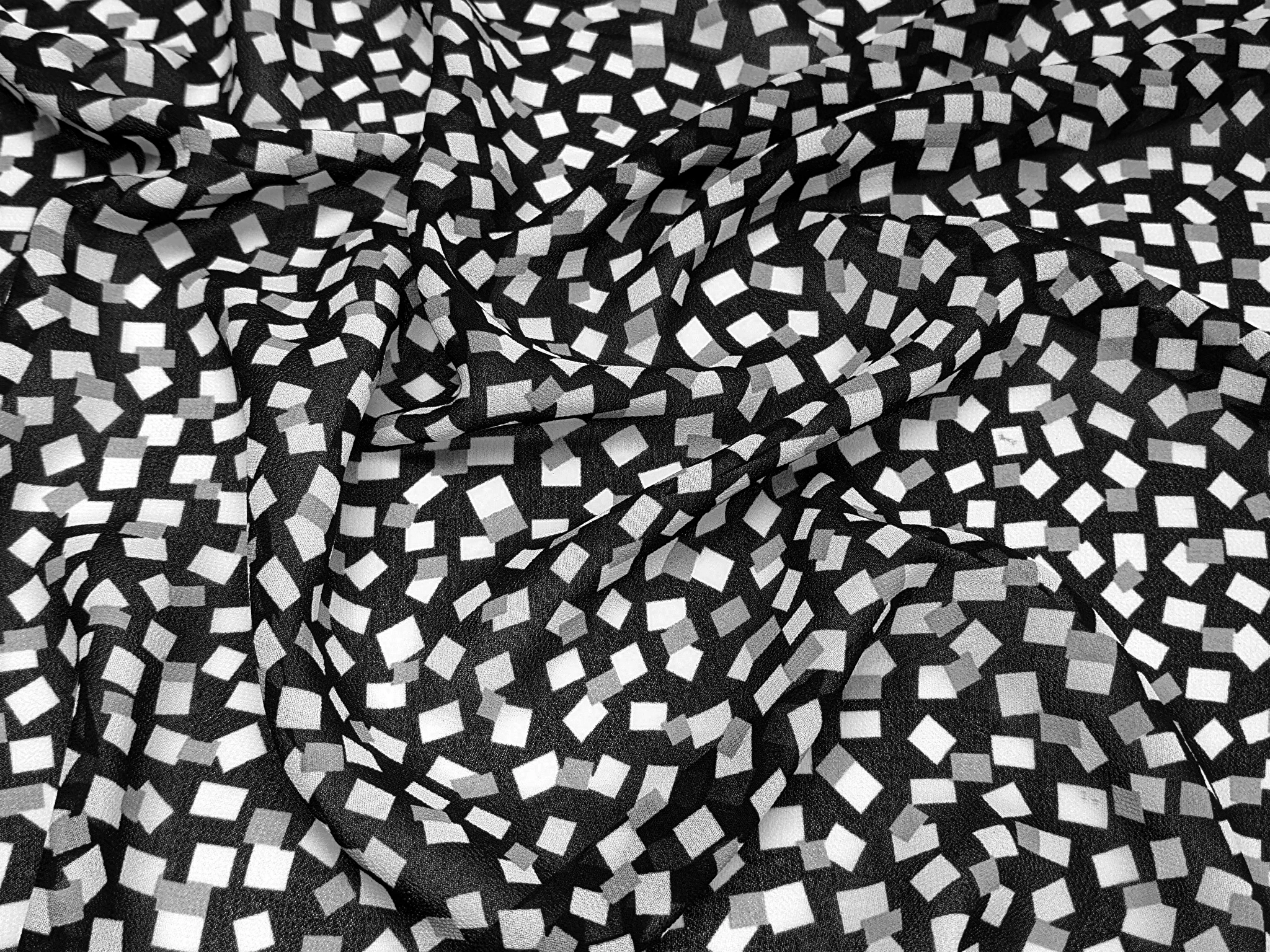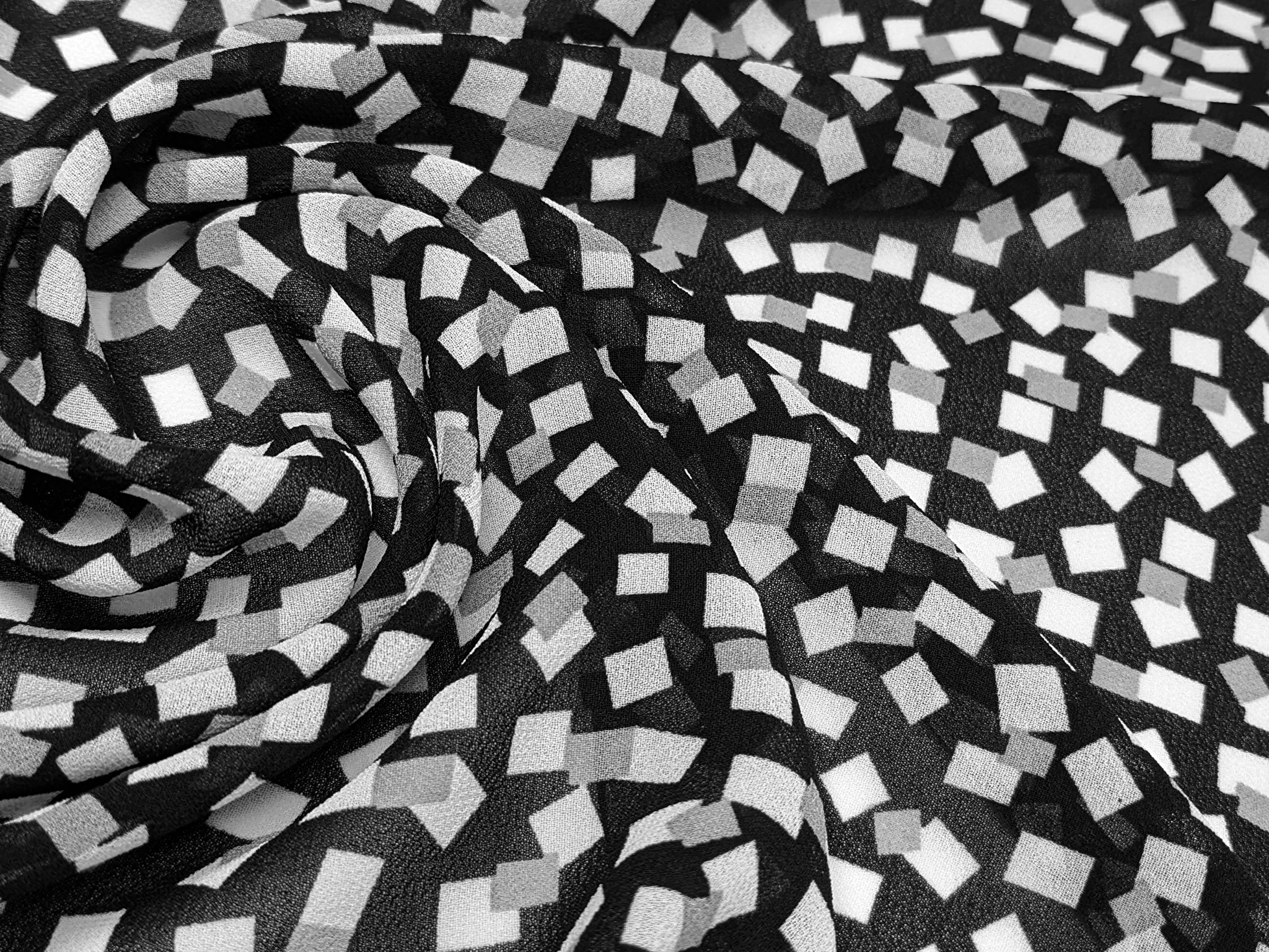 Принтованный креп-шифон - это полупрозрачная шероховатая ткань. Ткань красиво драпируется. Стирать и гладить изделия из крепа- шифона стоит с осторожностью, выбирая деликатные режимы. Полотно очень прочное благодаря туго переплетённым нитям. Для пошива платьев рекомендуем приобрести легкую подкладочную ткань.
