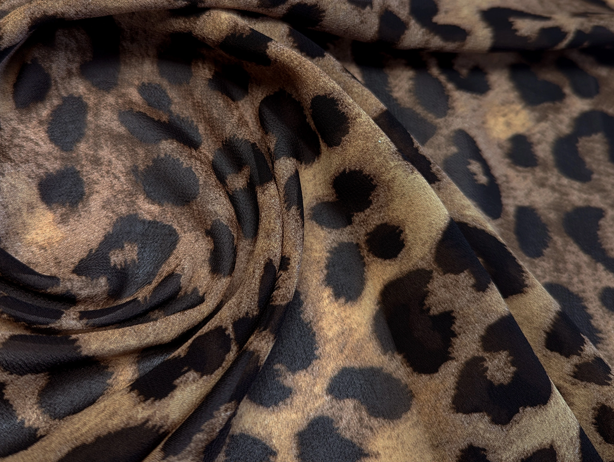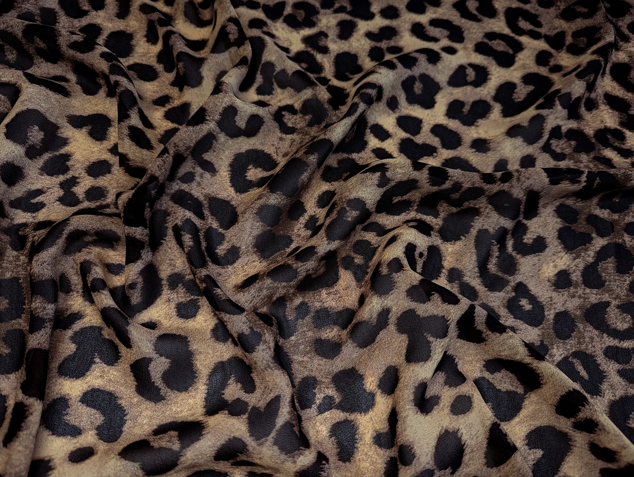 Шифон креповый леопард, коричнево-чёрный