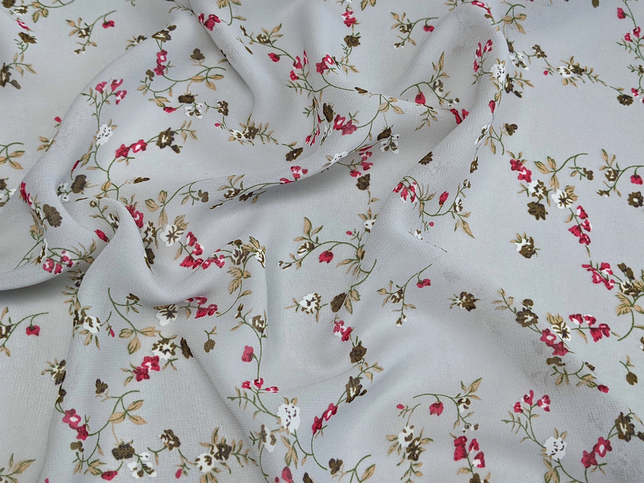 Принтованный креп-шифон - это полупрозрачная шероховатая ткань. Ткань красиво драпируется. Стирать и гладить изделия из крепа- шифона стоит с осторожностью, выбирая деликатные режимы. Полотно очень прочное благодаря туго переплетённым нитям. Для пошива платьев рекомендуем приобрести легкую подкладочную ткань.