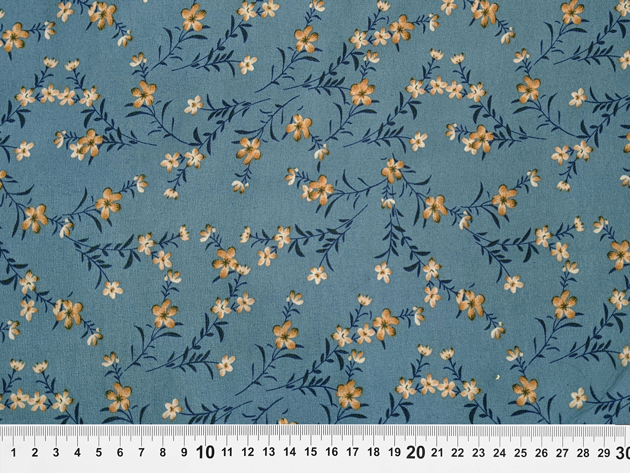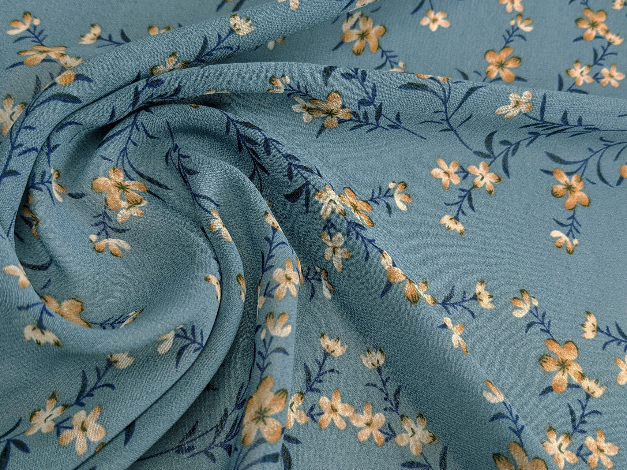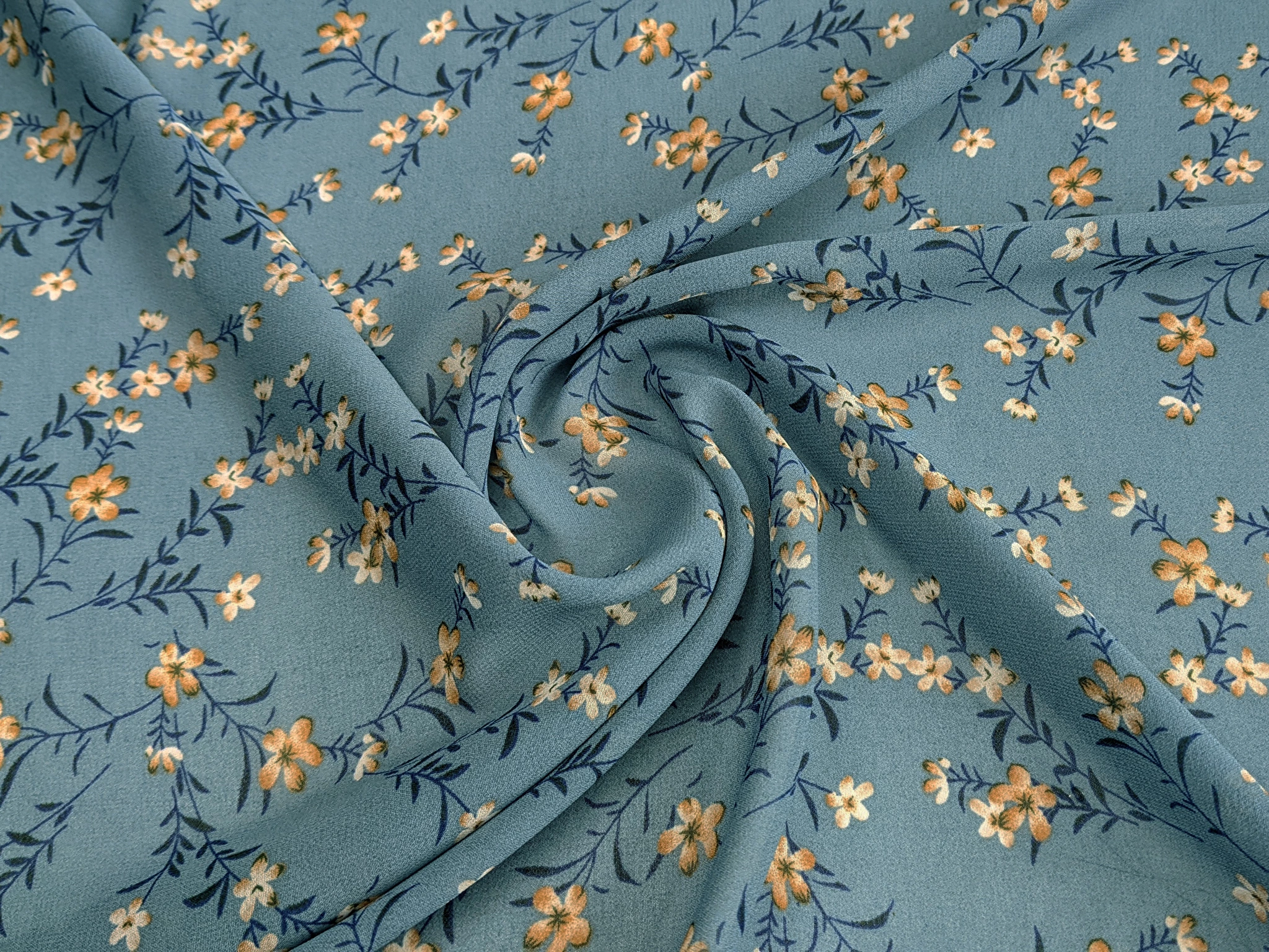 Шифон креповый цветущие веточки, джинсовый