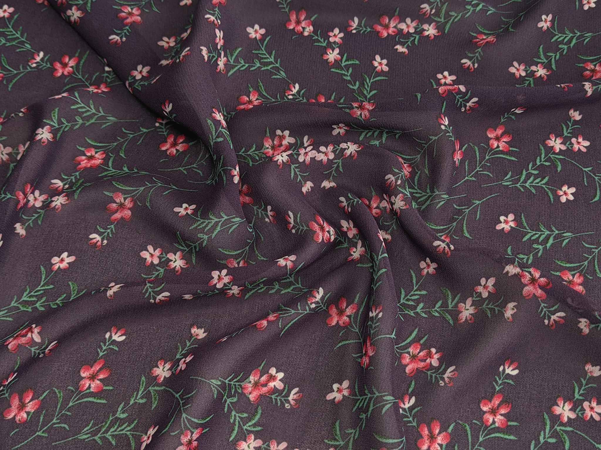 Принтованный креп-шифон - это полупрозрачная шероховатая ткань. Ткань красиво драпируется. Стирать и гладить изделия из крепа- шифона стоит с осторожностью, выбирая деликатные режимы. Полотно очень прочное благодаря туго переплетённым нитям. Для пошива платьев рекомендуем приобрести легкую подкладочную ткань.