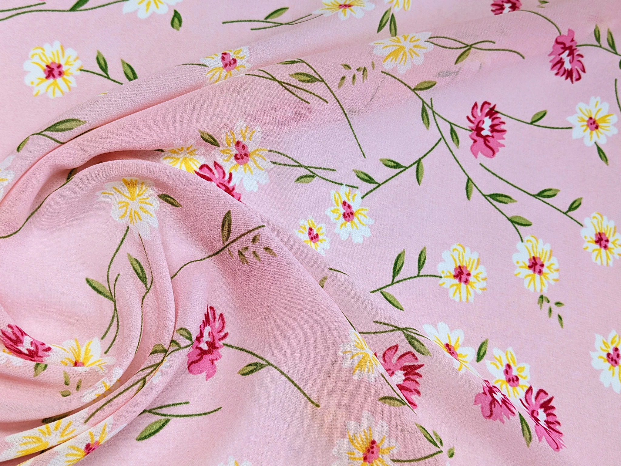 Шифон креповый васильки, розовый