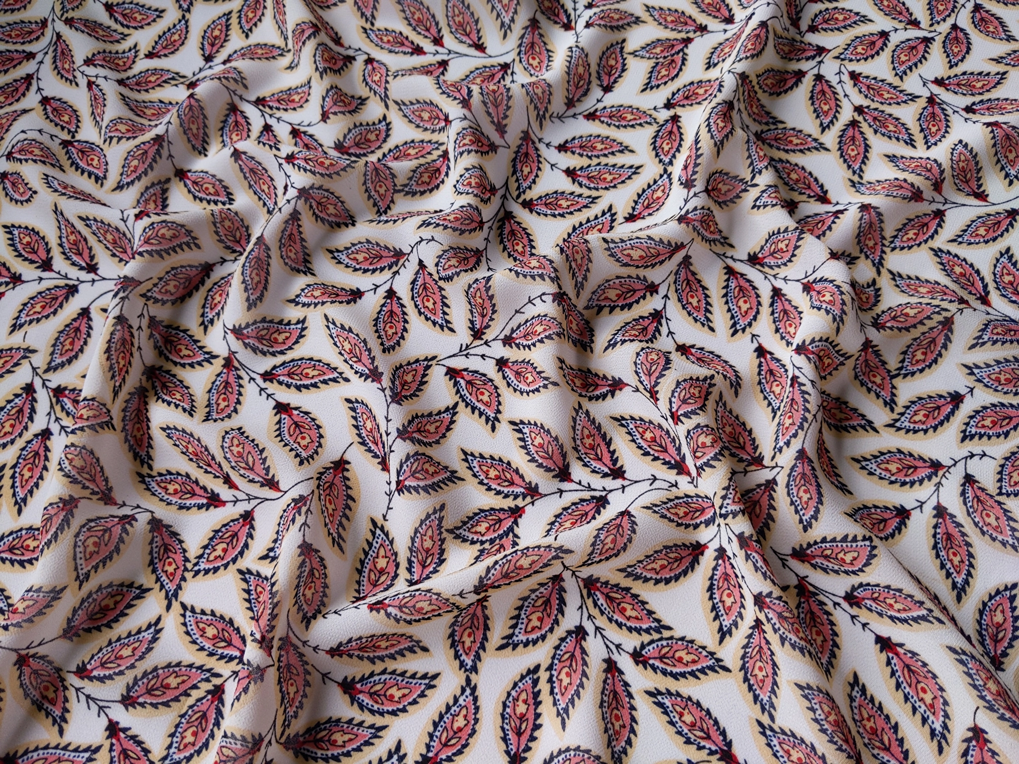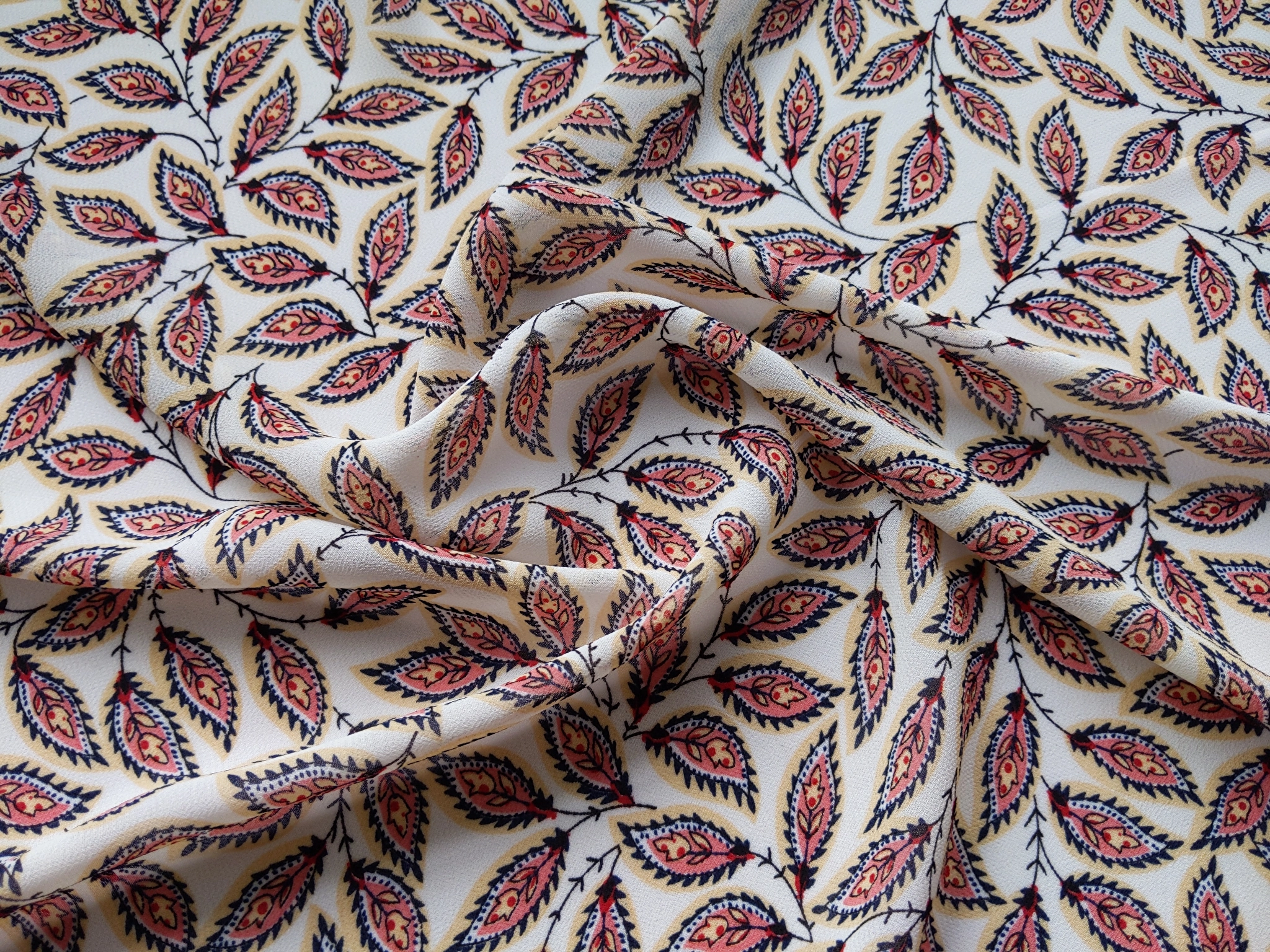 Шифон креповый сказочная листва, молочный