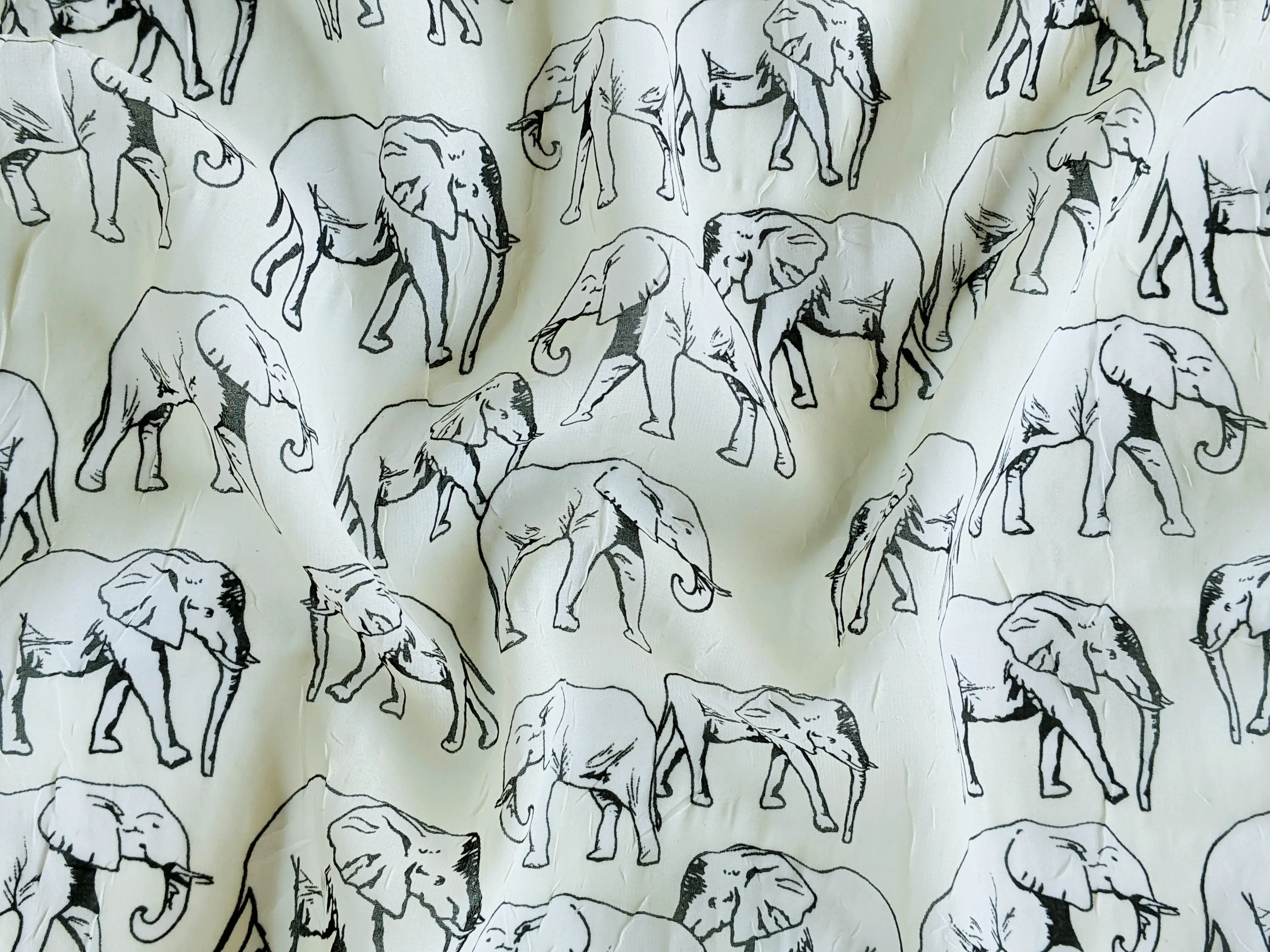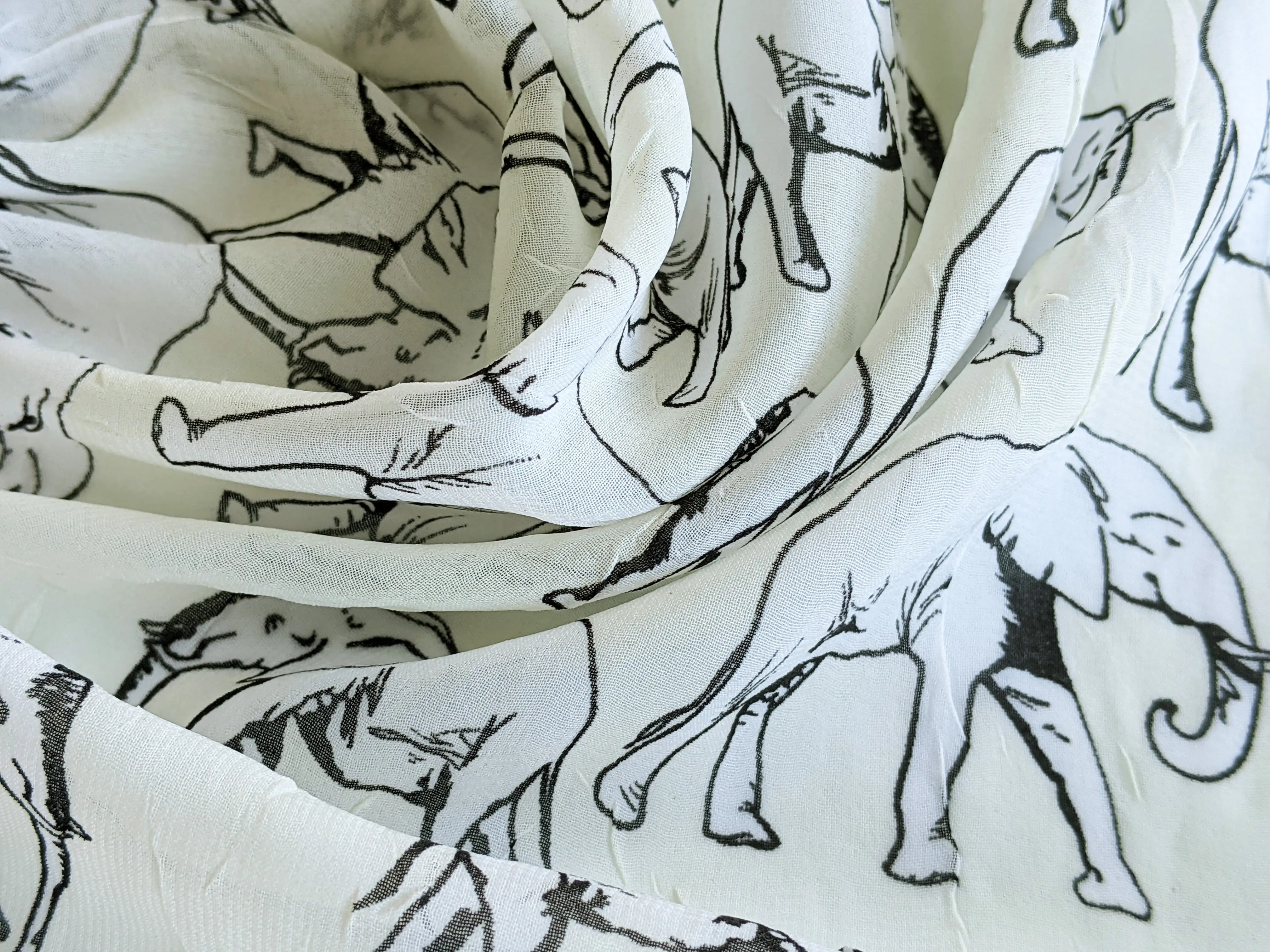 Шифон креш слоники, молочно-черный (отрез 2 м)