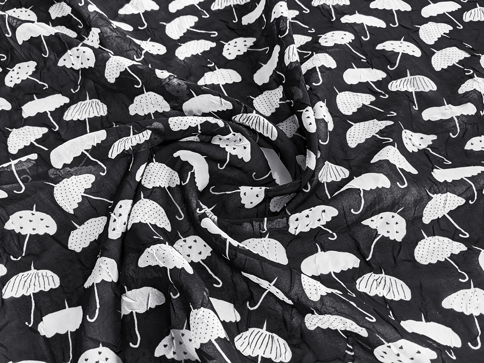 Шифон креш зонтики, черный