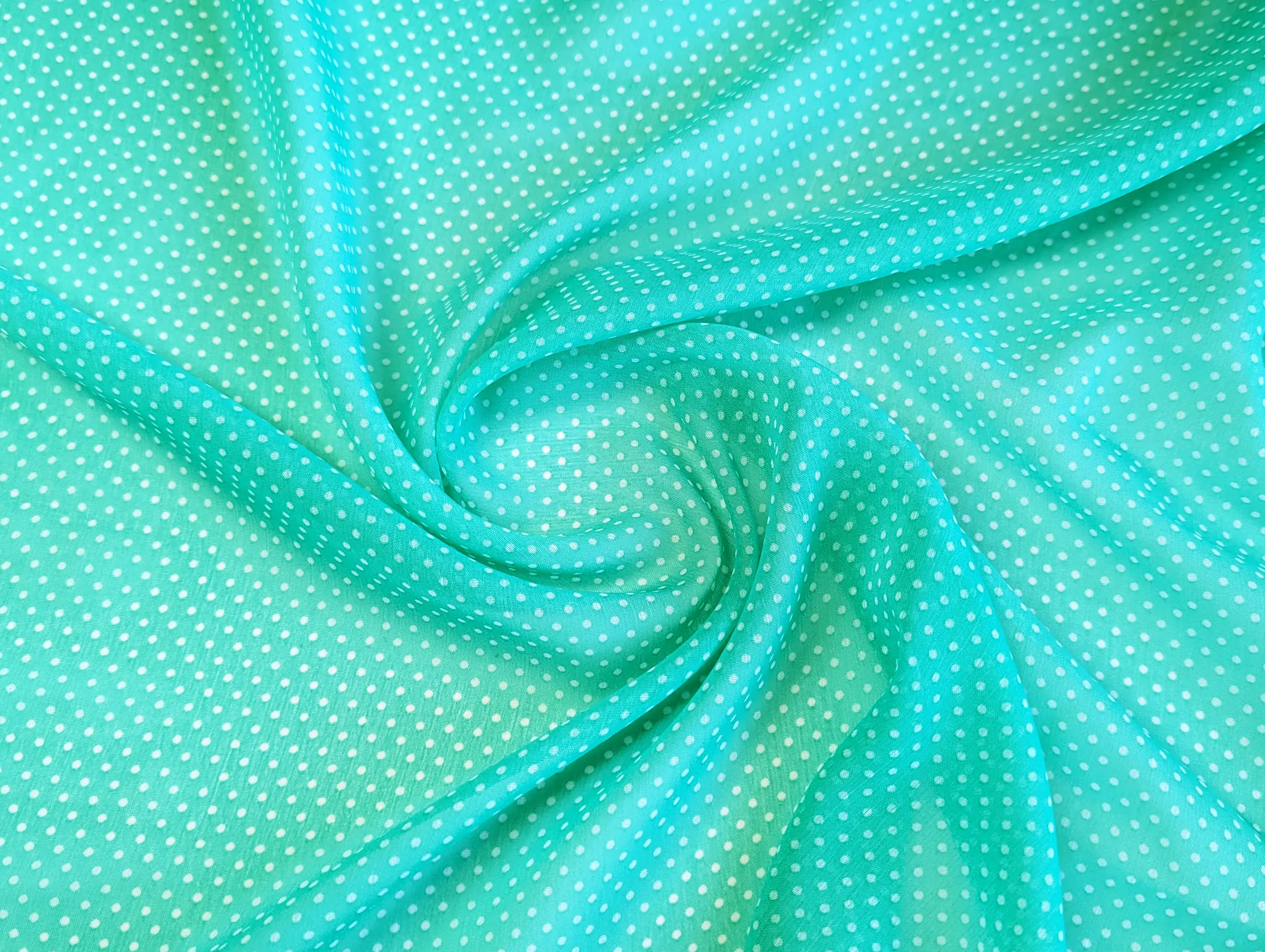Шифон - это легкая, тонкая и прозрачная ткань. Ткань имеет песчаную структуру и шероховатую поверхность. Шифон ассоциируется с женственностью, нежностью и хрупкостью. Полотно не мнется и красиво драпируется, поэтому используется для пошива блуз, платьев, юбок и сарафанов. Шифон можно комбинировать с трикотажем в качестве подкладки. Стирать ткань лучше в специальном мешочке в режиме ручной стирки и гладить через марлю.