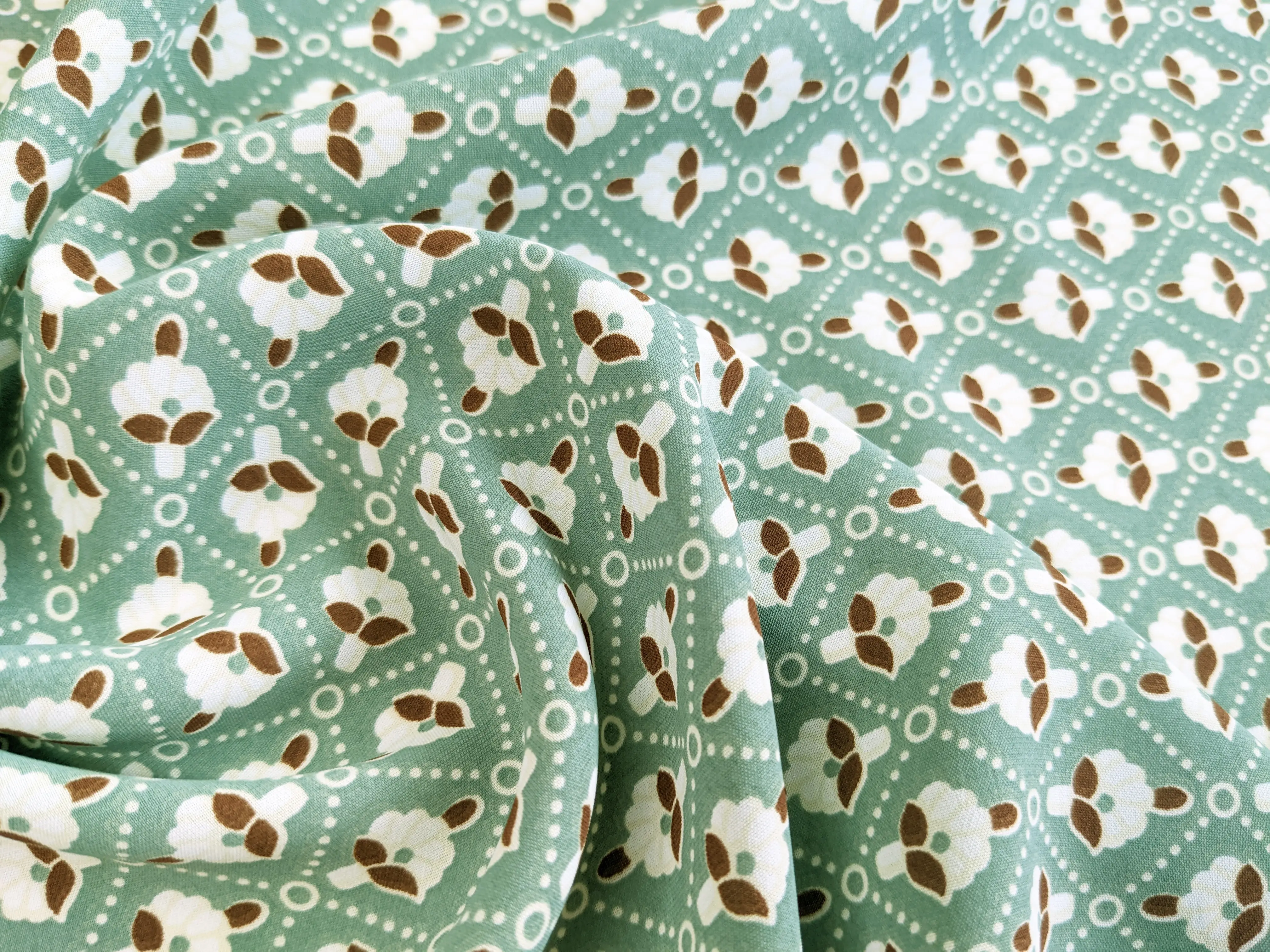Шифон софт Грейс ромбы с цветочком, серо-оливковый (отрез 1,3 м)