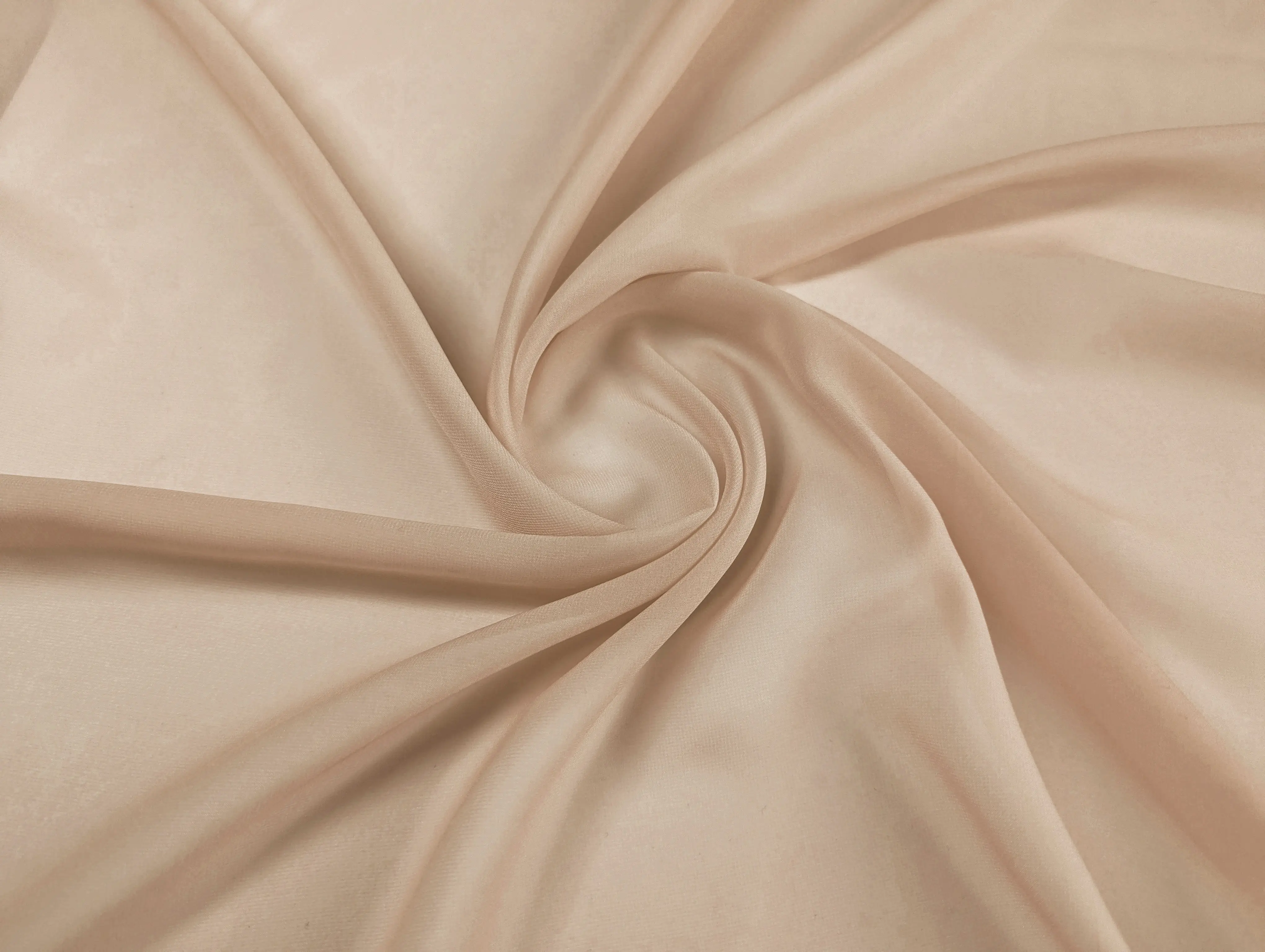 Шифон Винди - легкий, струящийся, летящий, прозрачный на теле и на просвет материал, приятный на ощупь. Ткань матовая, равномерно окрашенная, переплетение очень тонкое благодаря чему поверхность совершенно гладкая, пластичная, но эластичности не имеет. Драпируется в мягкие, обтекаемые складки и выкладывается по любой форме, воздушная и воздухопроницаемая.