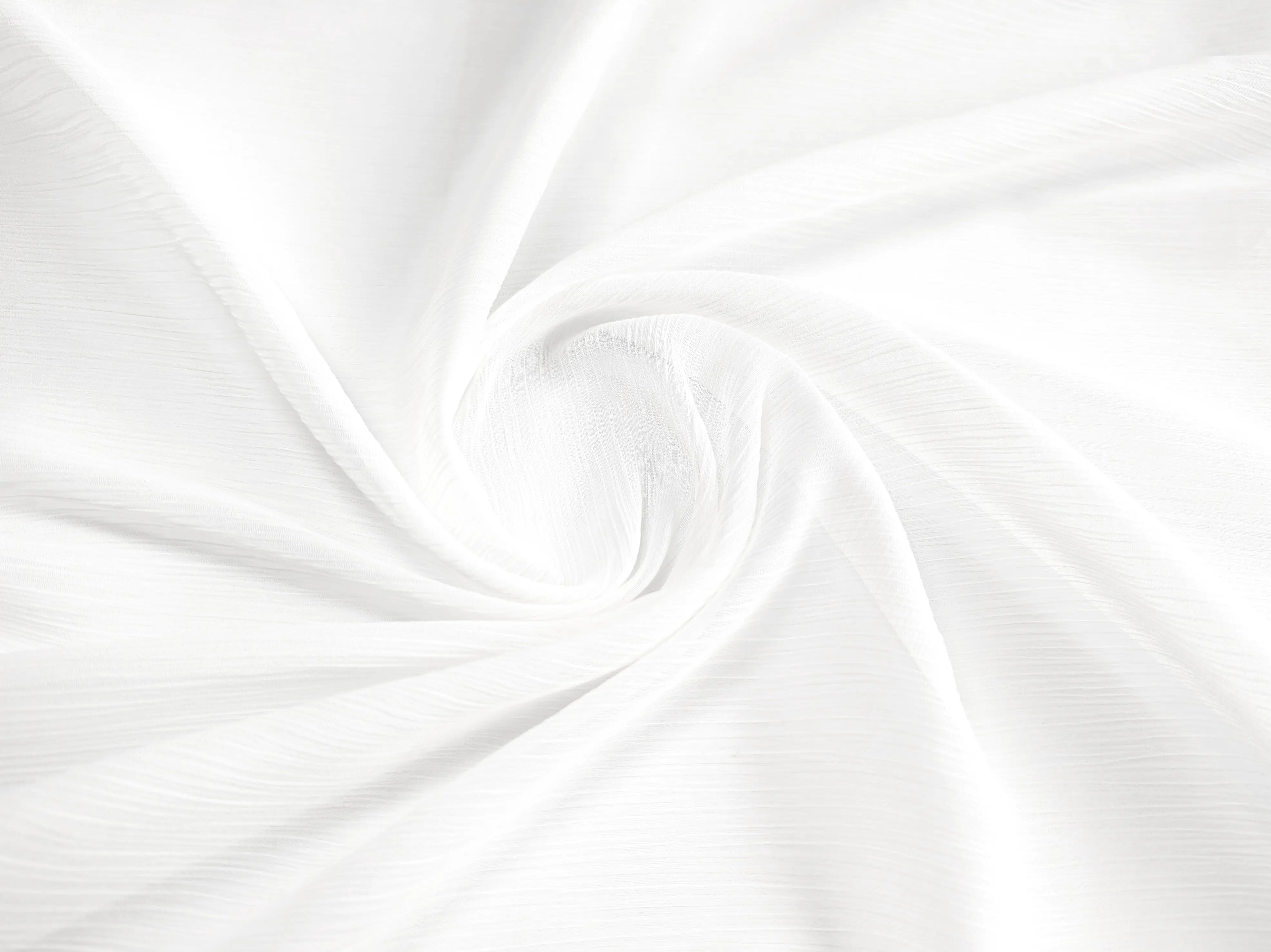 Жатая фактура придаёт ткани объём и визуальную глубину, помогает хорошо сохранять форму и делает изделия выразительными без дополнительной обработки. Данный вид шифонового полотна не требует особого ухода, практически не мнётся, а изделия комфортные и практичные в носке.