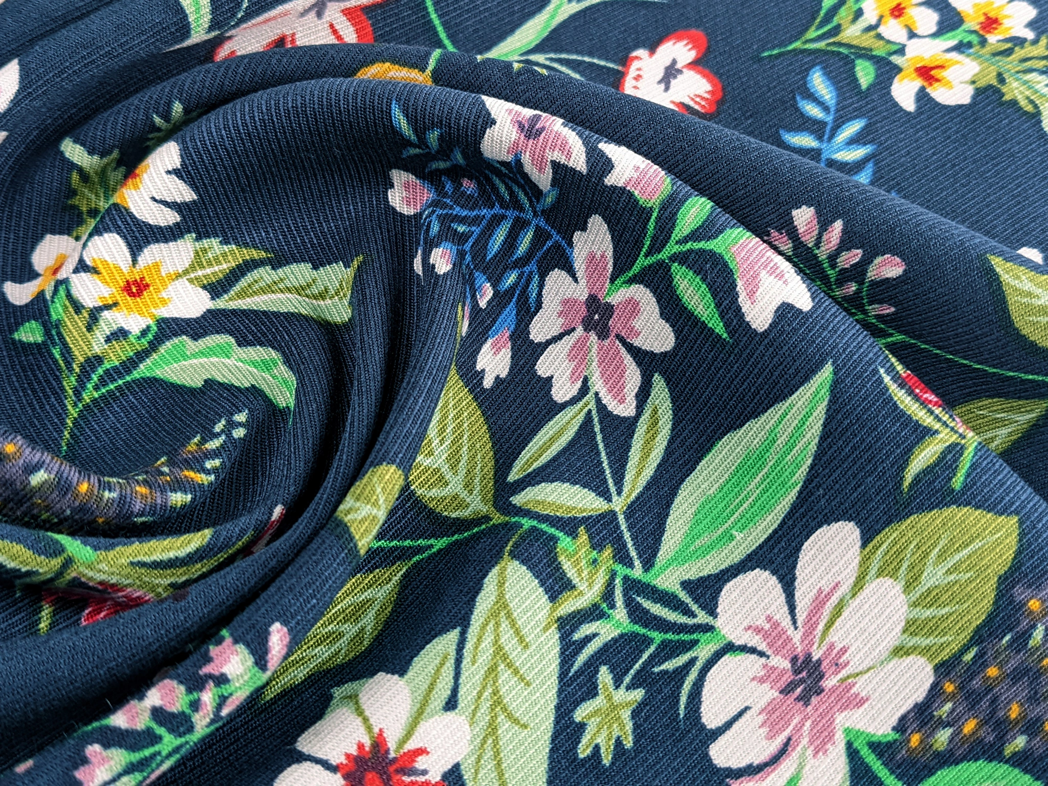 Штапель Бельмондо летняя полянка, синий (отрез 1,9 м)