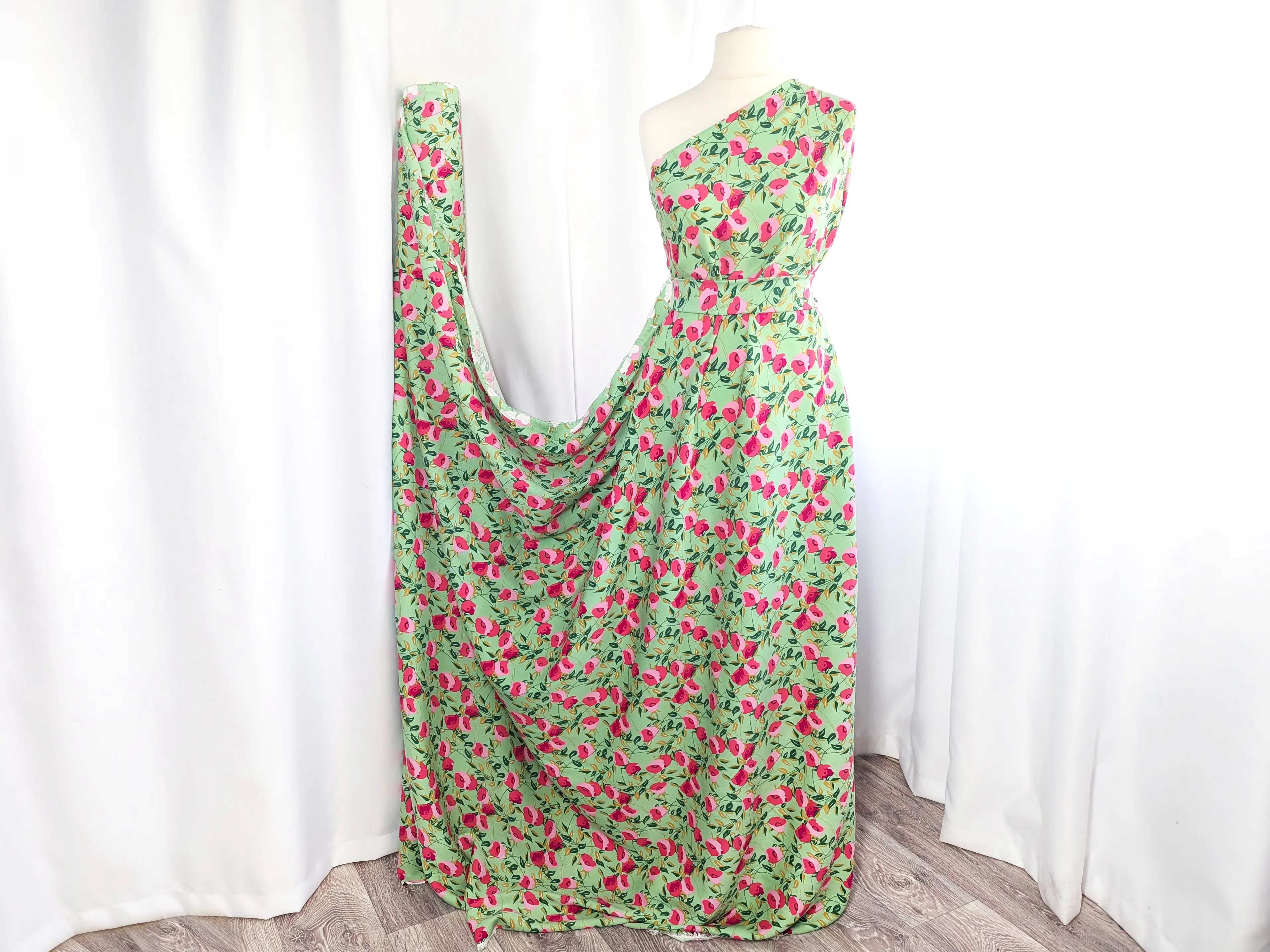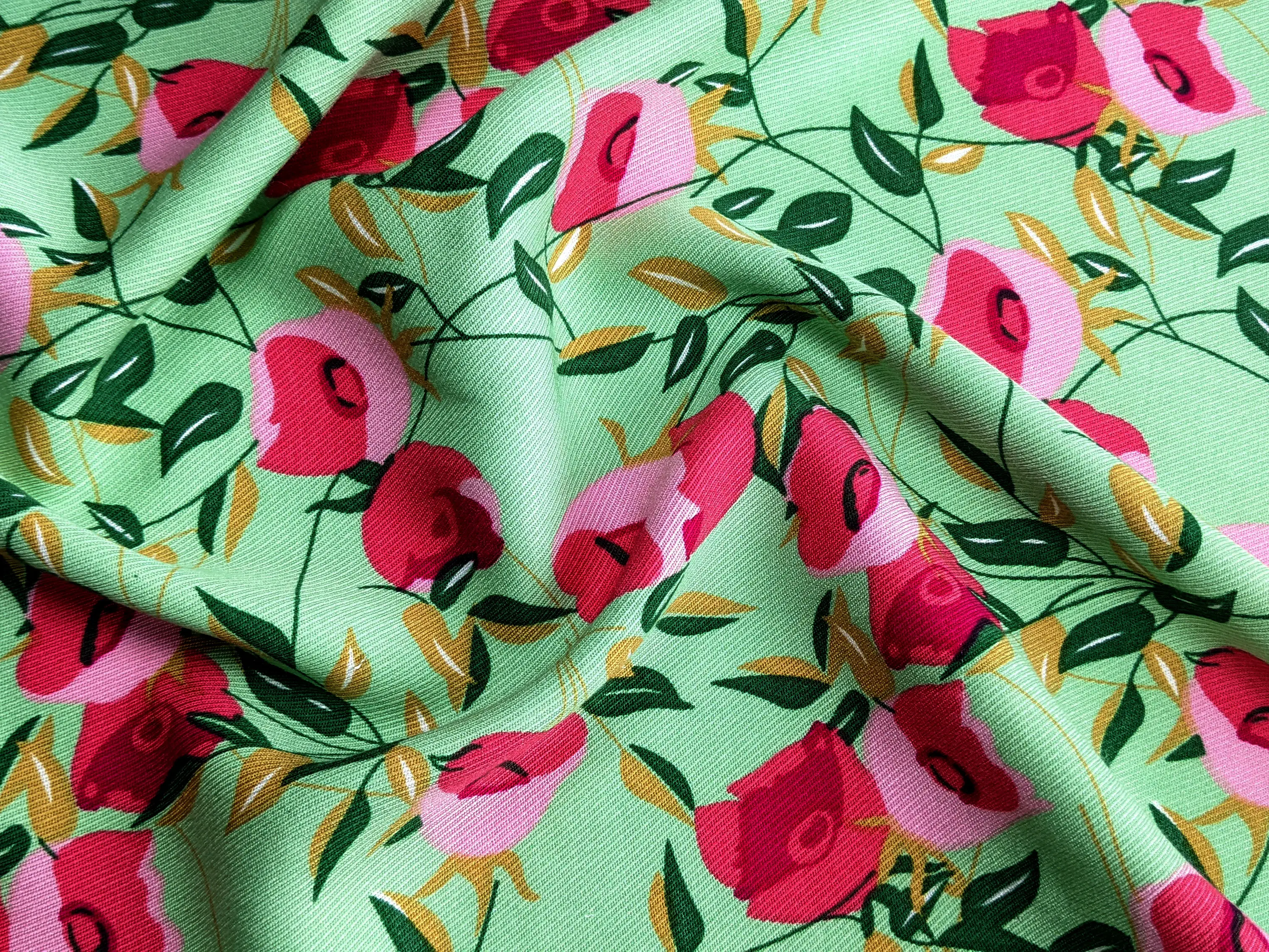 В отличии от штапеля классического полотно имеет более плотную структуру, благодаря которой отлично подходит для пошива комбинезонов, платьев и блуз.
