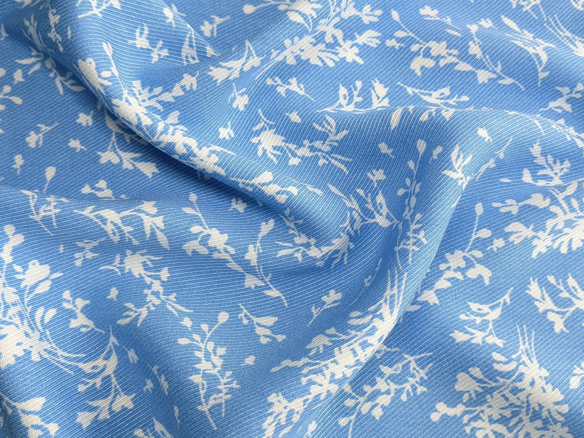 В отличии от штапеля классического полотно имеет более плотную структуру, благодаря которой отлично подходит для пошива комбинезонов, платьев и блуз.