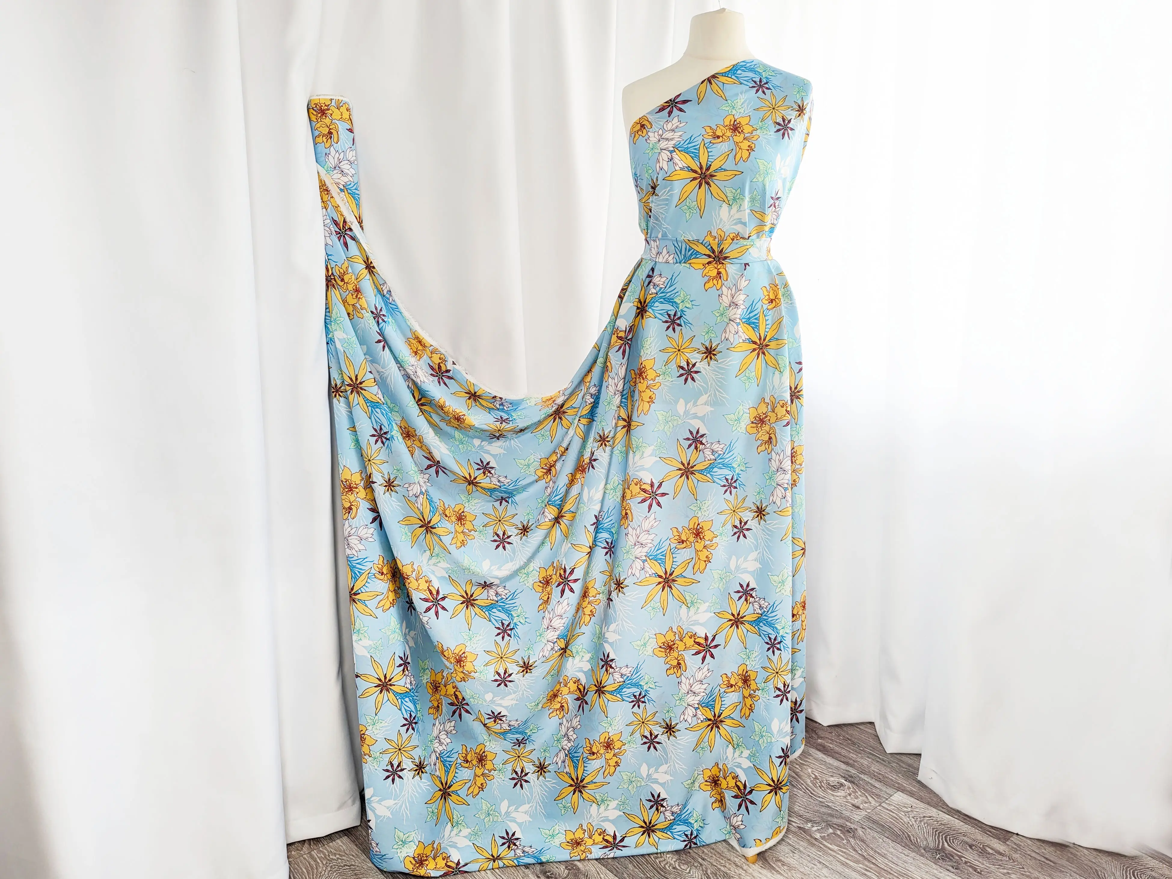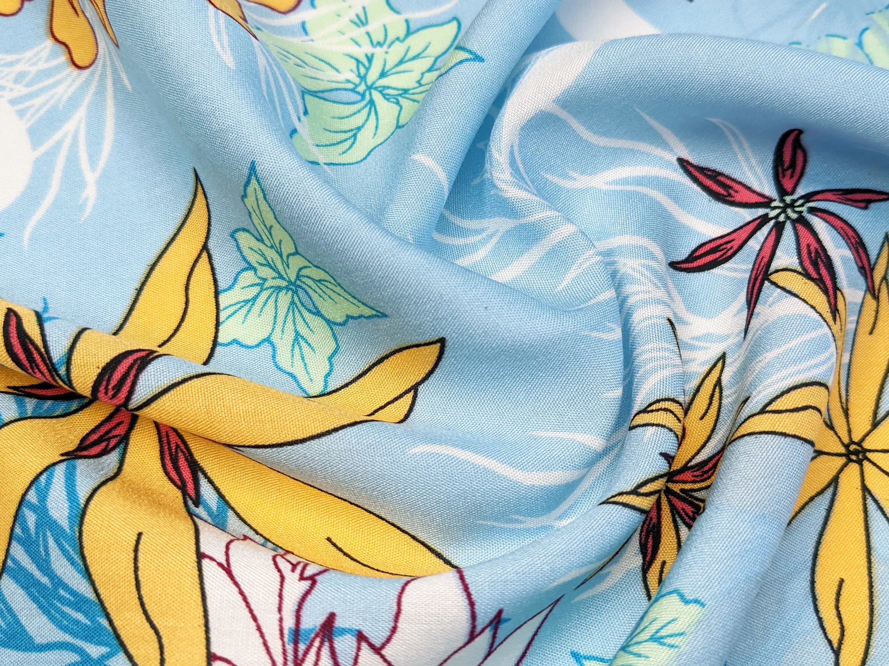 Штапель крупные цветы, голубой (отрез 2,9 м)
