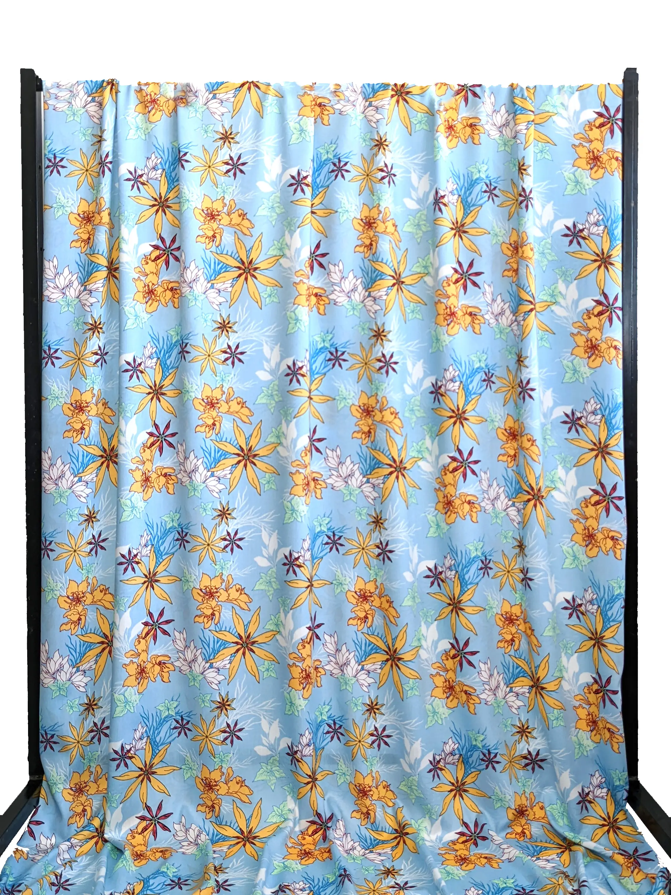Штапель крупные цветы, голубой (отрез 2,9 м) (ш41, 2111062, д14, к3)