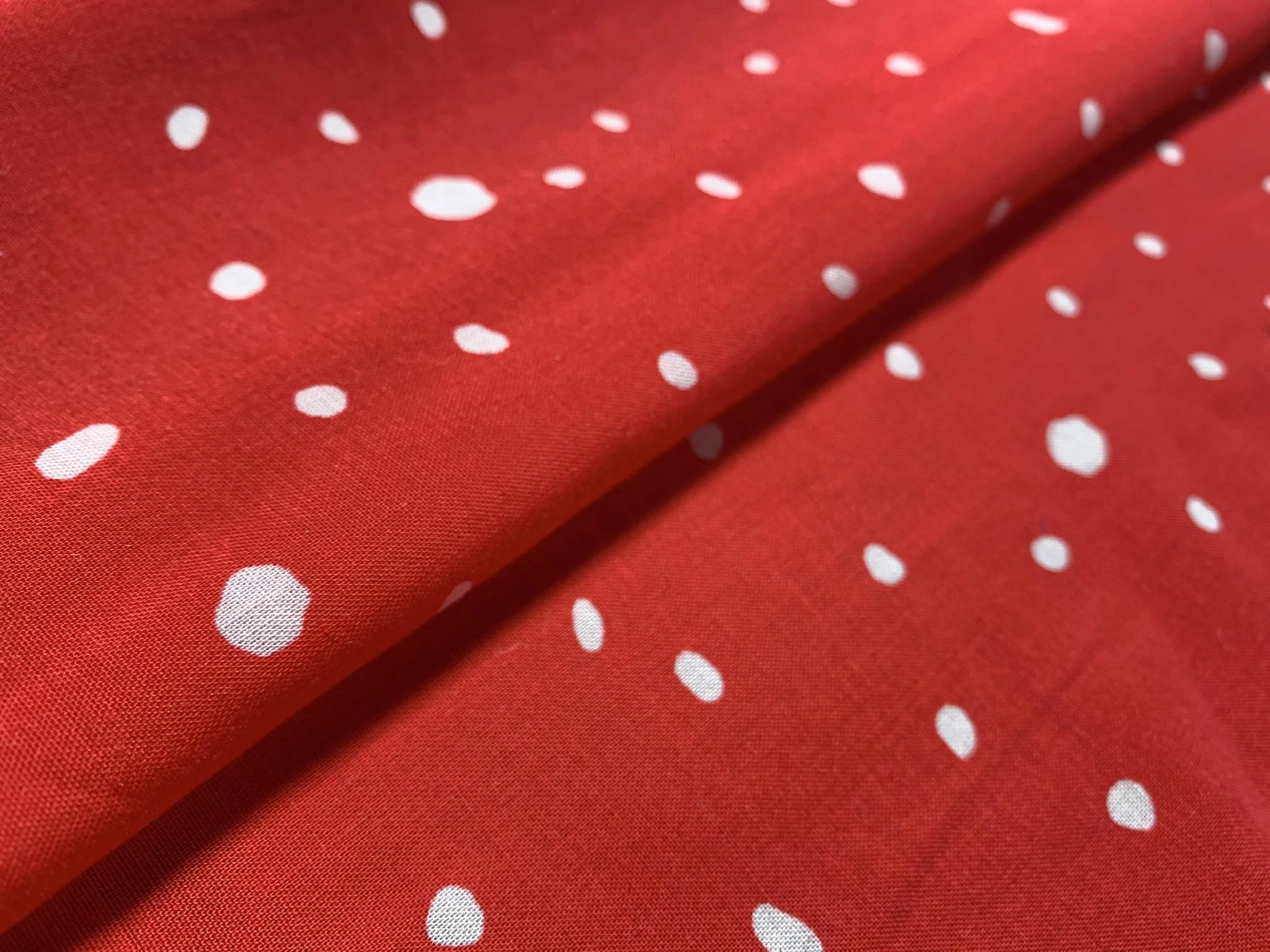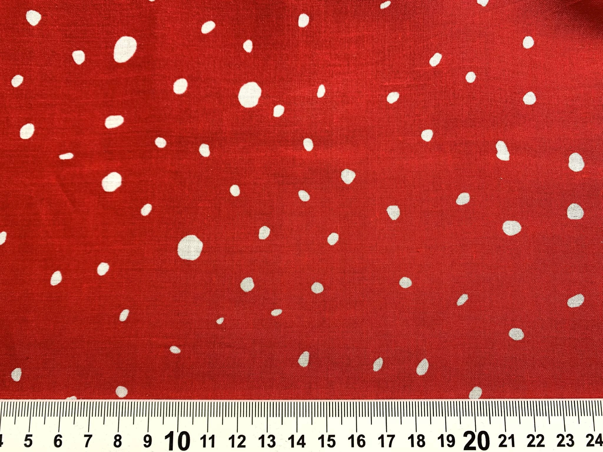 Штапель неравномерные горошки, белые на красном (ш22, 1910108, 639 цв4)