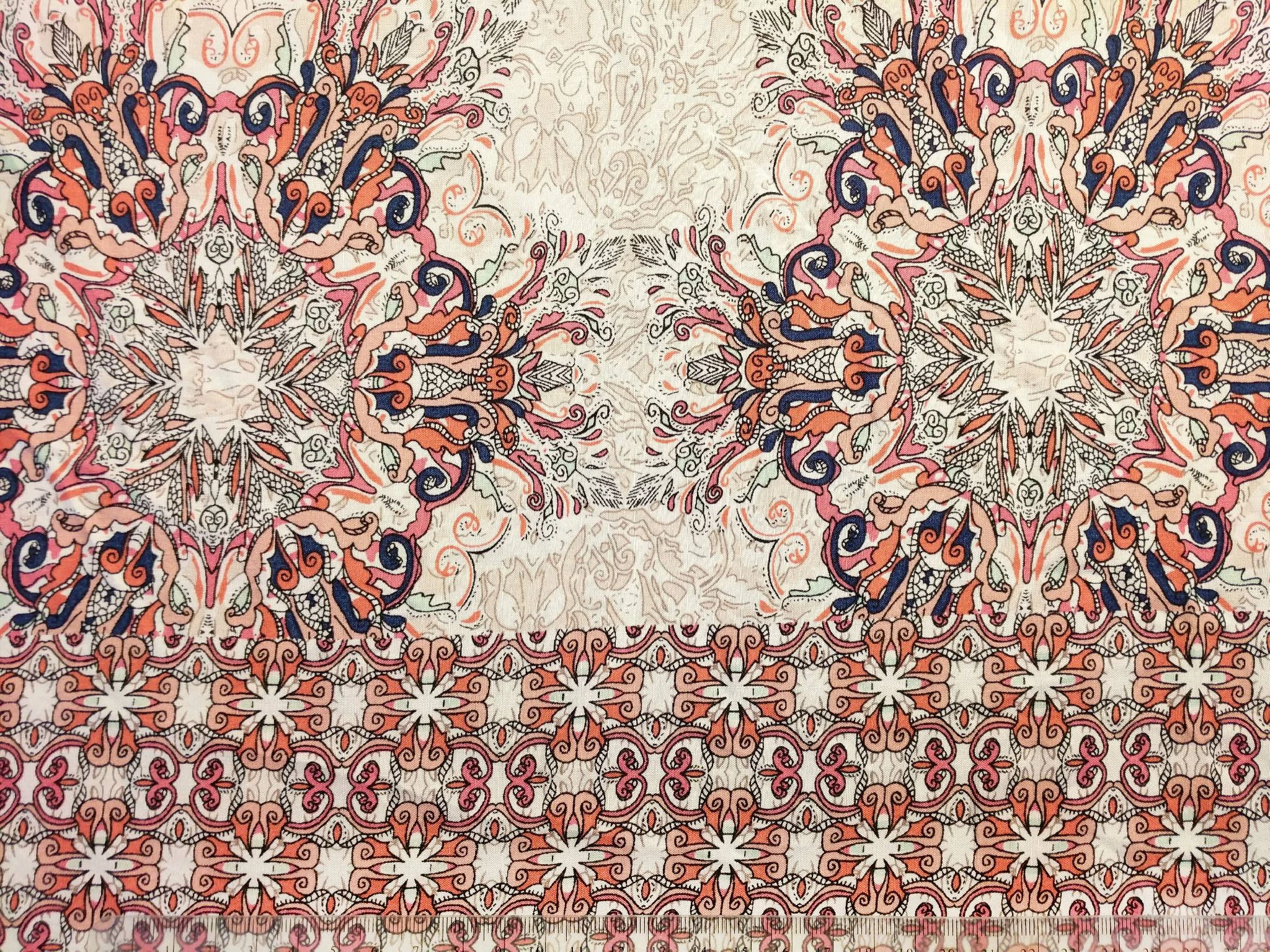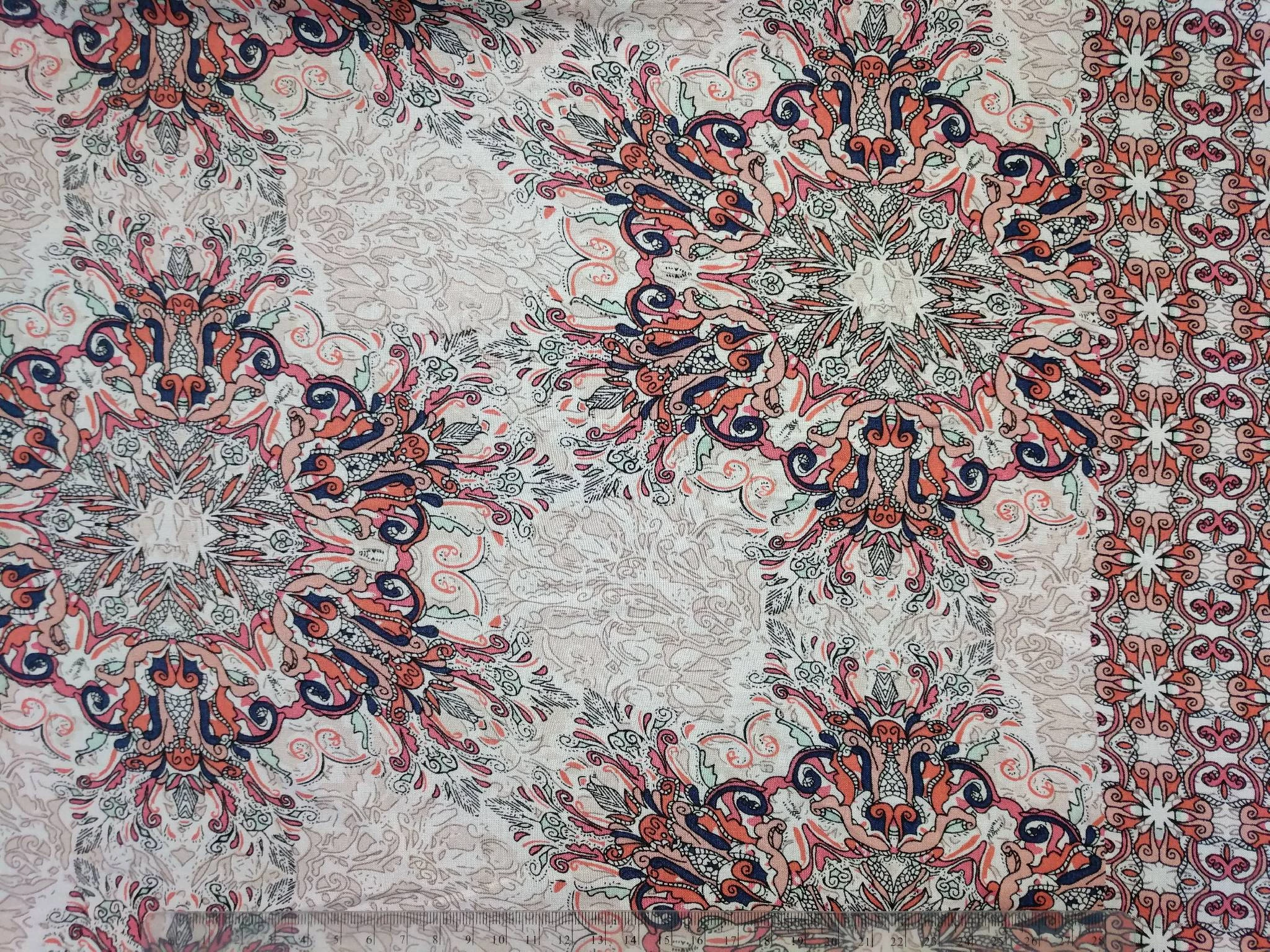 Штапель рисунок геометрия, оранжевый на бежевом (р04, 1511089A, д3 цв1)