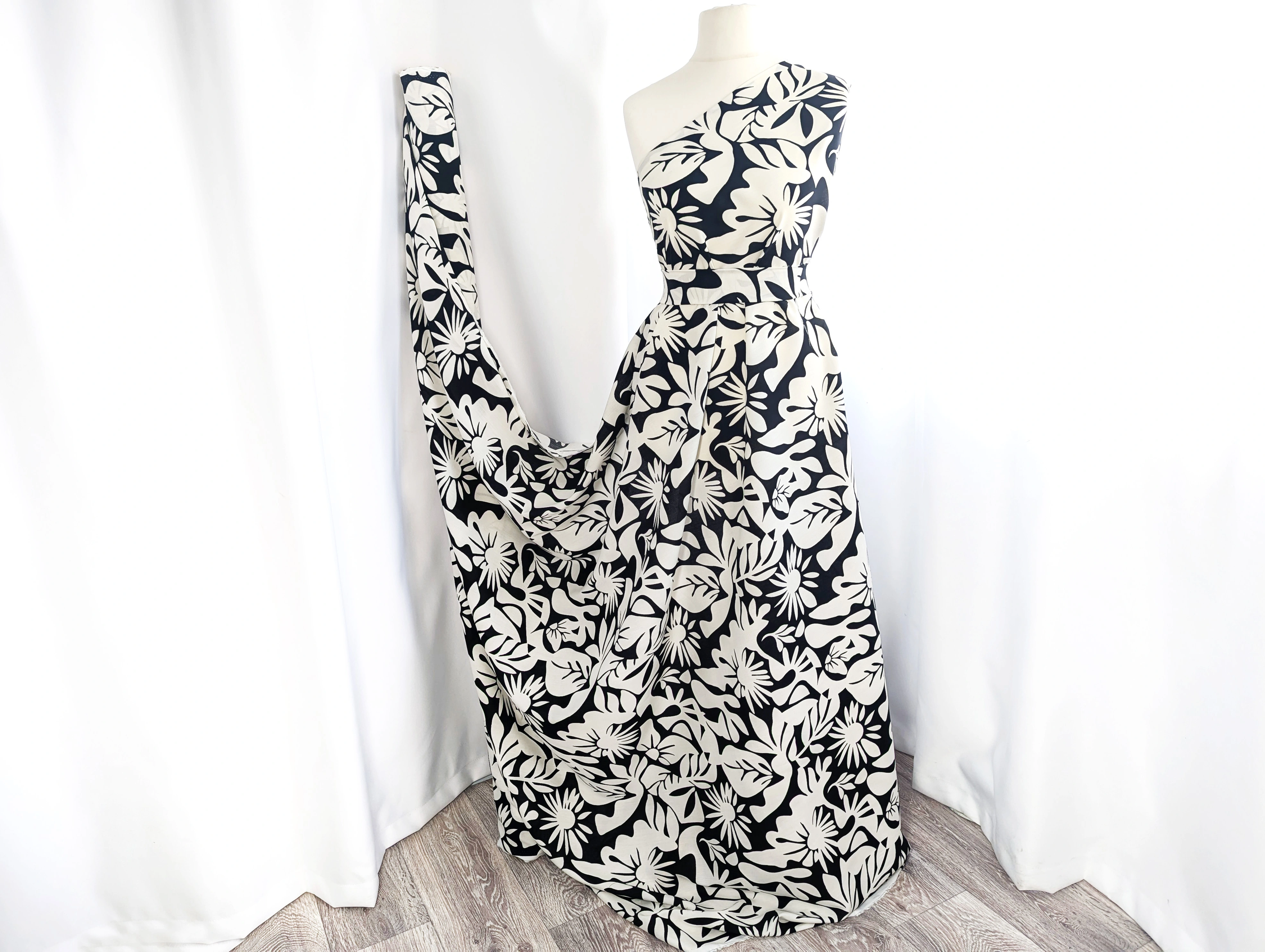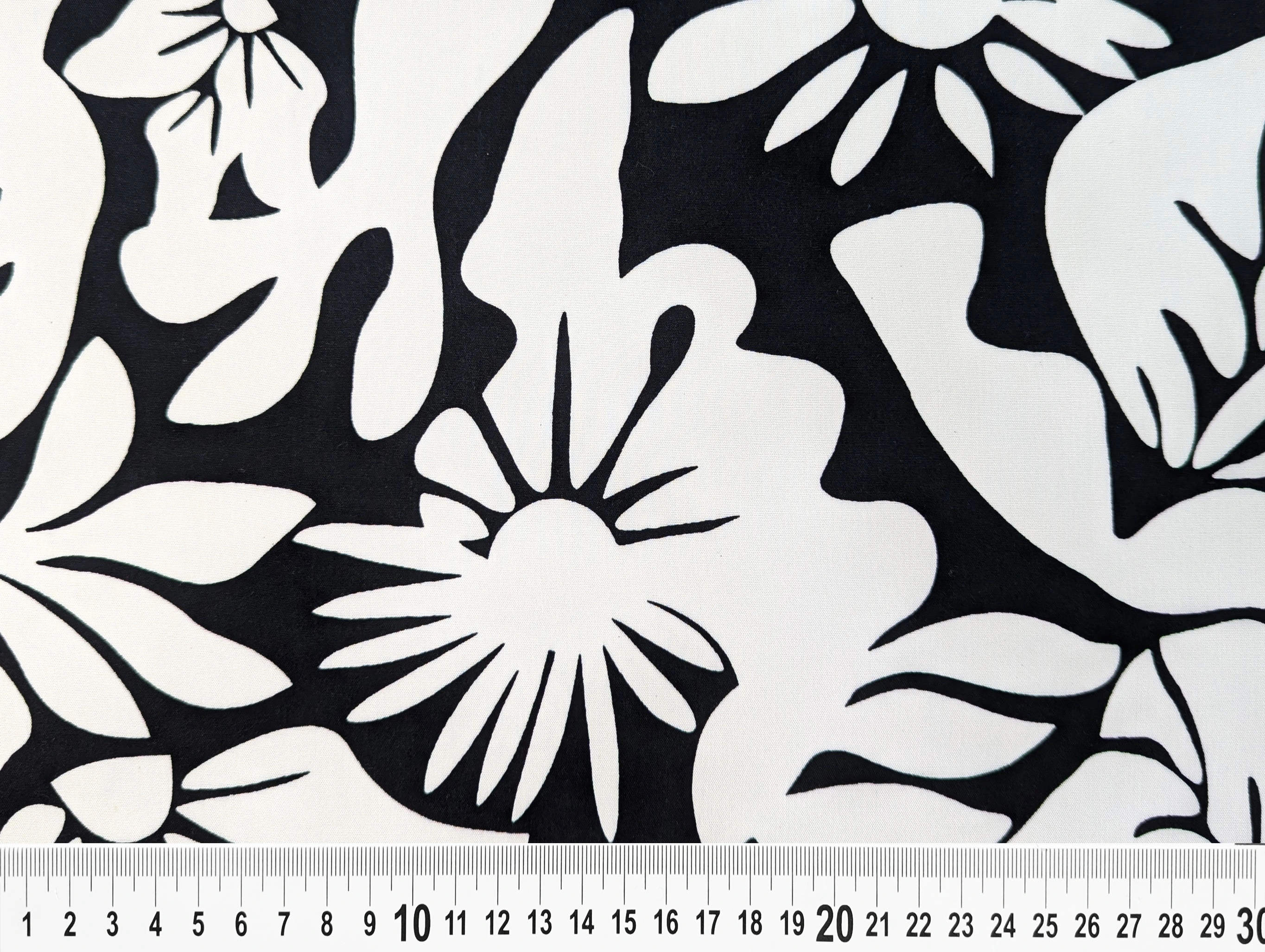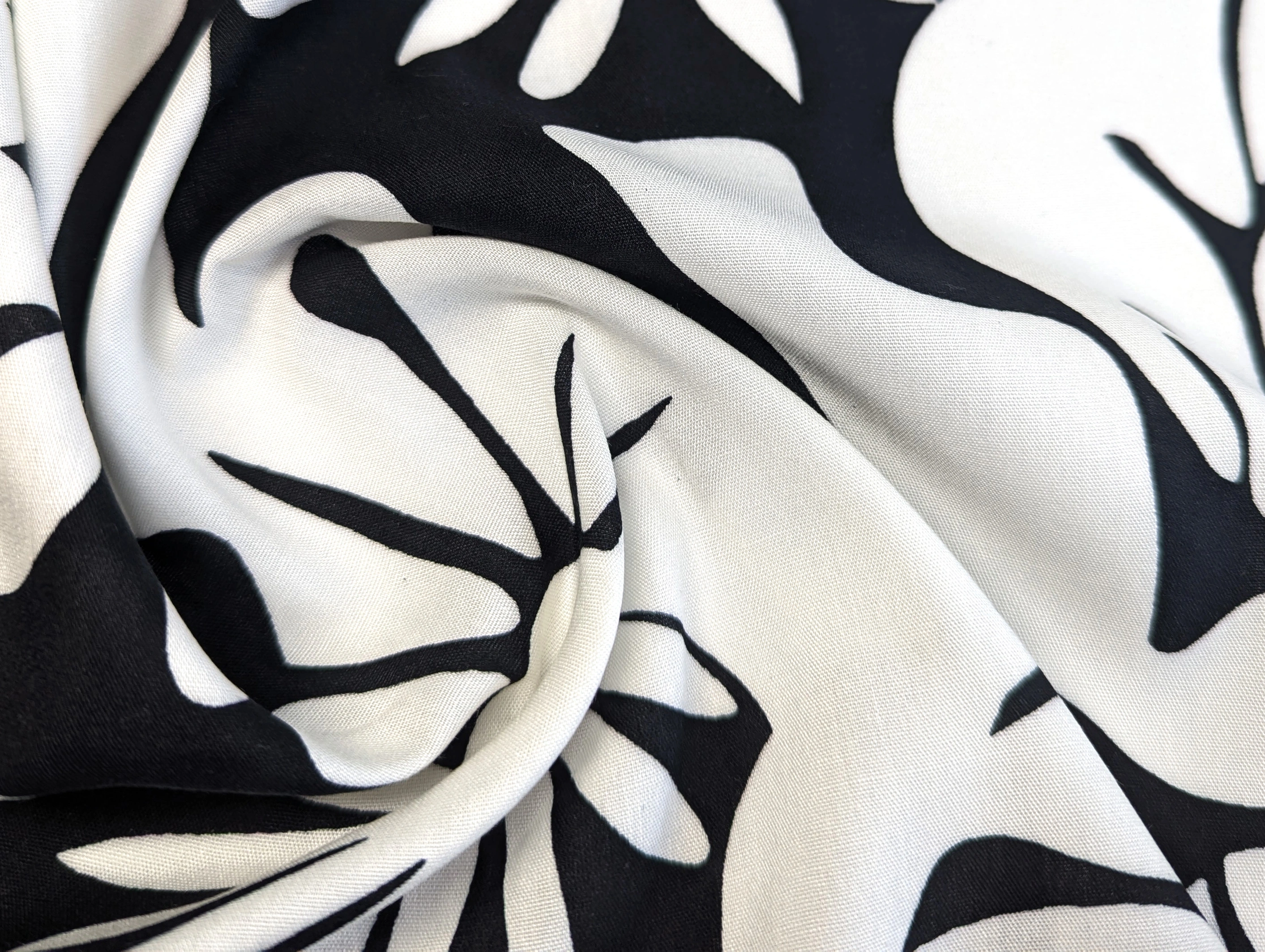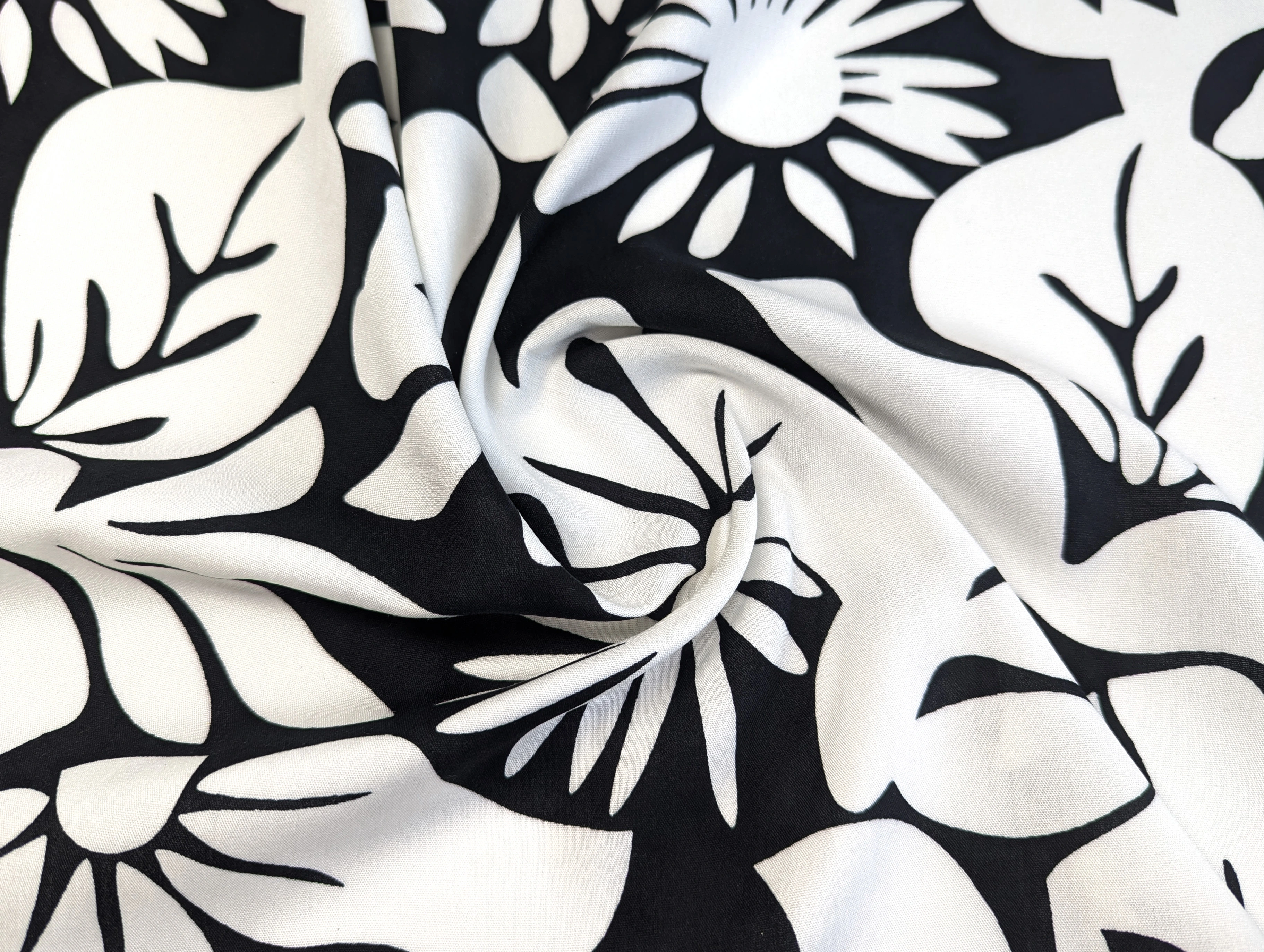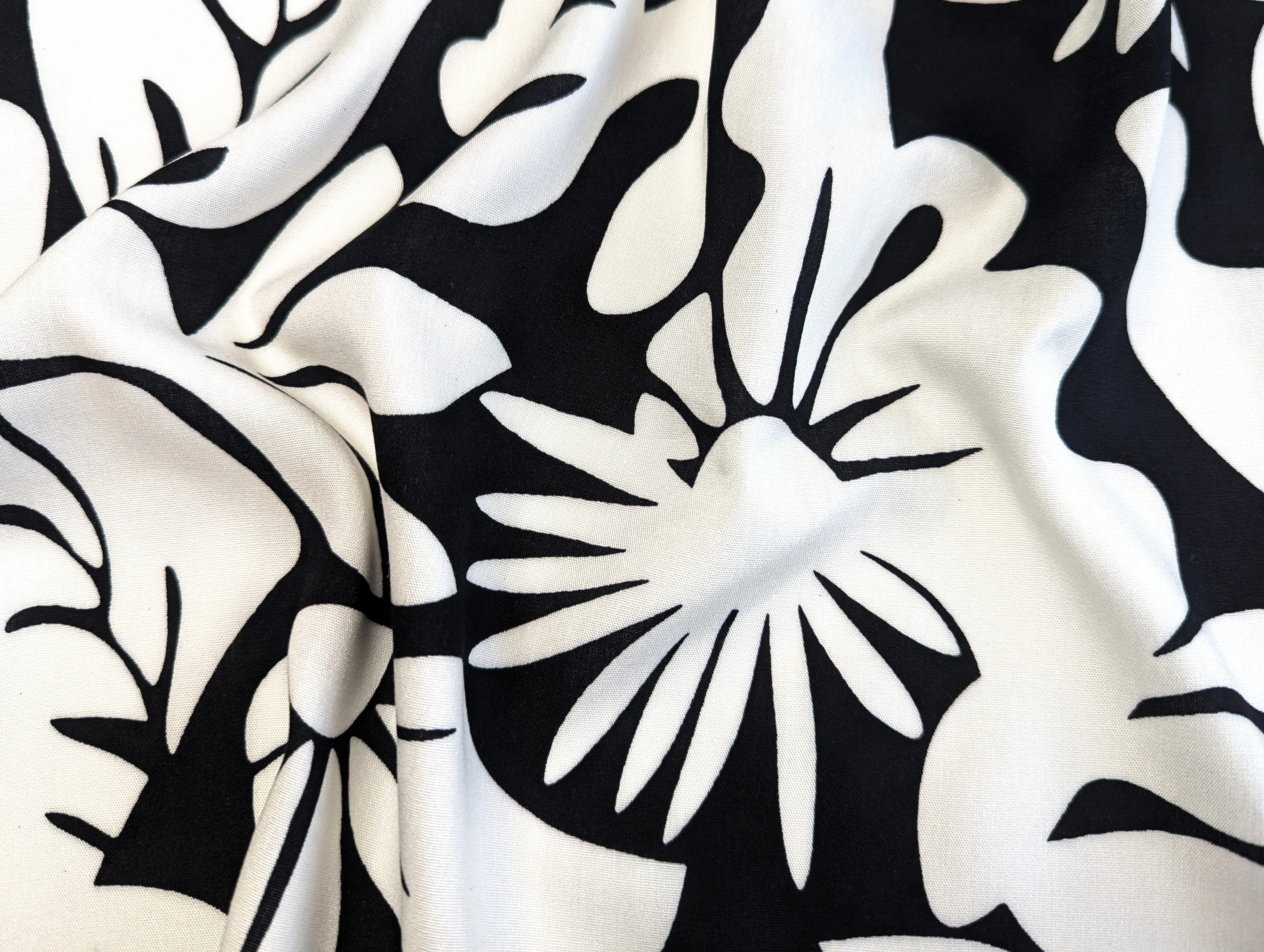 Штапель шелковистый абстракция цветочная, черный с молочным