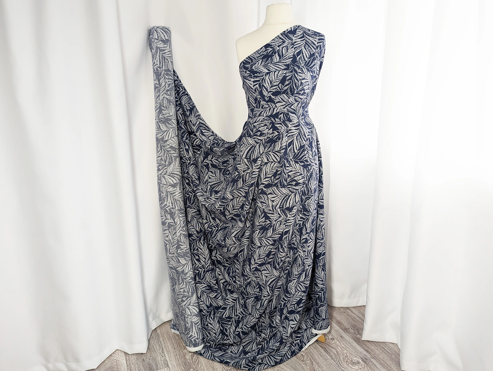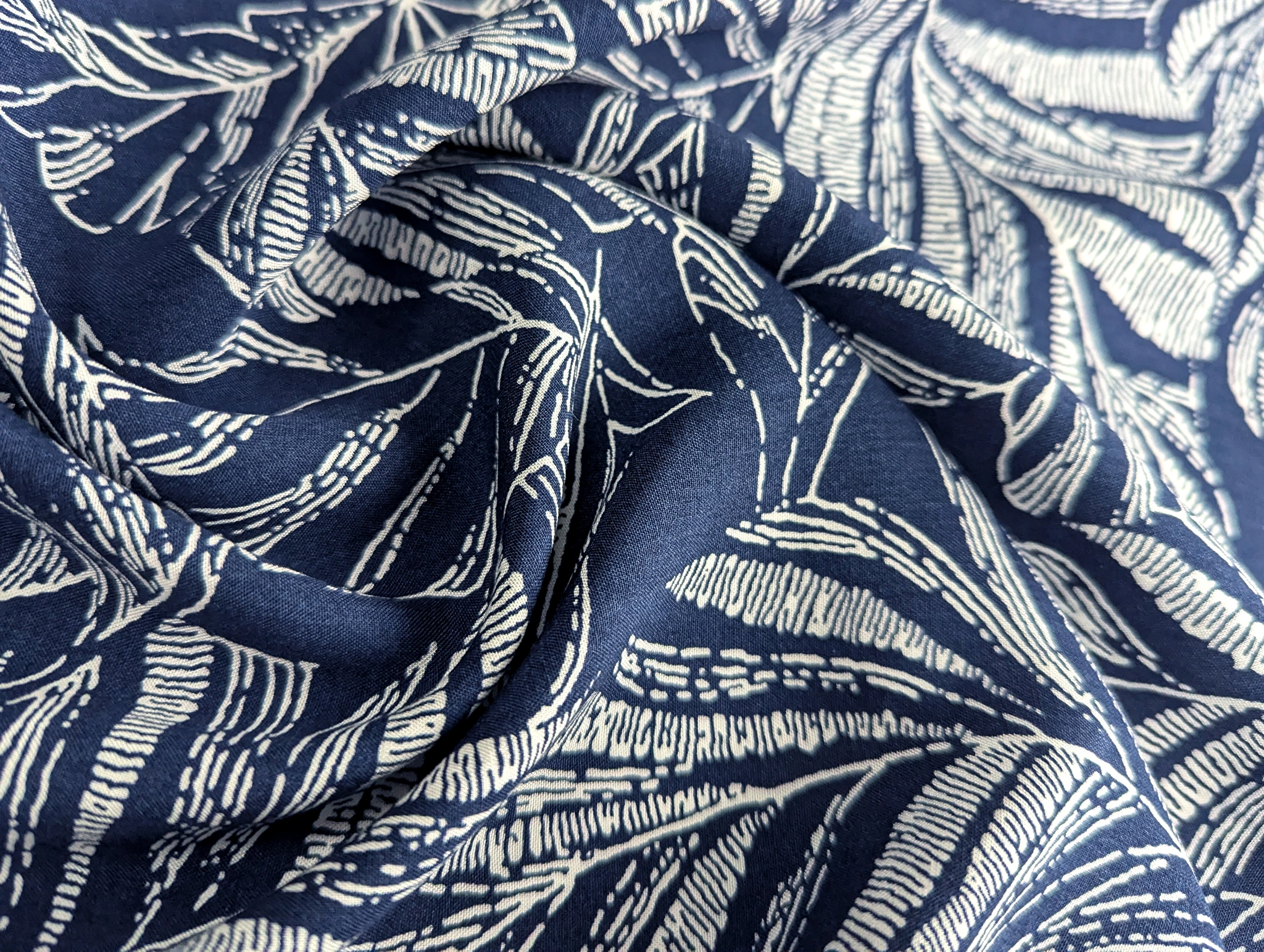 Штапель шелковистый лиственный дуэт, темно-синий