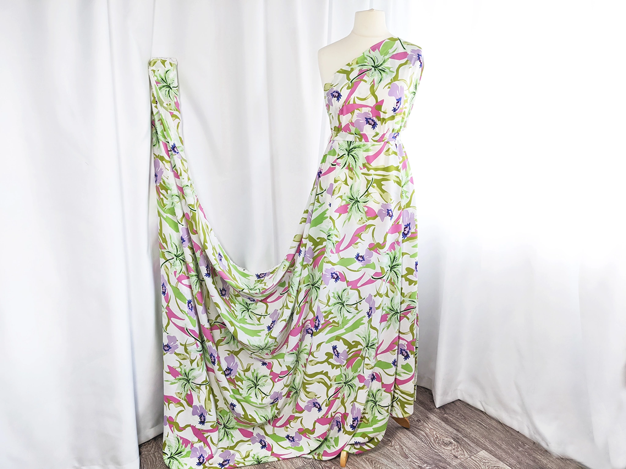 Вискозное полотно очень легкое, приятное к телу, пропускает воздух и красиво драпируется. Хорошо подходит для пошива летней одежды. Ткань обладает влаговпитывающими свойствами. Из штапель можно сшить блузу, платье, сарафан или легкий костюм на лето.