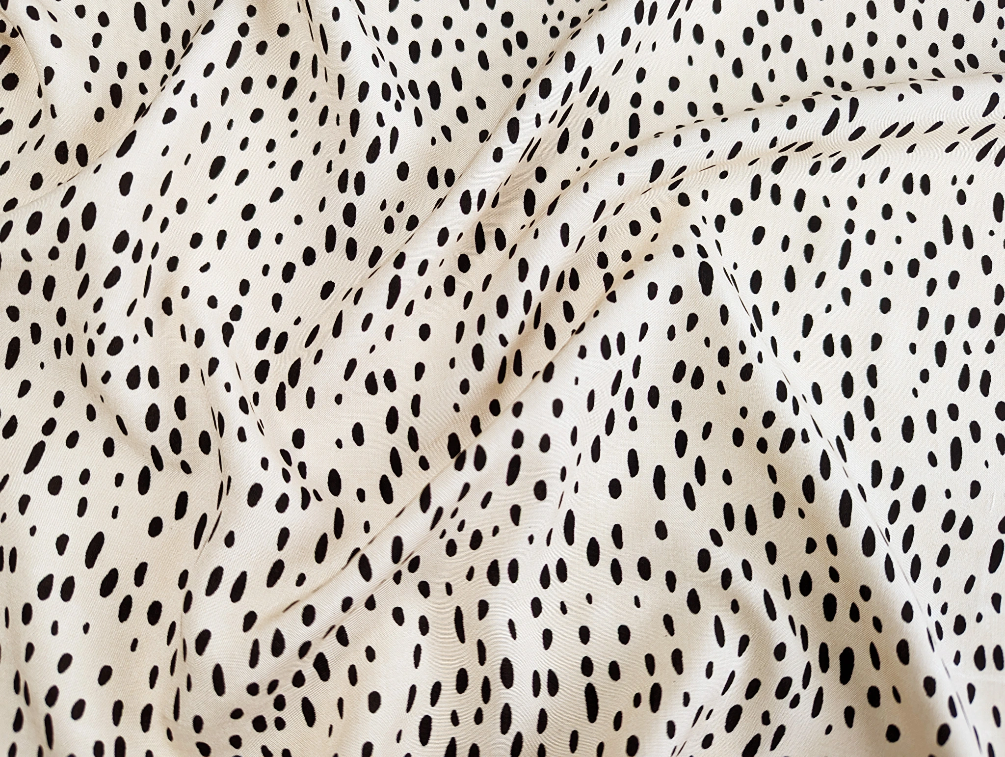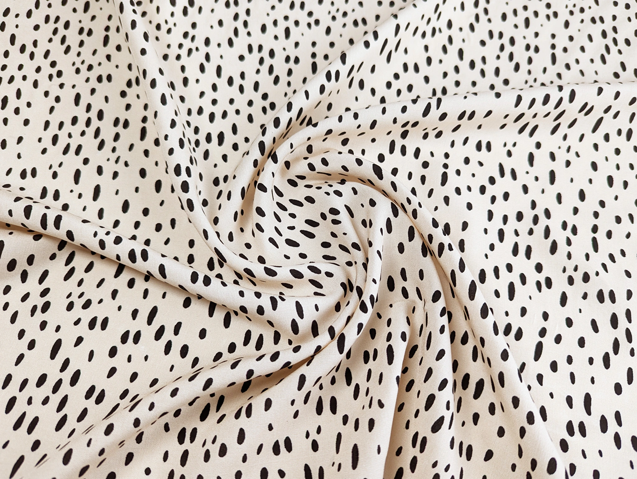 Штапель шелковистый россыпь горошков, черный на бежевом