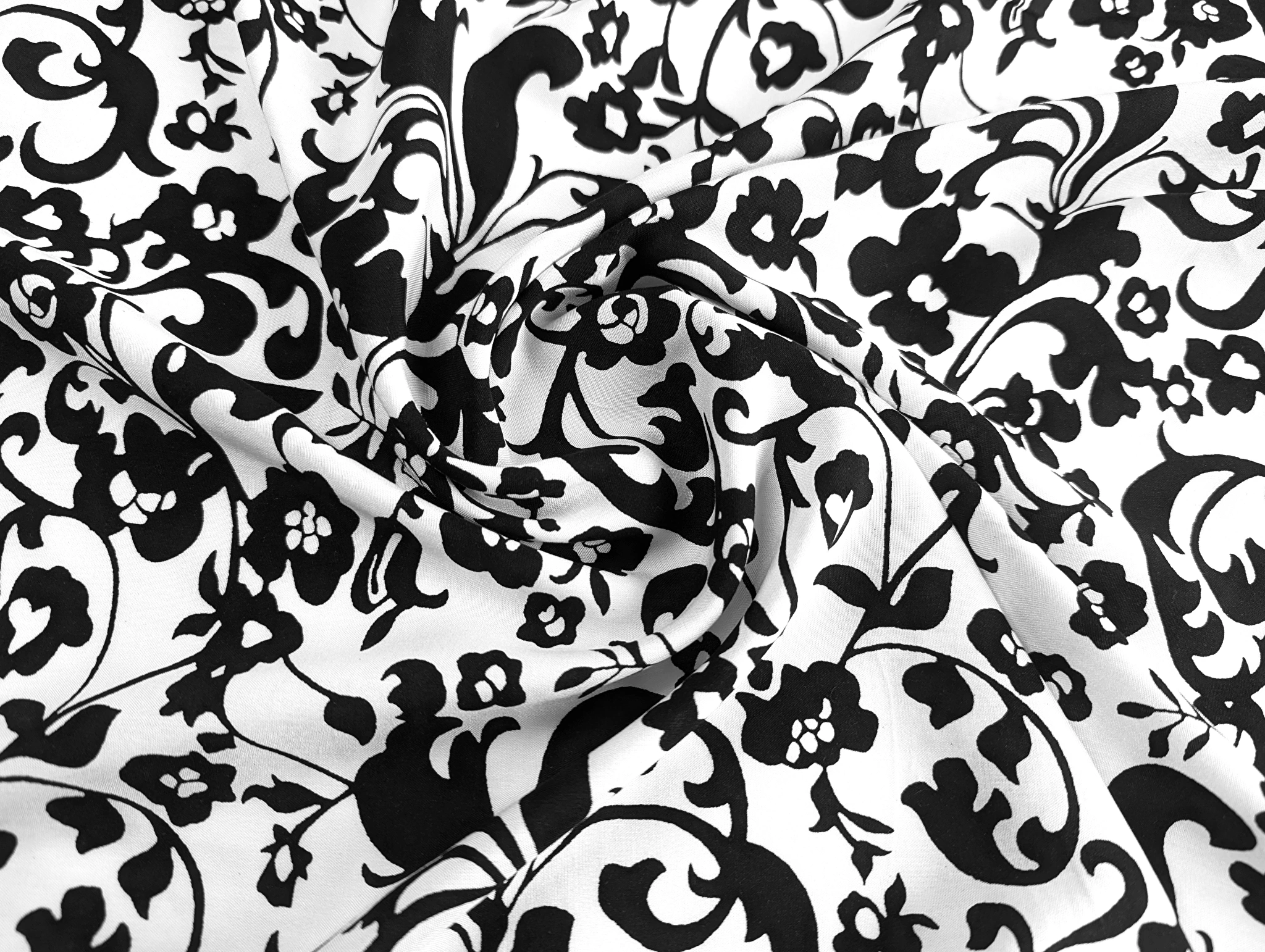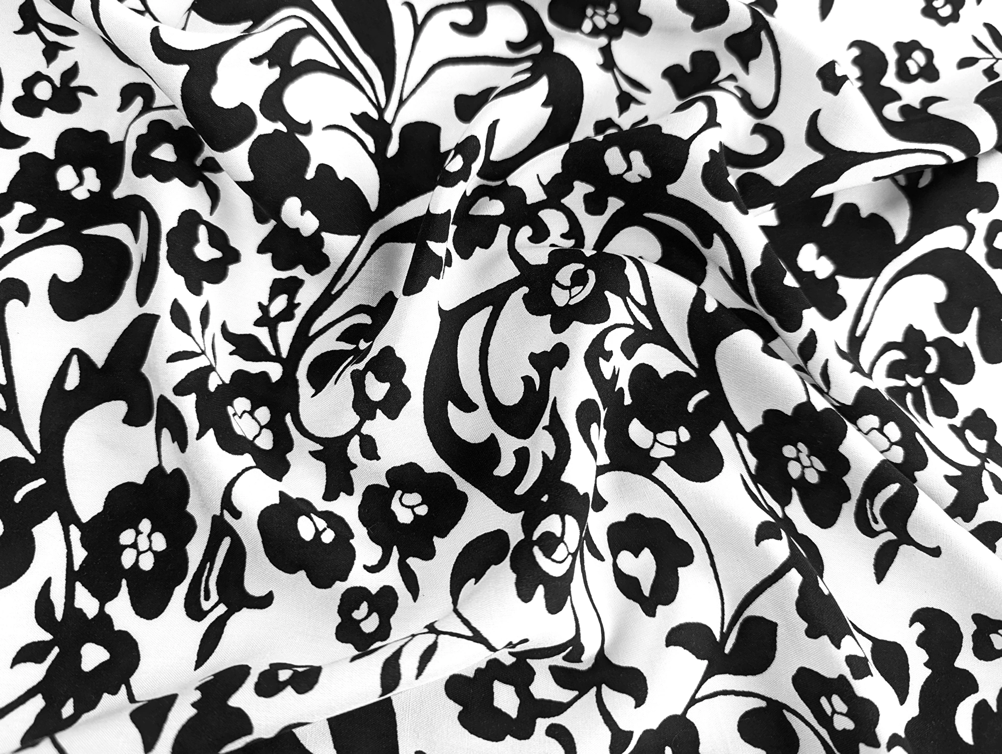 Штапель шелковистый цветочная композиция, черный на белом