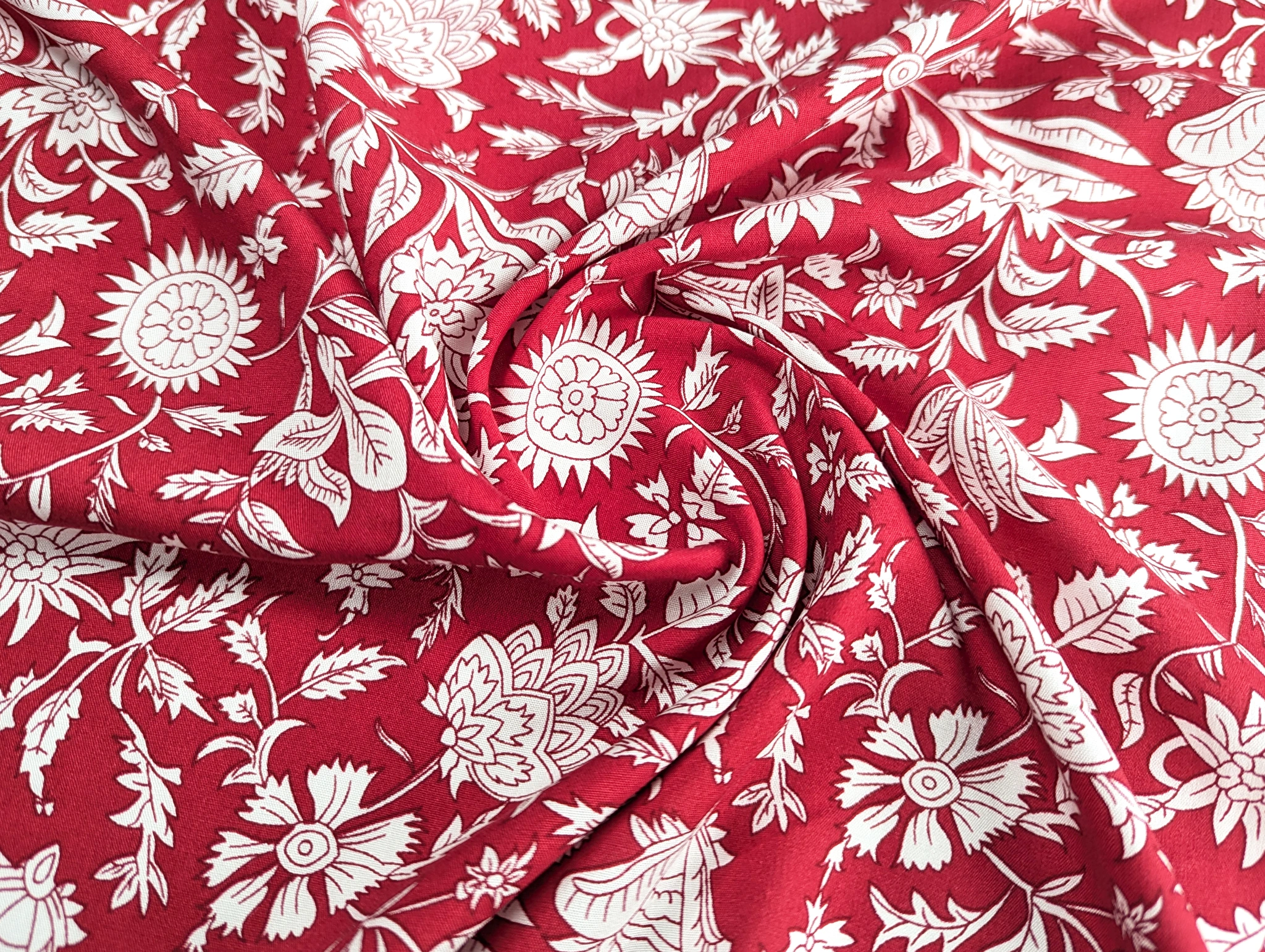 Штапель шелковистый цветочный микс, красный