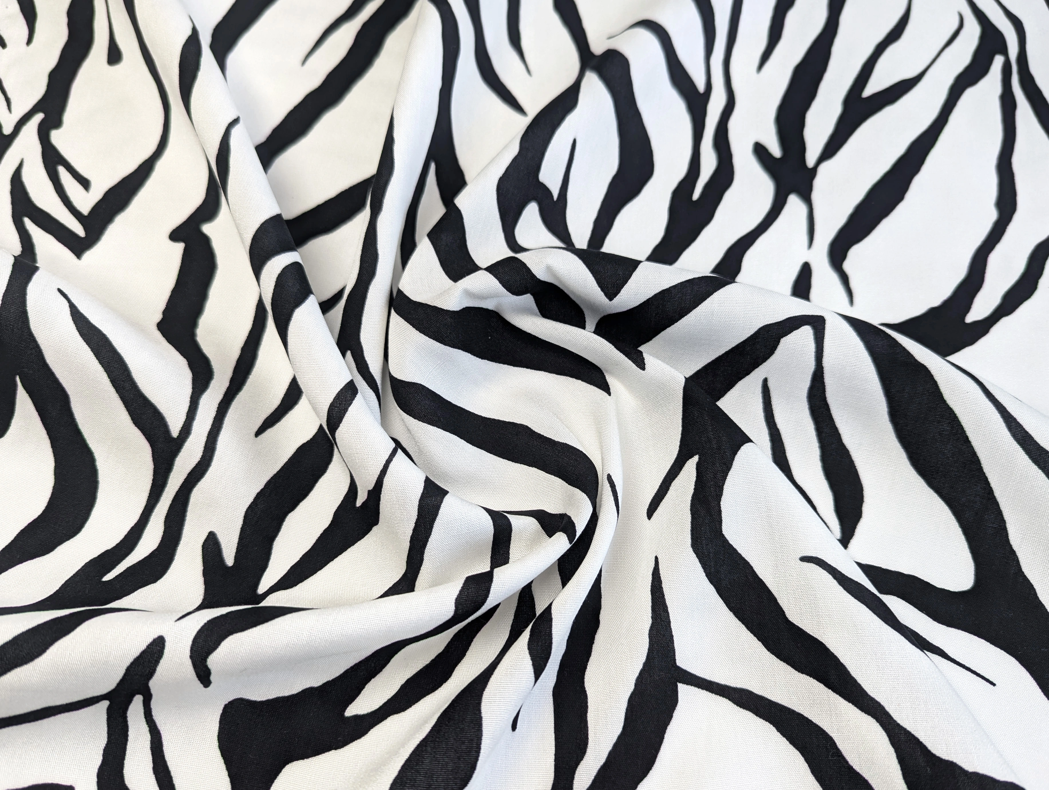 Штапель шелковистый зебра, молочный на черном
