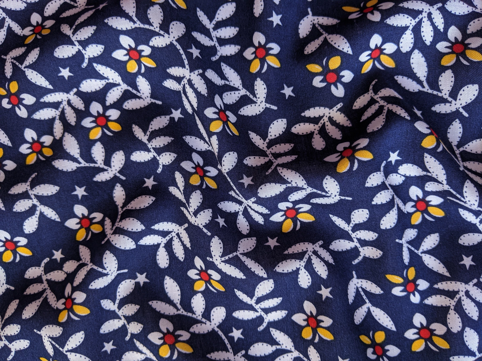 Штапель шелковистый мелкие цветочки, темно-синий (ш14, 48958, д1 тем.синий)
