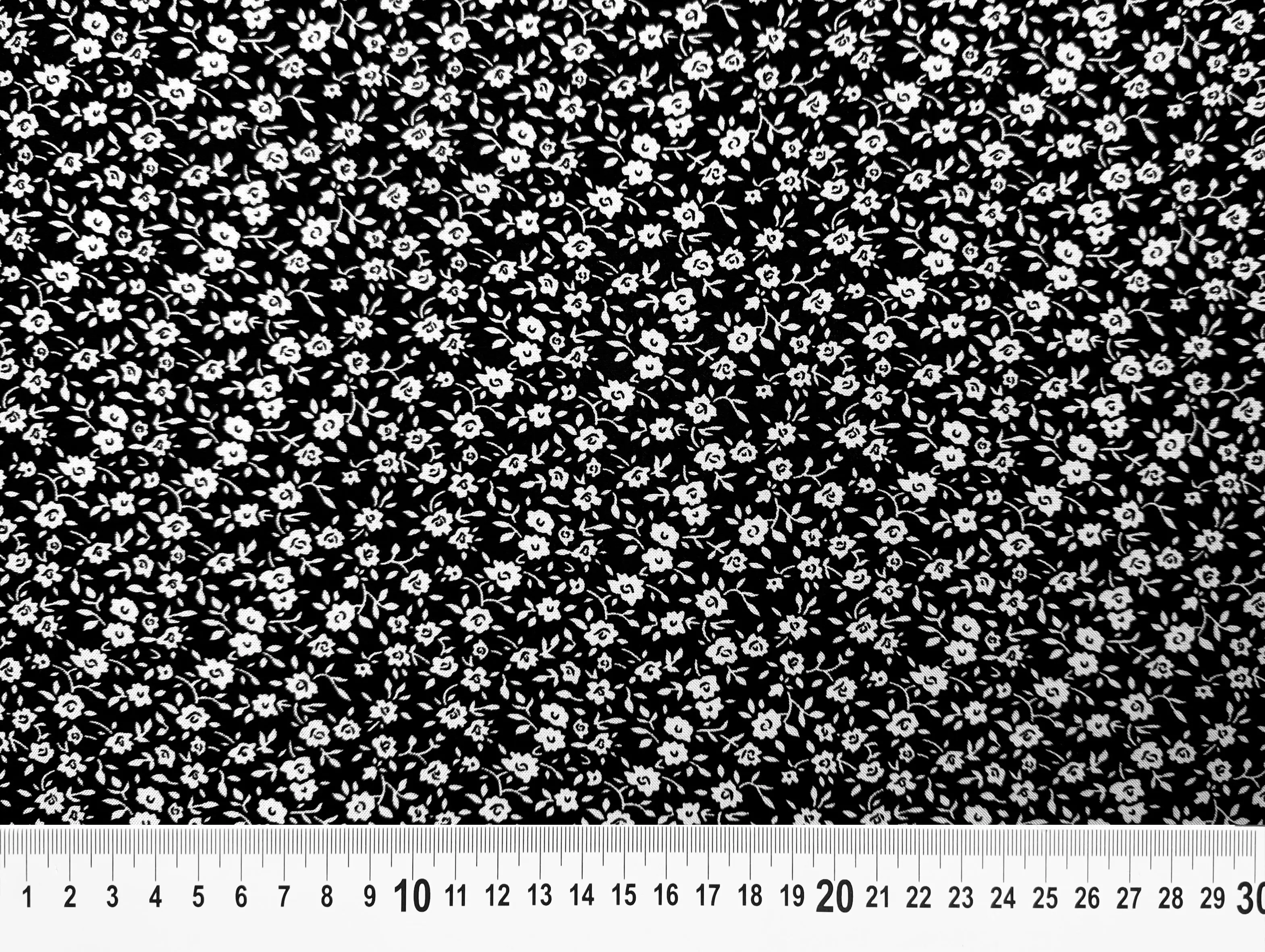Штапель шелковистый мелкие цветочки, черный с молочным (отрез 2,9 м)