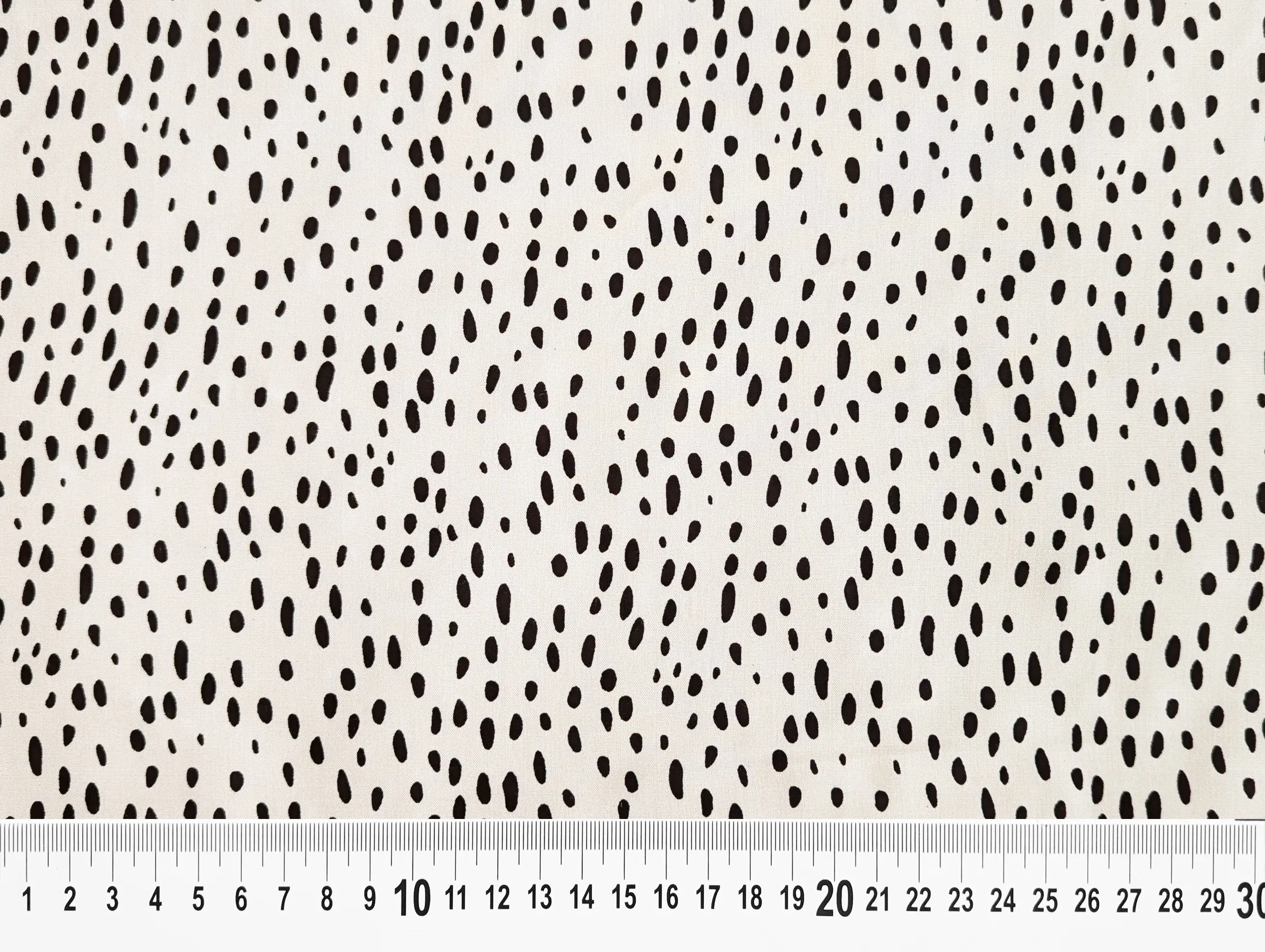 Штапель шелковистый россыпь горошков, черный на бежевом (отрез 3 м)